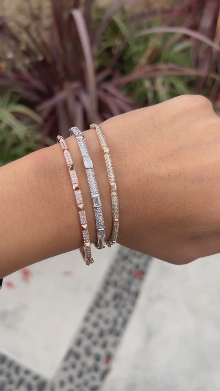 14K Gold Alternate Diamond Clover & Turquoise Bangle