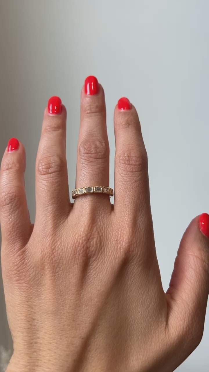 14K Gold Emerald Cut Halfway East West Eternity Milgrain Bezel Set Lab Grown Diamond Wedding Band Ring