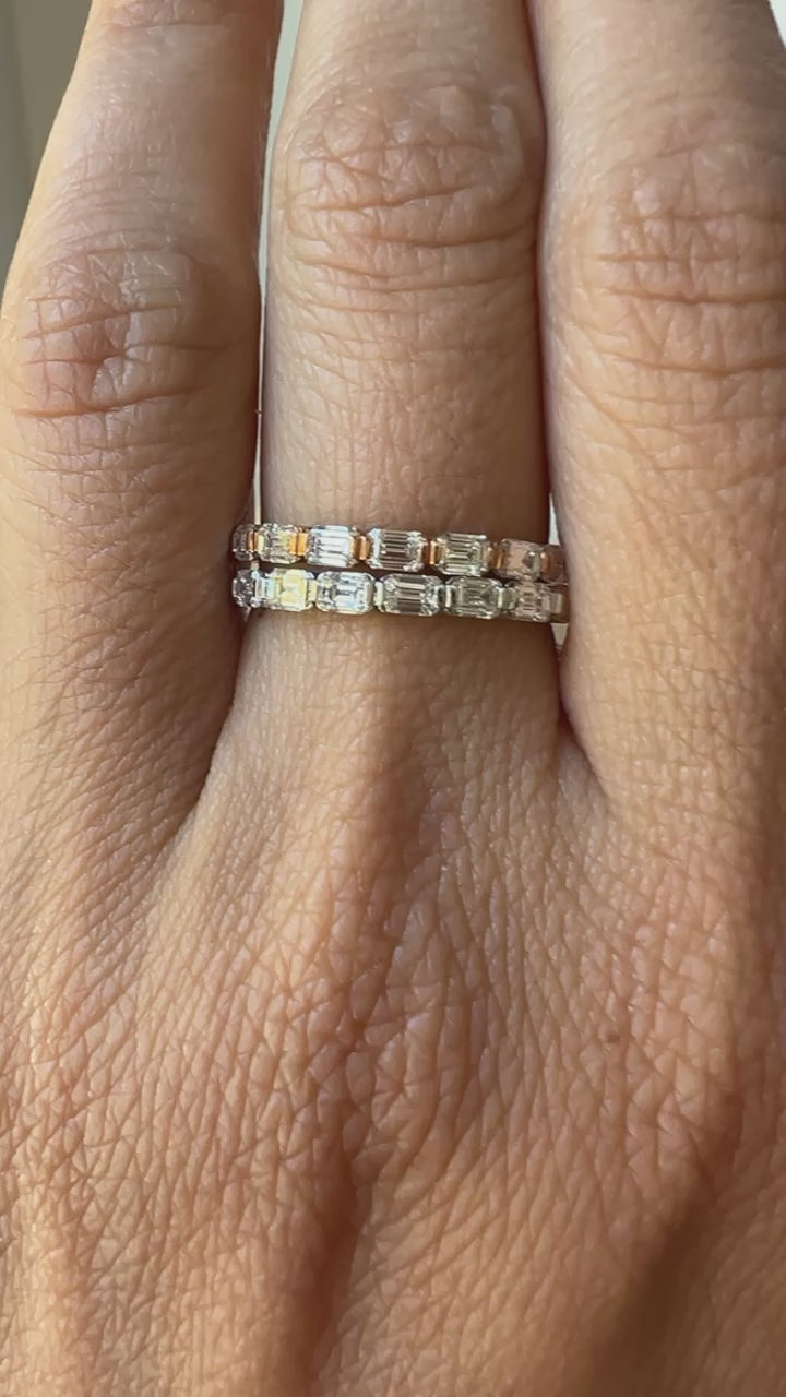 14K Gold Emerald Cut Halfway East West Eternity Modern Prong Set Lab Grown Diamond Wedding Band Ring