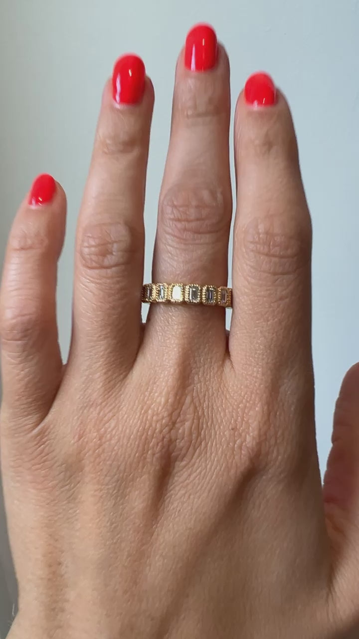 14K Gold Emerald Cut Halfway Vertical Eternity Milgrain Bezel Set Lab Grown Diamond Wedding Band Ring
