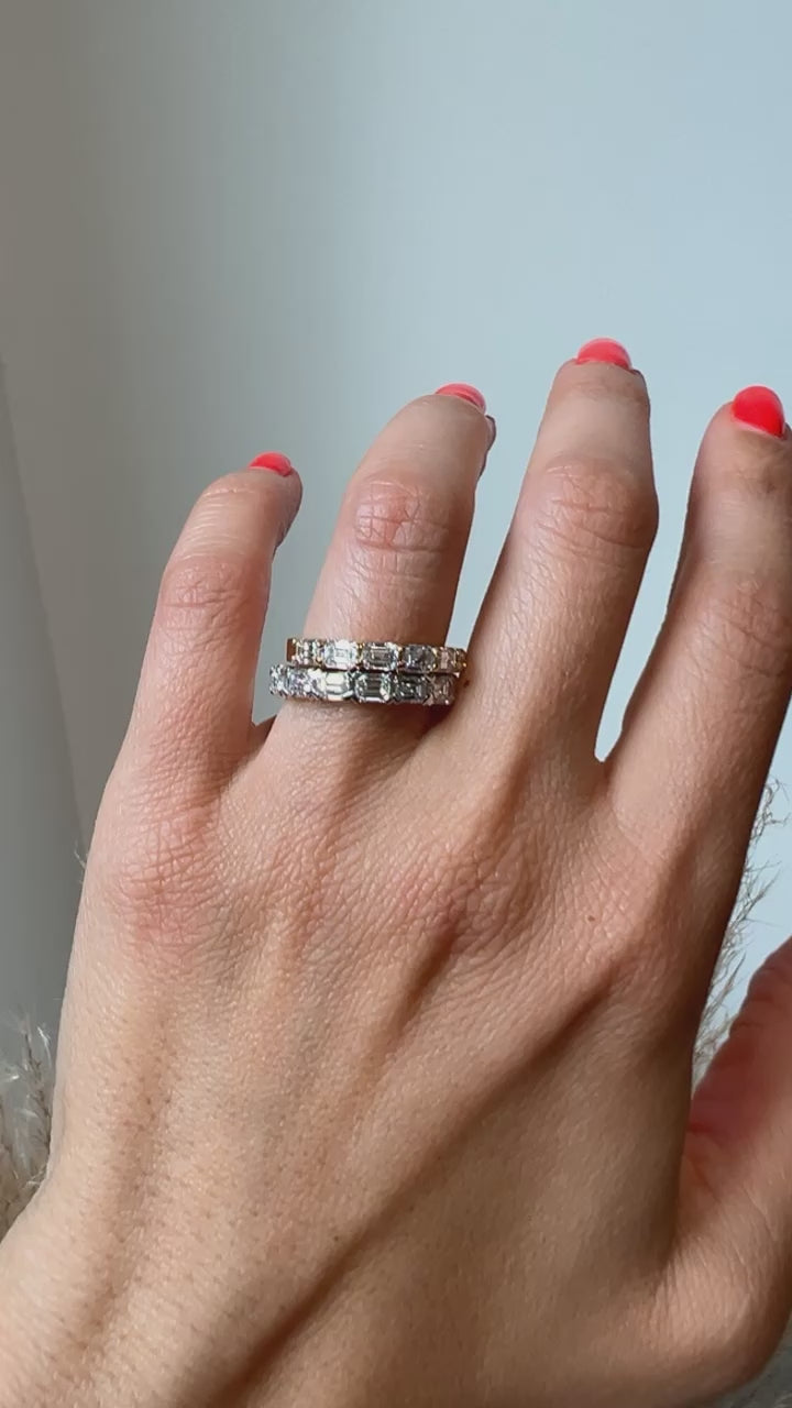 14K Gold Emerald Cut Three Quarter Way East West Eternity Modern Prong Set Lab Grown Diamond Wedding Band Ring