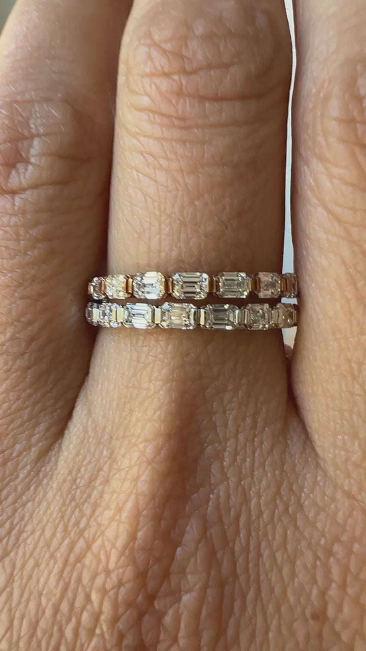 14K Gold Emerald Cut Three Quarter Way East West Eternity Modern Prong Set Lab Grown Diamond Wedding Band Ring