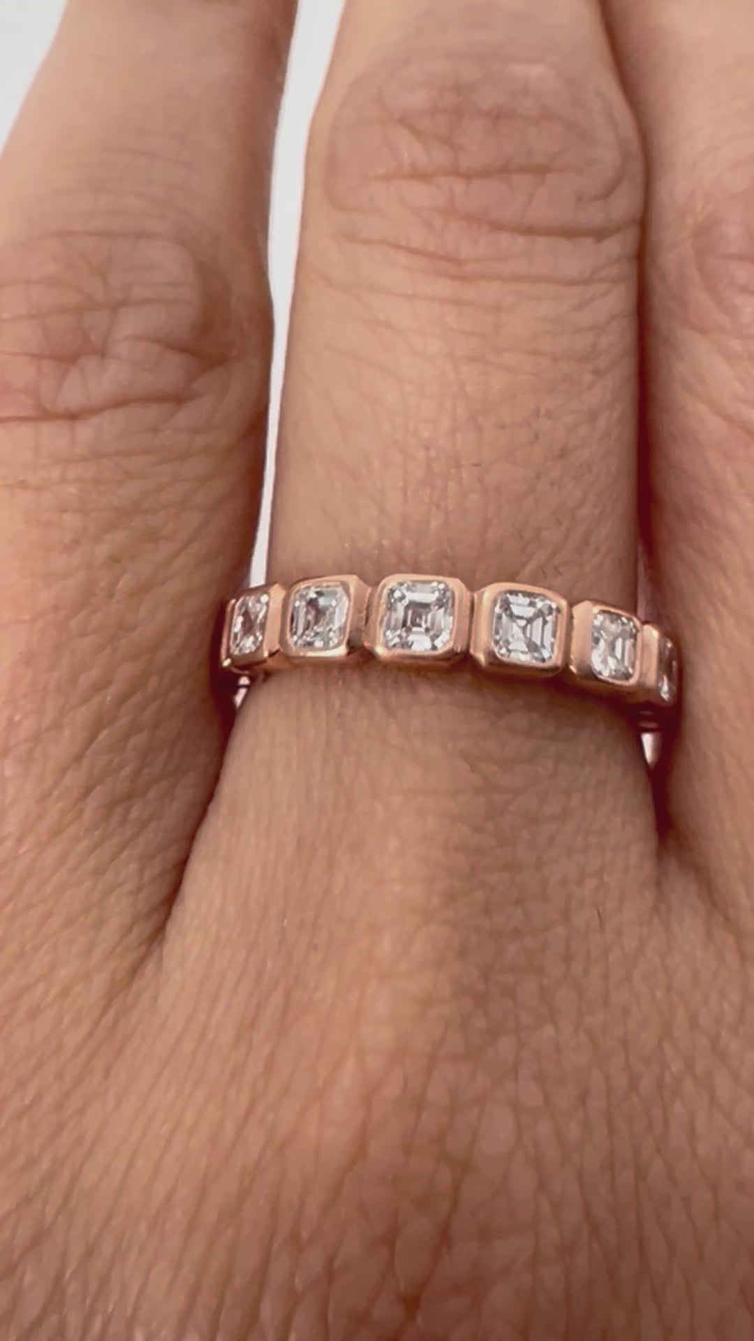 14K Gold Ascher Cut Three Quarter Way Eternity Bezel Set Lab Grown Diamond Wedding Band Ring