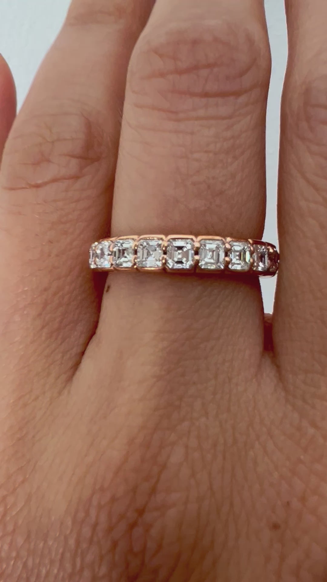 14K Gold Ascher Cut Three Quarter Way Eternity Half Bezel Set Lab Grown Diamond Wedding Band Ring