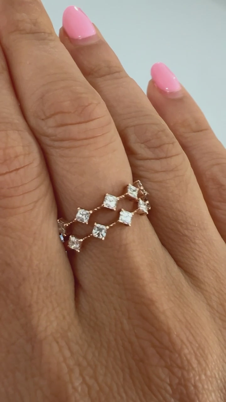 Crafted in 14K gold, our exquisite three-quarter way eternity wedding band showcases mesmerizing Asscher-cut lab-grown diamonds, each elegantly set within a bezel setting. The sleek design exudes modern sophistication, while the timeless Asscher cut adds a touch of classic elegance. Whether worn alone as a symbol of everlasting love or paired with engagement rings, this band epitomizes enduring beauty and grace.