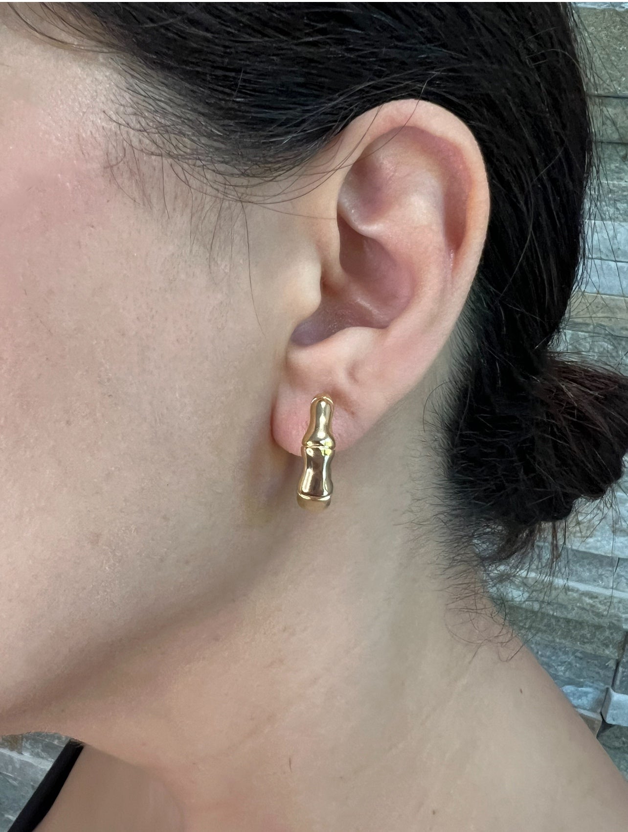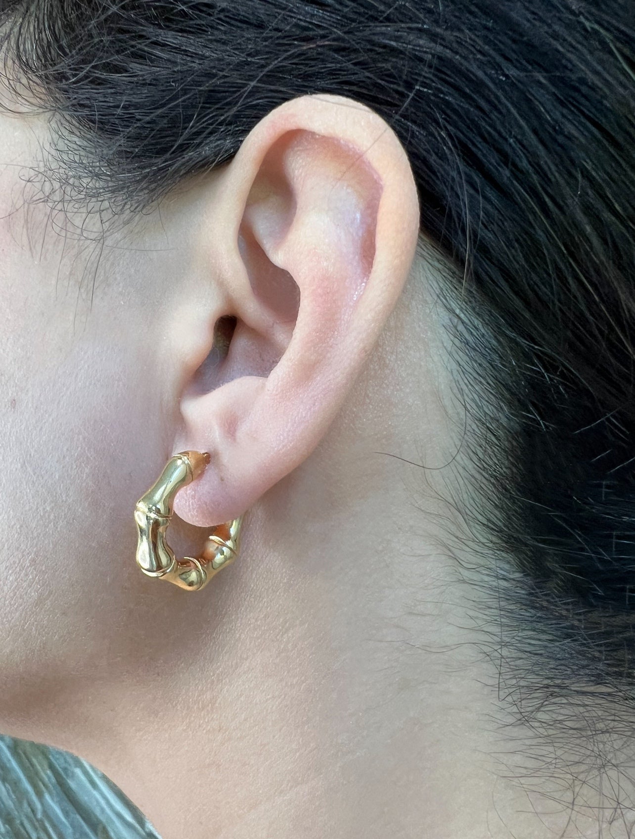 Elevate your style with these chic bamboo hoop earrings in hollow 14K yellow gold, perfect for enhancing casual and dressy looks. Wear them solo or layer them with your ear stack for a trendy, curated vibe.