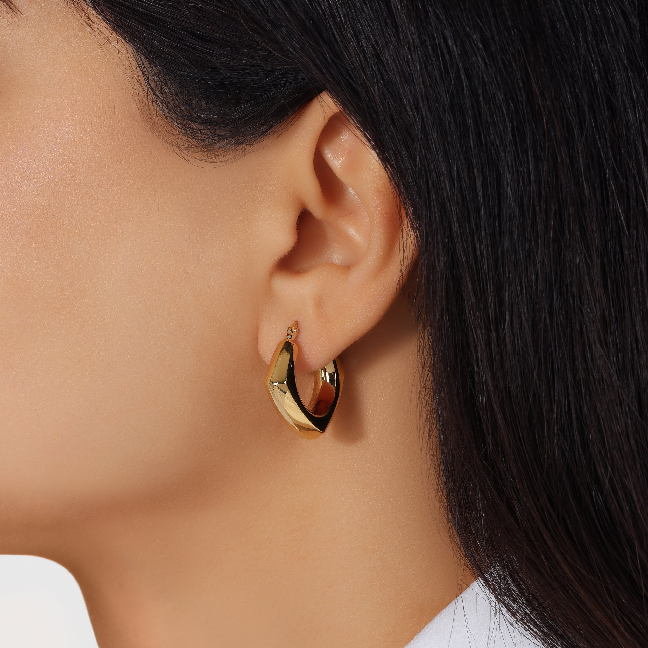 Crafted from 14KT yellow gold, these square-shaped hoop earrings offer a sleek and contemporary take on a timeless classic. Their geometric design adds a stylish edge, making them the perfect accessory to elevate your everyday look. Lightweight yet bold, these hoops seamlessly blend elegance with modern sophistication, making them a versatile addition to any jewelry collection.
