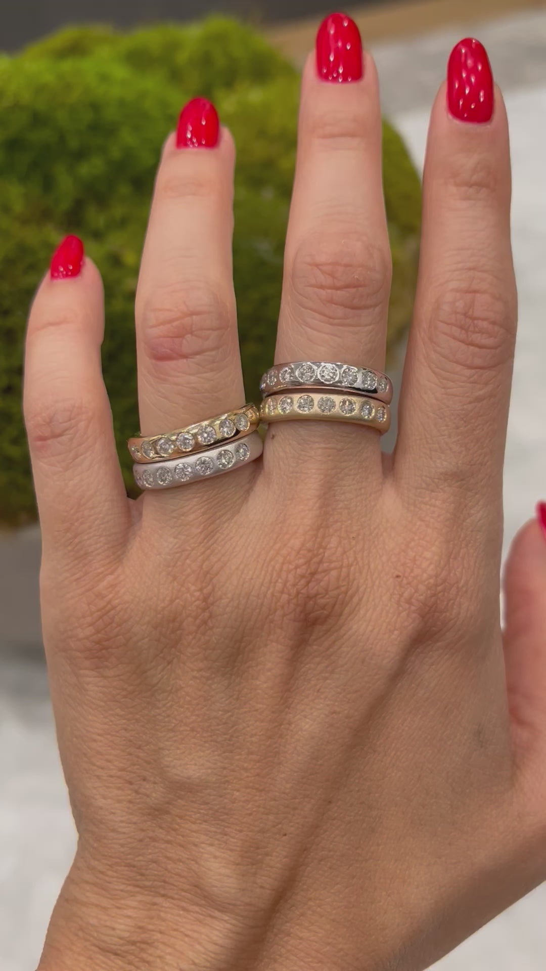 14K Gold Flush Set Bezel Diamond Wedding Band Stacking Ring