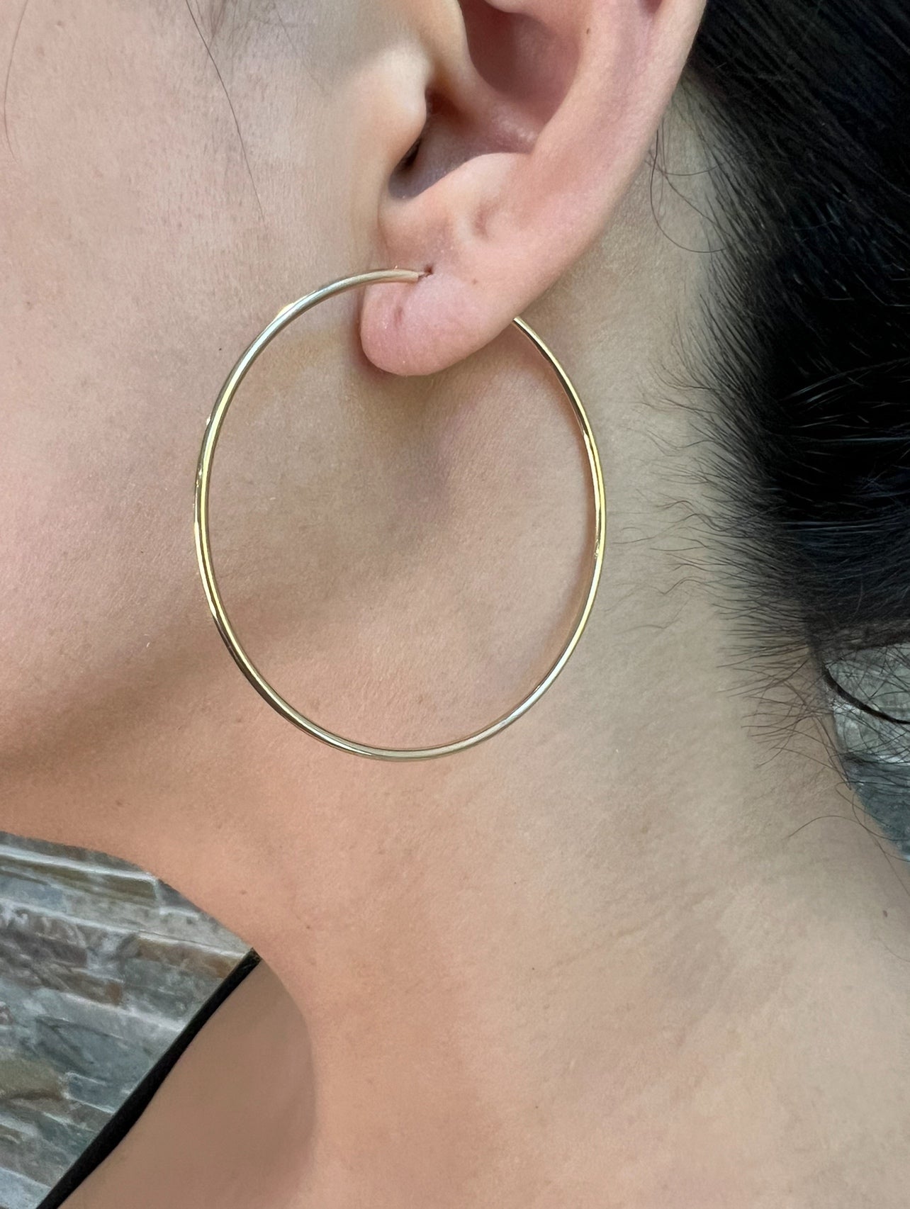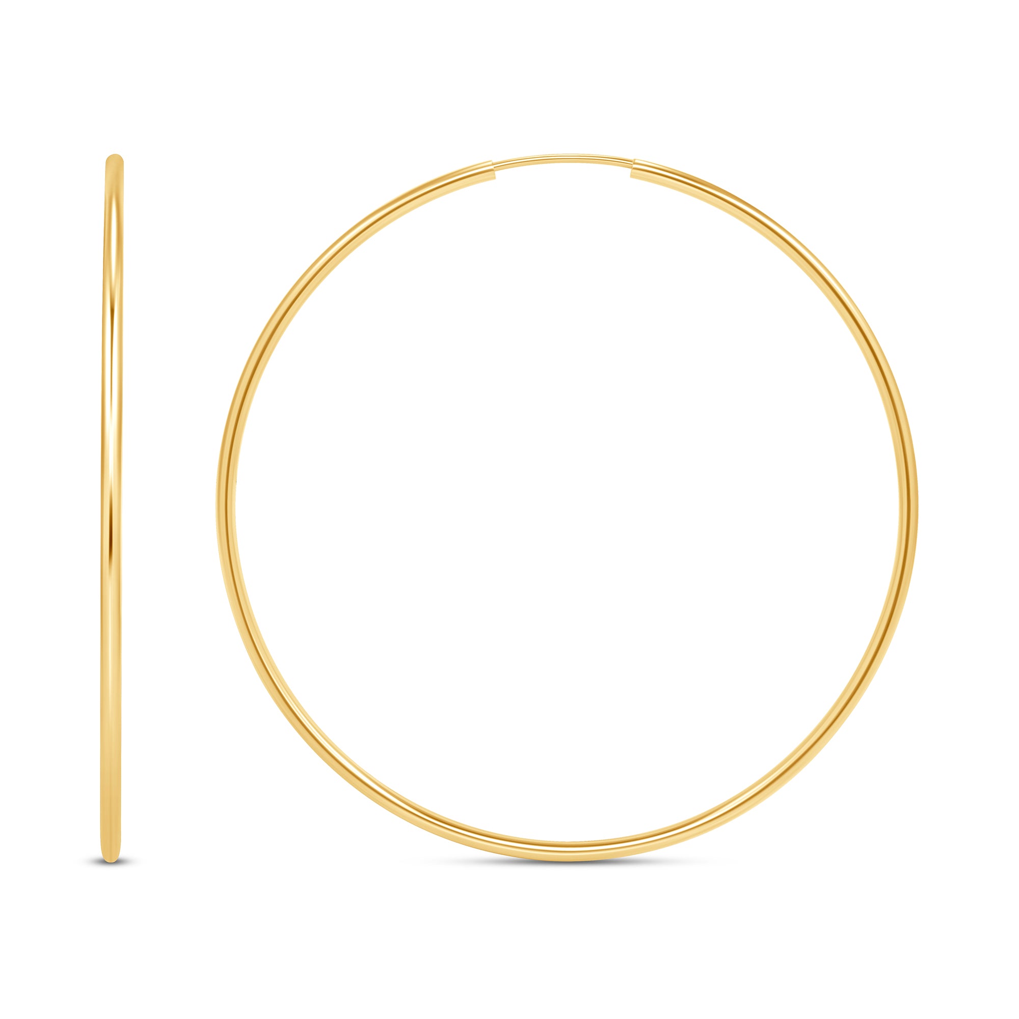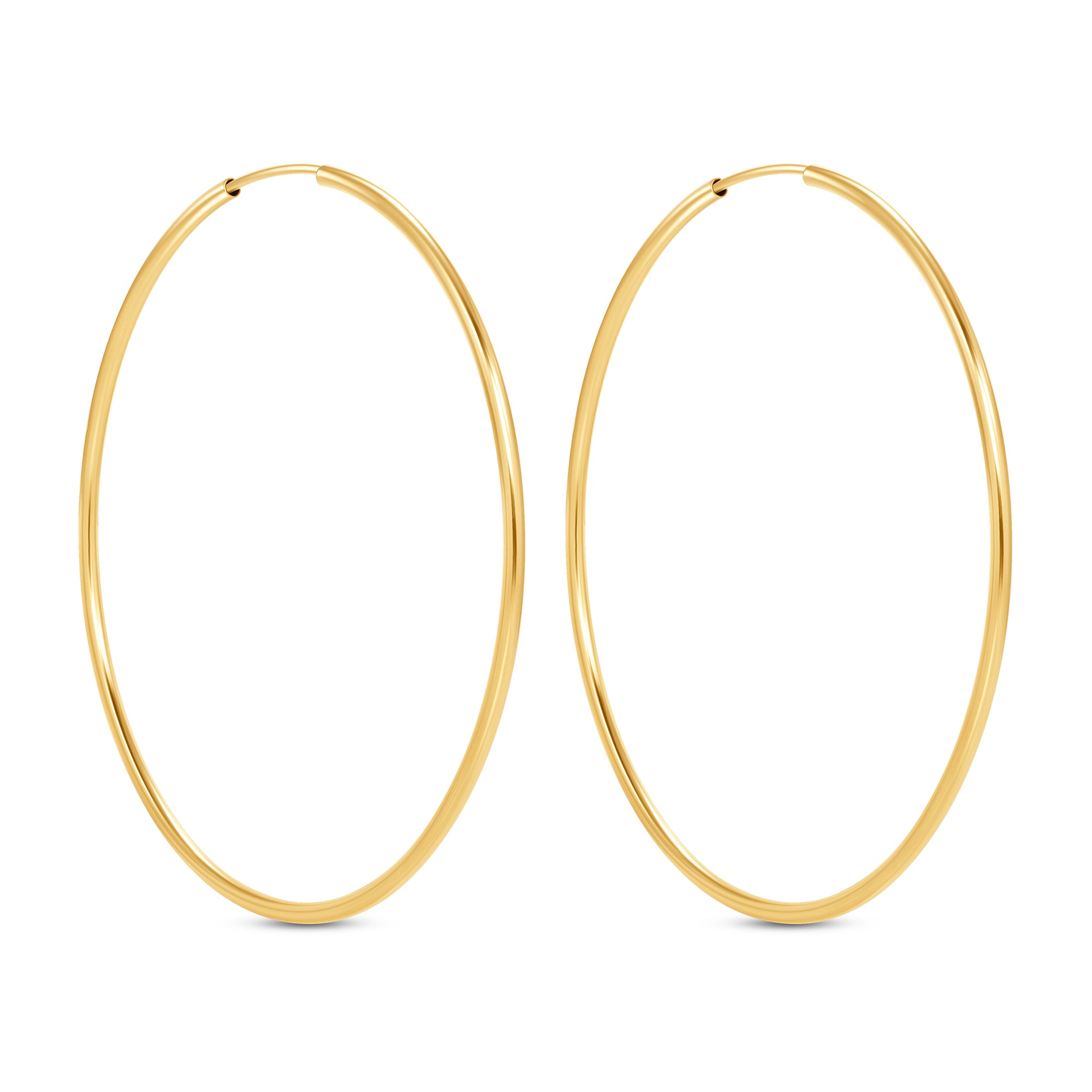 These bold, lightweight hoops feature a seamless endless closure for all-day comfort and security. Crafted in 14K solid gold, our Endless Hoop Earrings are a jewelry box essential. They are flexible, ultra-comfortable, and perfect for everyday wear. Whether you wear them solo or layered with other favorites, these hoops will quickly become a piece you’ll never want to take off.