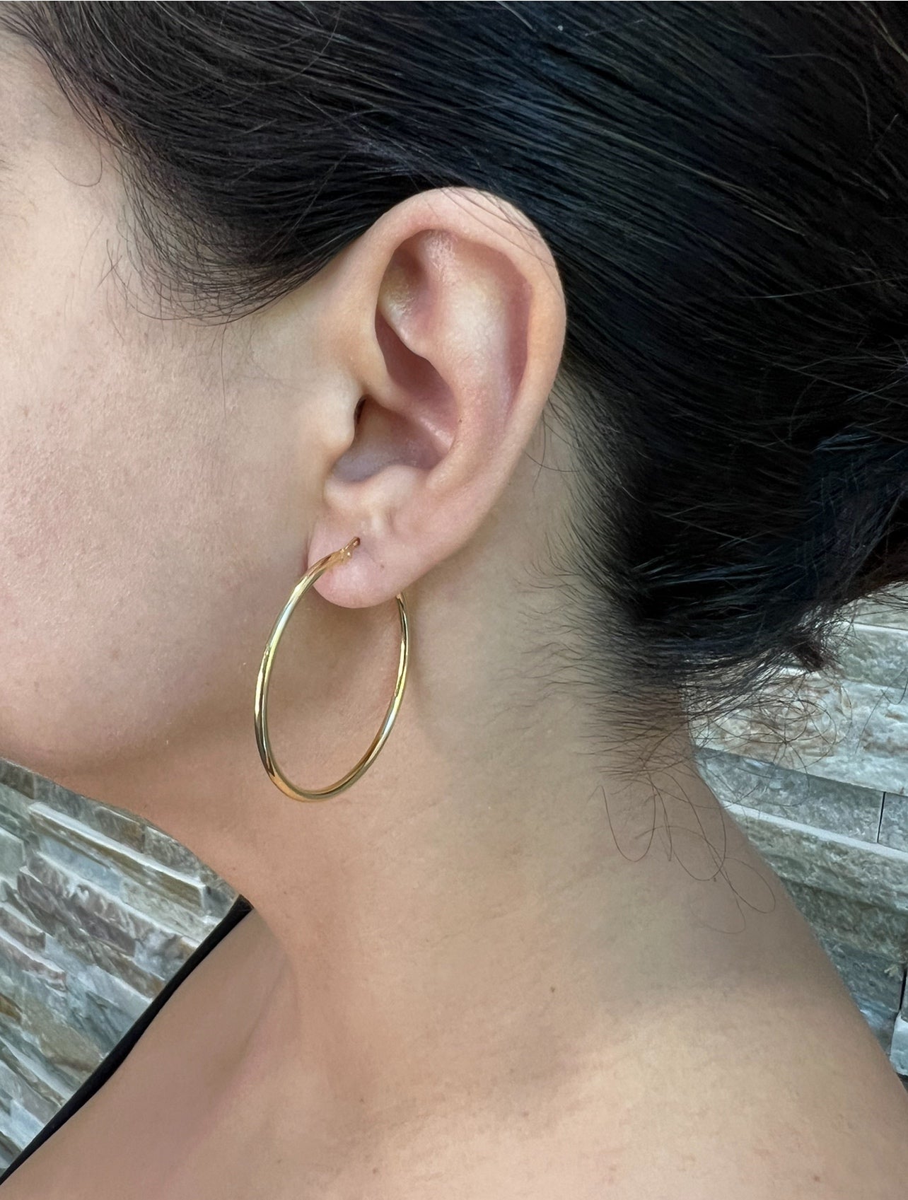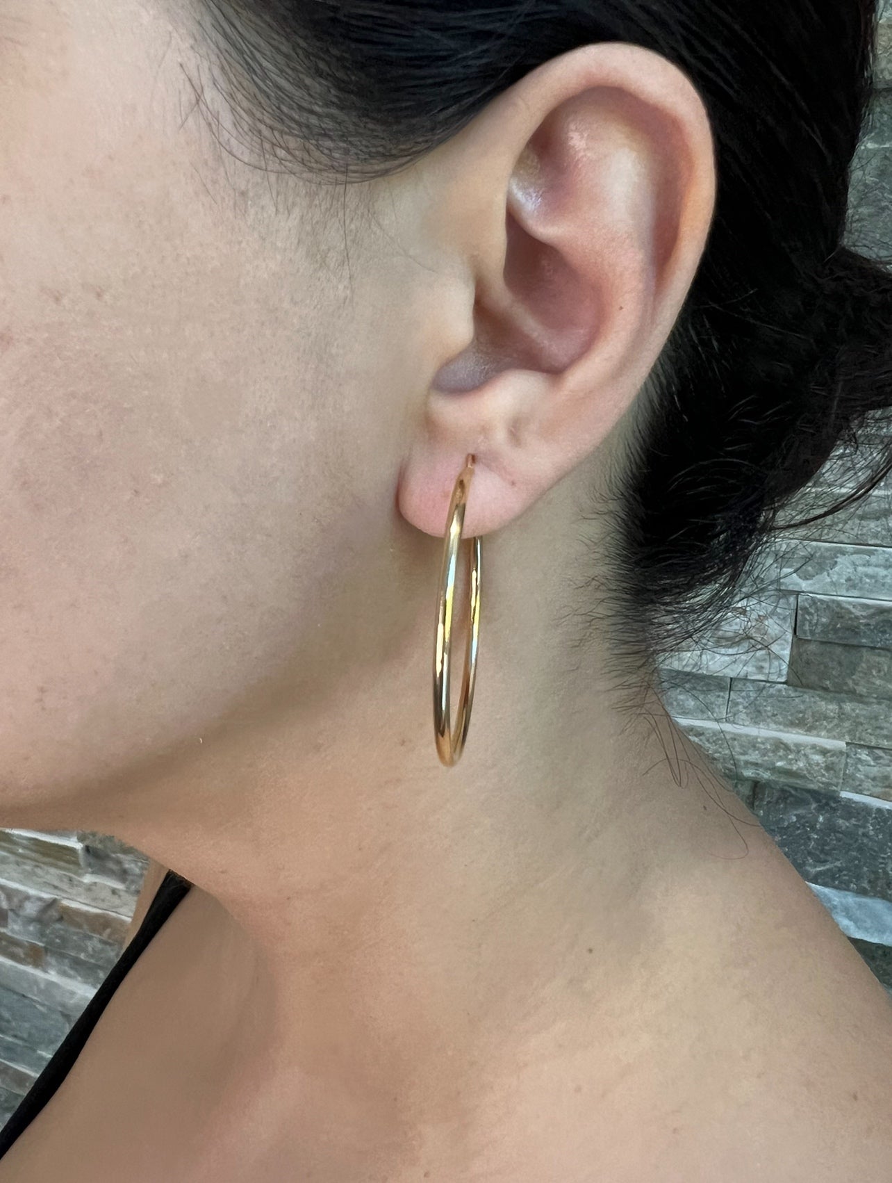 These bold, lightweight hoops feature a seamless endless closure for all-day comfort and security. Crafted in 14K solid gold, our Endless Hoop Earrings are a jewelry box essential. They are flexible, ultra-comfortable, and perfect for everyday wear. Whether you wear them solo or layered with other favorites, these hoops will quickly become a piece you’ll never want to take off.