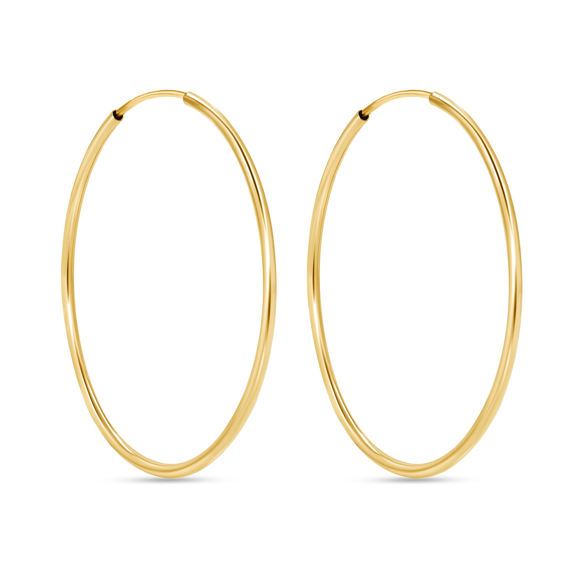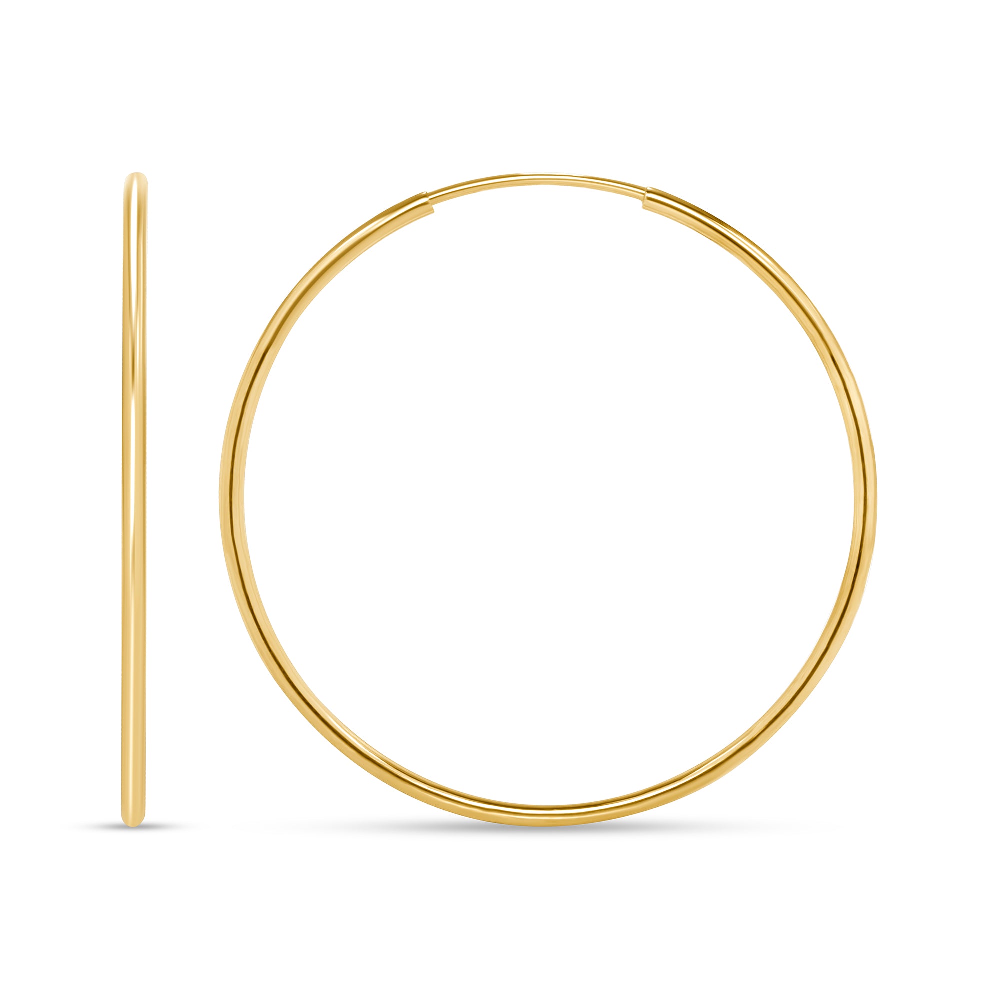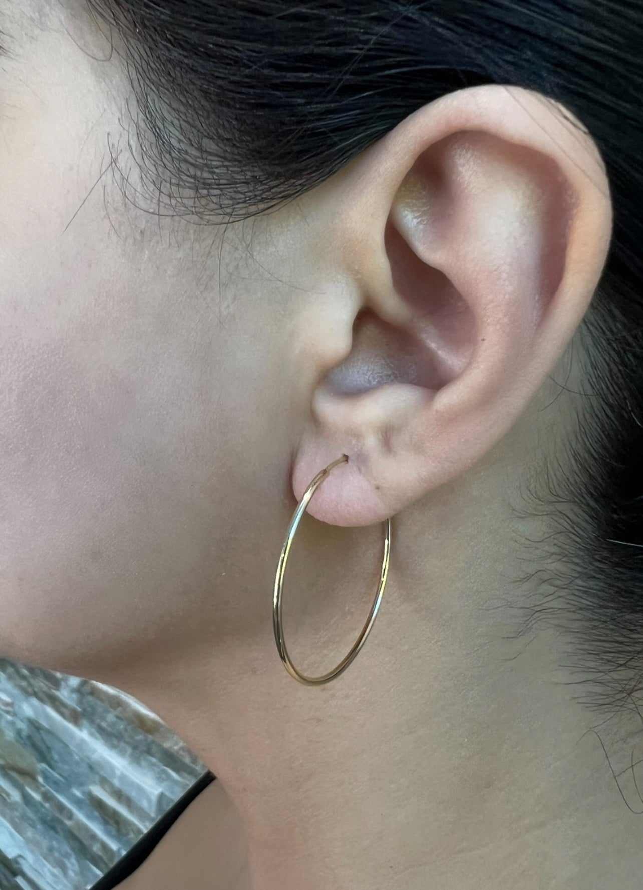 These bold, lightweight hoops feature a seamless endless closure for all-day comfort and security. Crafted in 14K solid gold, our Endless Hoop Earrings are a jewelry box essential. They are flexible, ultra-comfortable, and perfect for everyday wear. Whether you wear them solo or layered with other favorites, these hoops will quickly become a piece you’ll never want to take off.