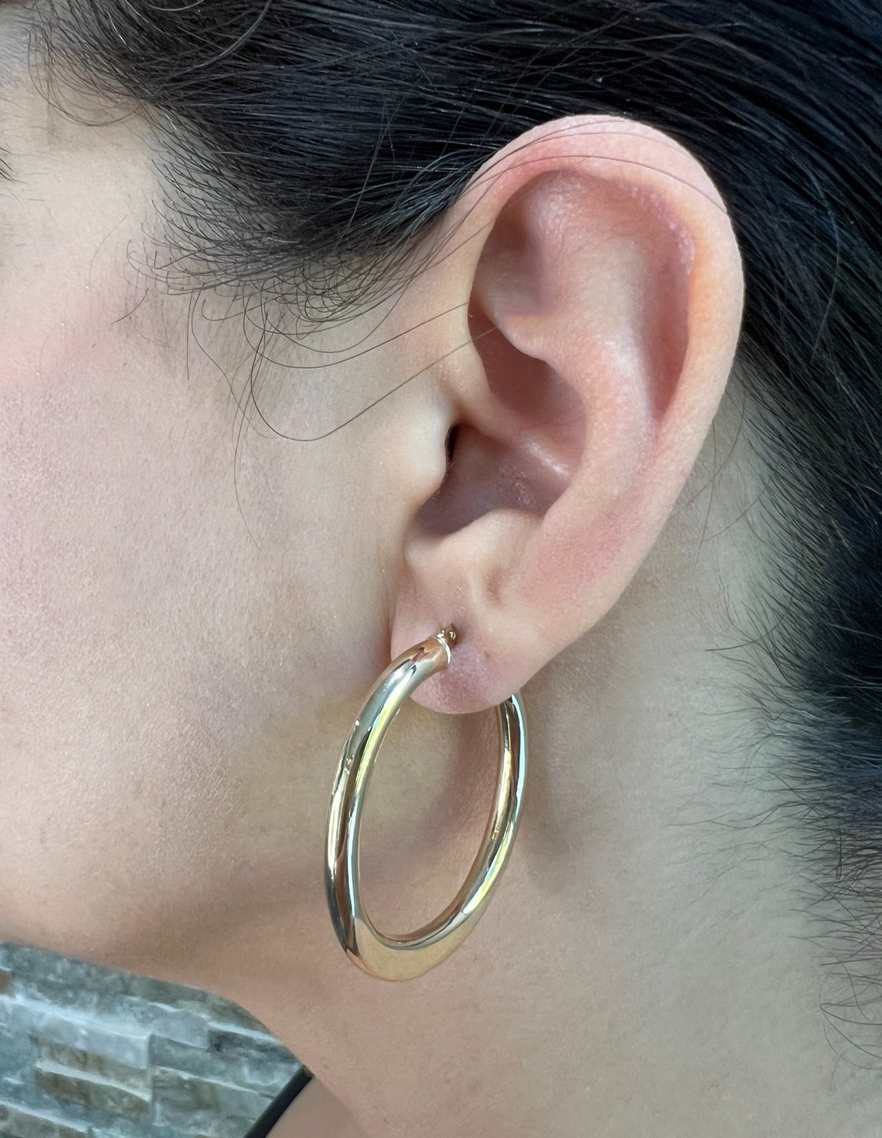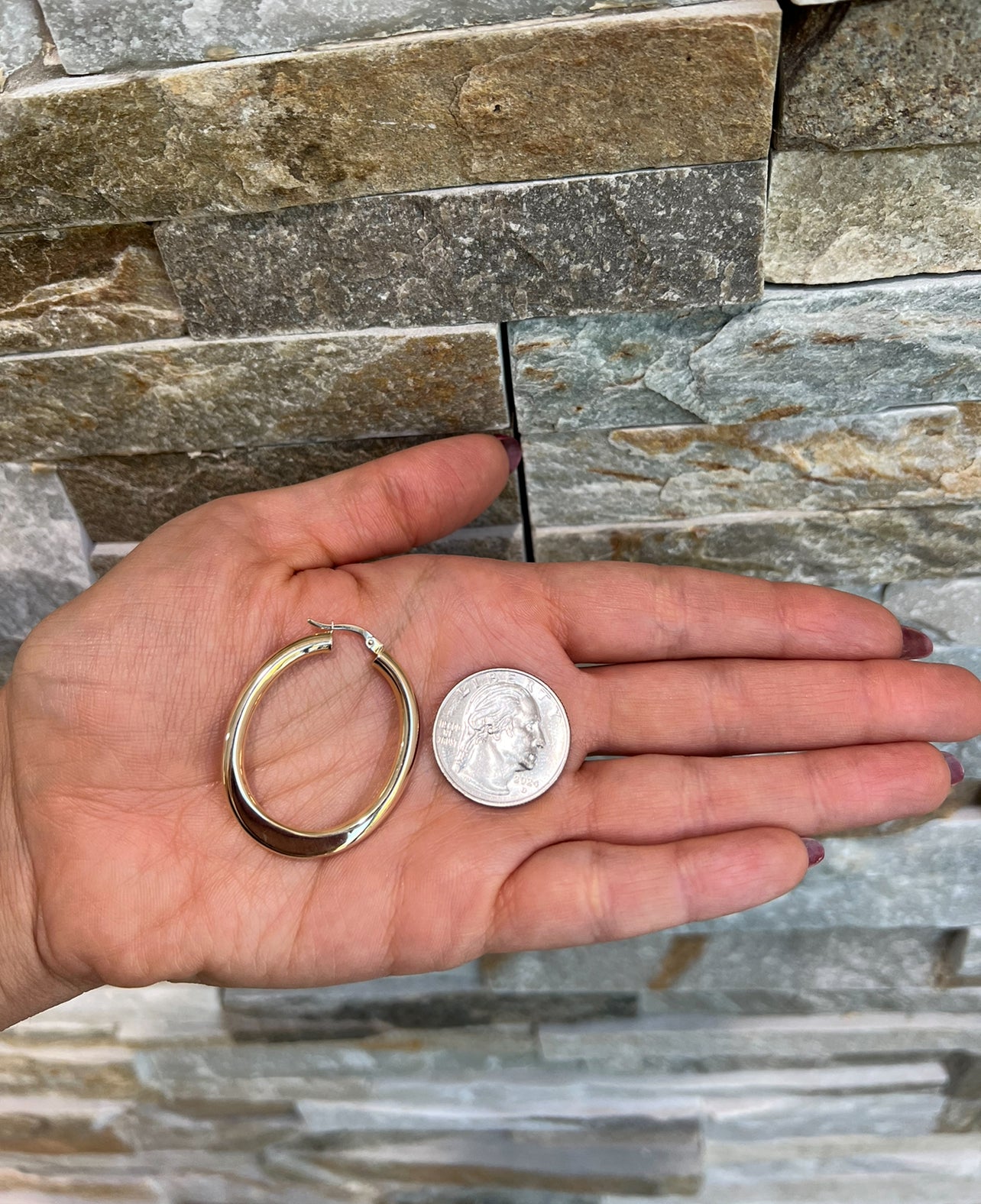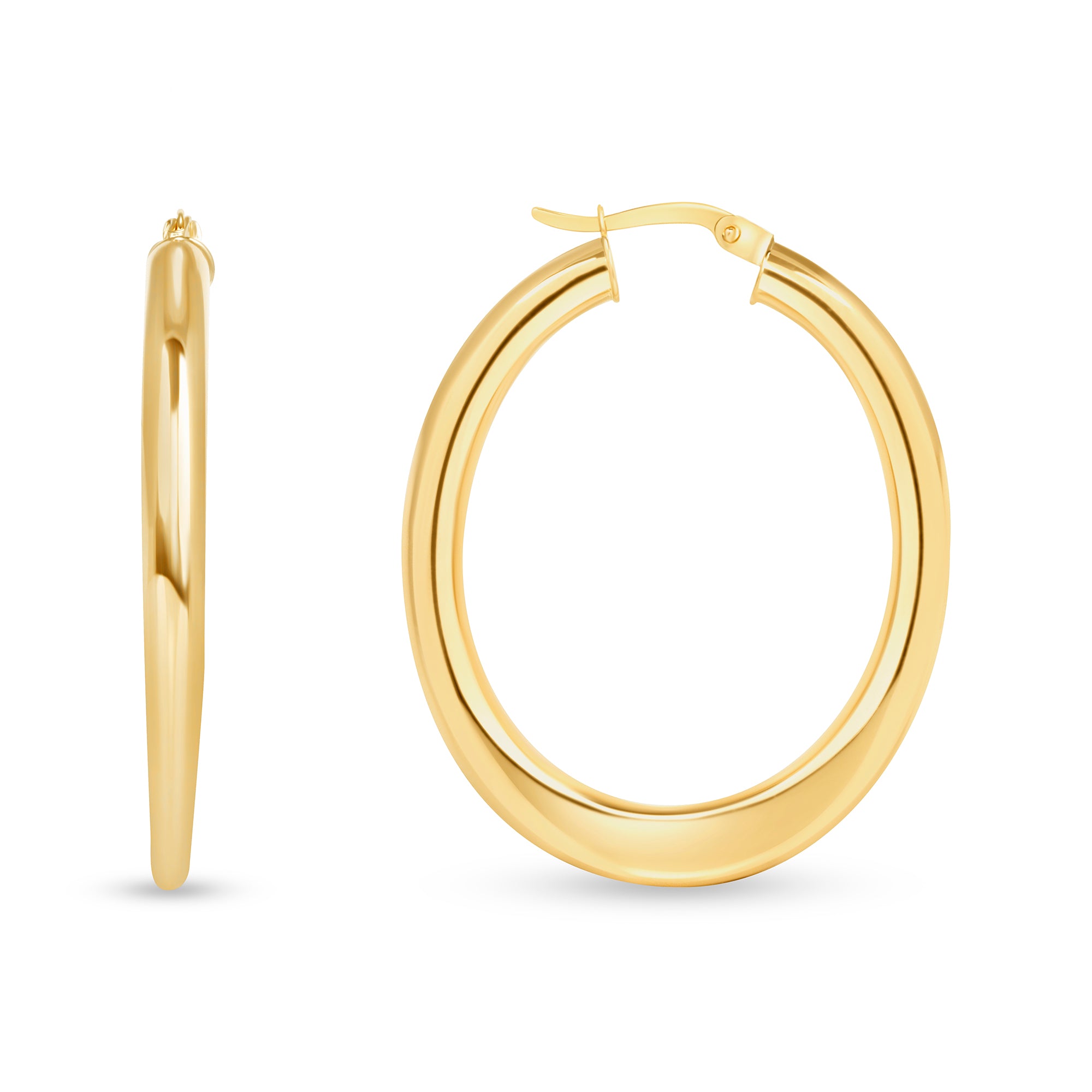 Our favorite classic oval hoops, crafted in 14K gold, offer a bold yet lightweight design that’s comfortable enough for all-day wear. These earrings are an essential accessory this season, perfect for any outfit—from casual jeans and a tee to a formal ensemble.