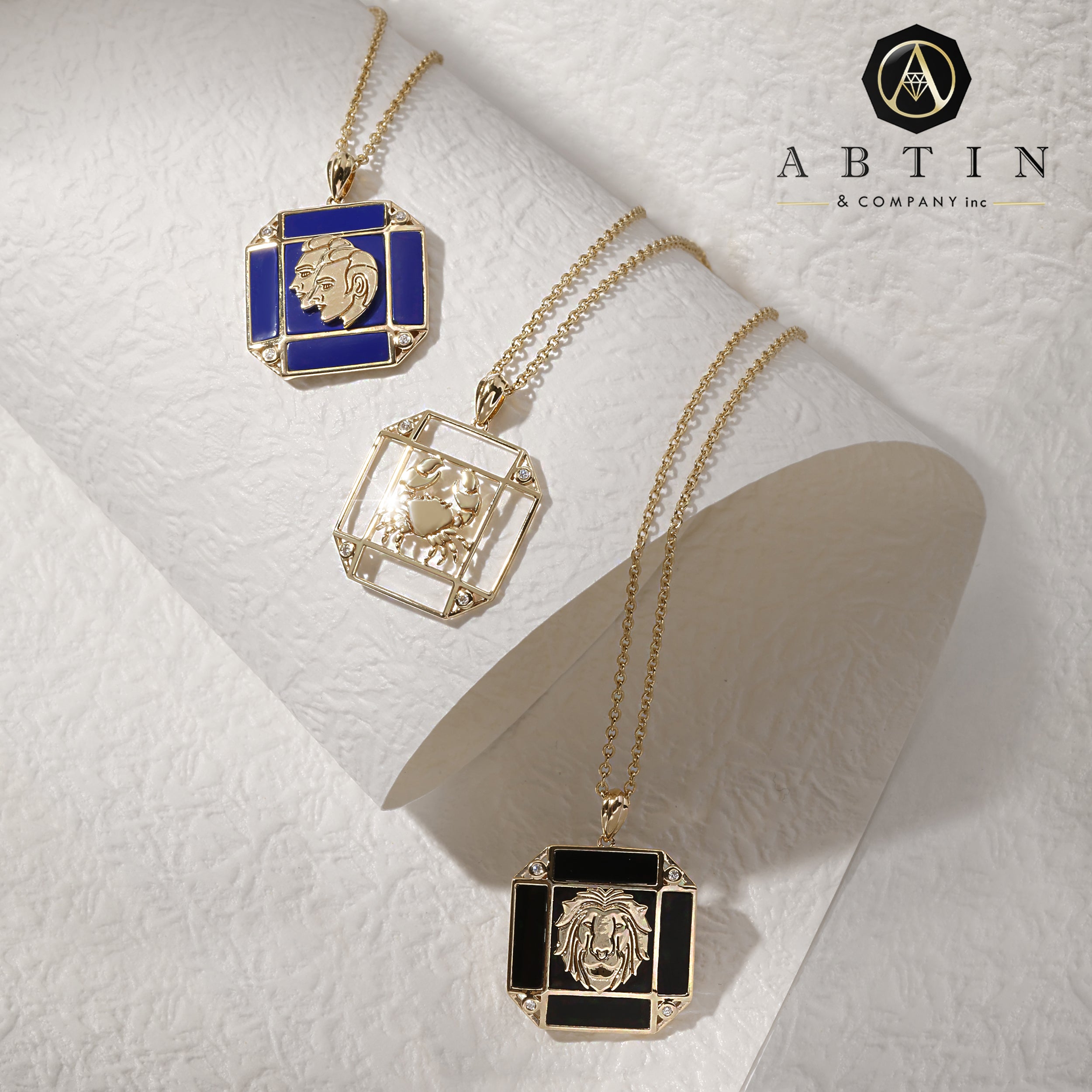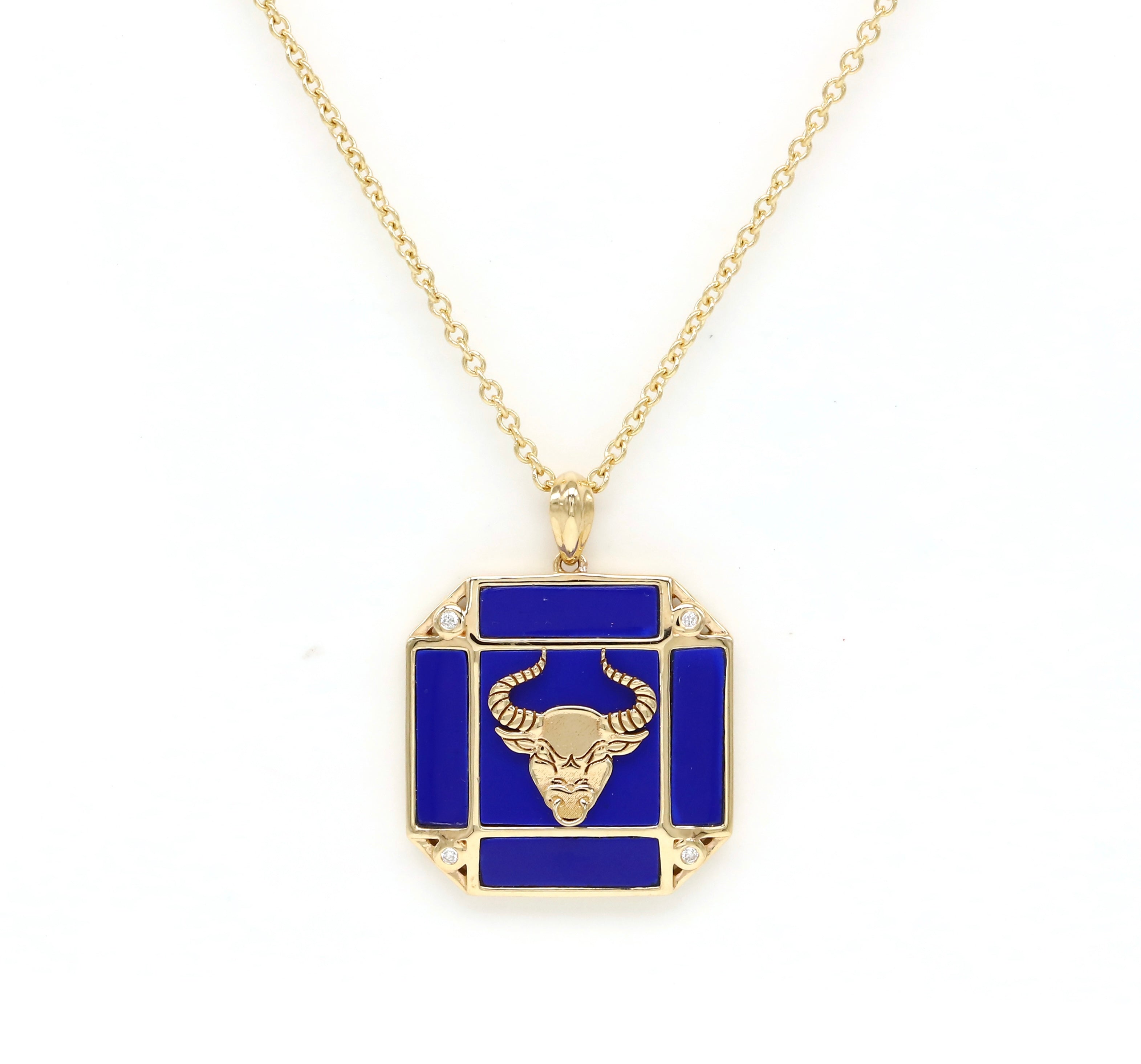 14K Gold Lapis & Diamond Taurus Horoscope Square Pendant Necklace