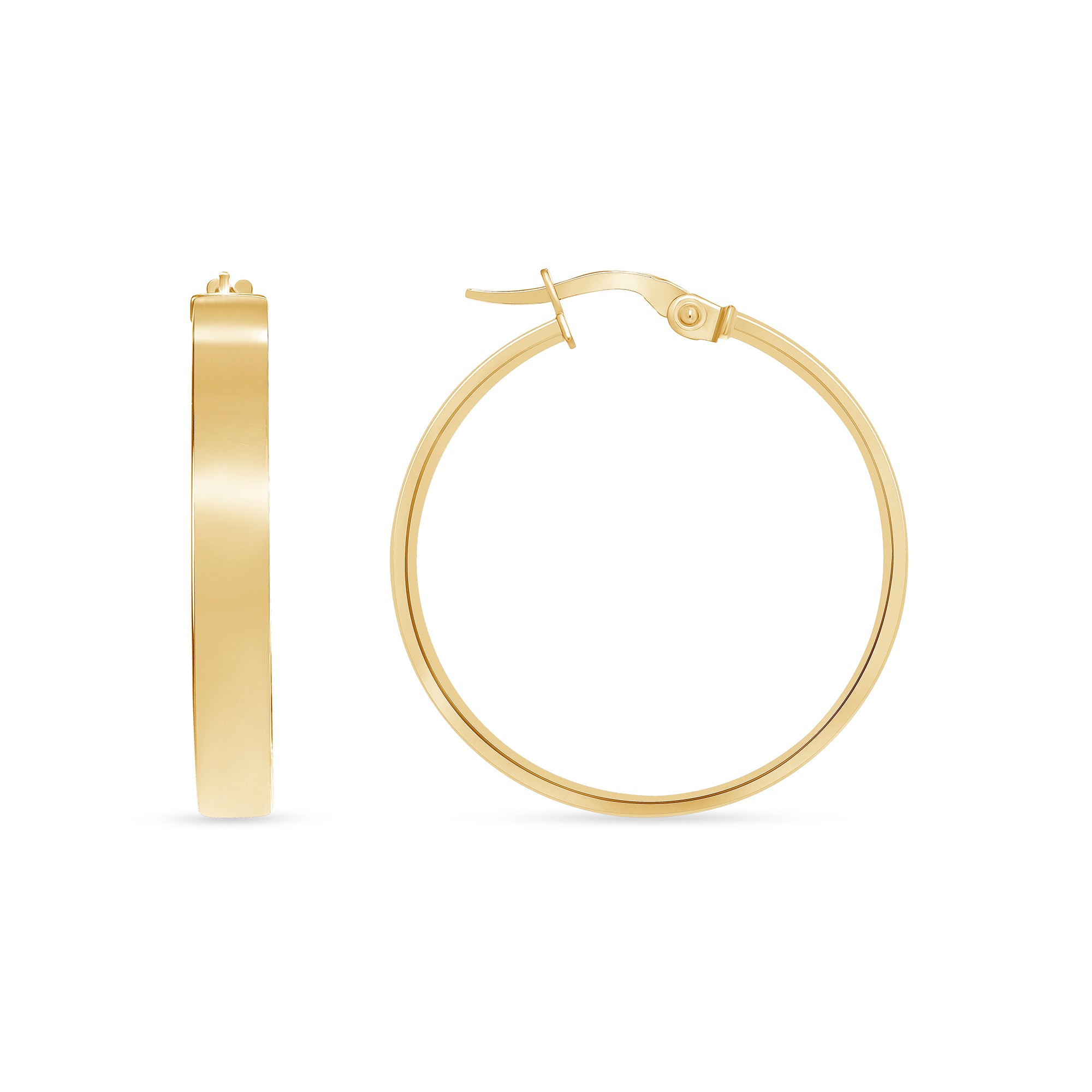 14K Gold Large Wide Flat Hoop Earrings
