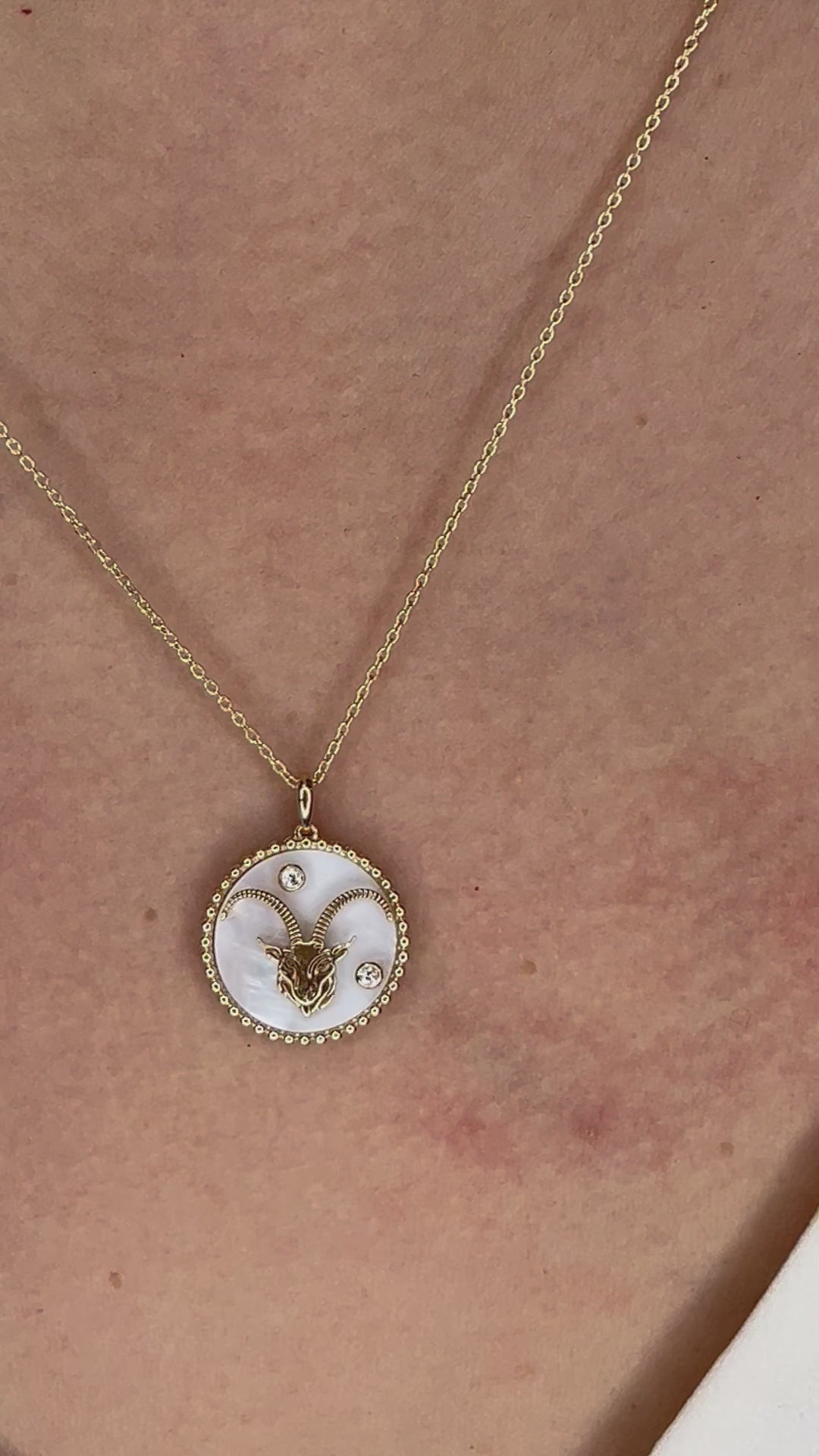 14K Gold & Diamond Capricorn Zodiac Medallion