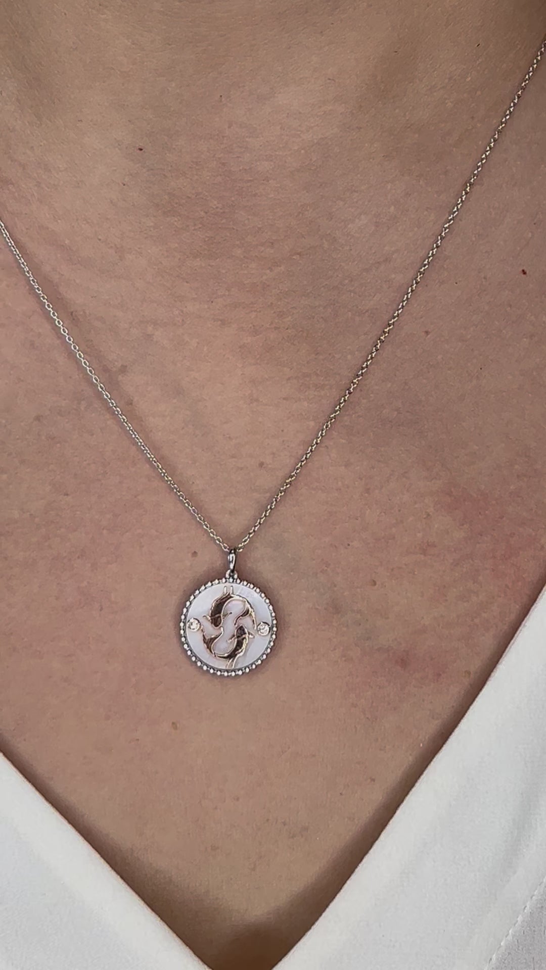 14K Gold Turquoise & Diamond Pisces Horoscope Medallion