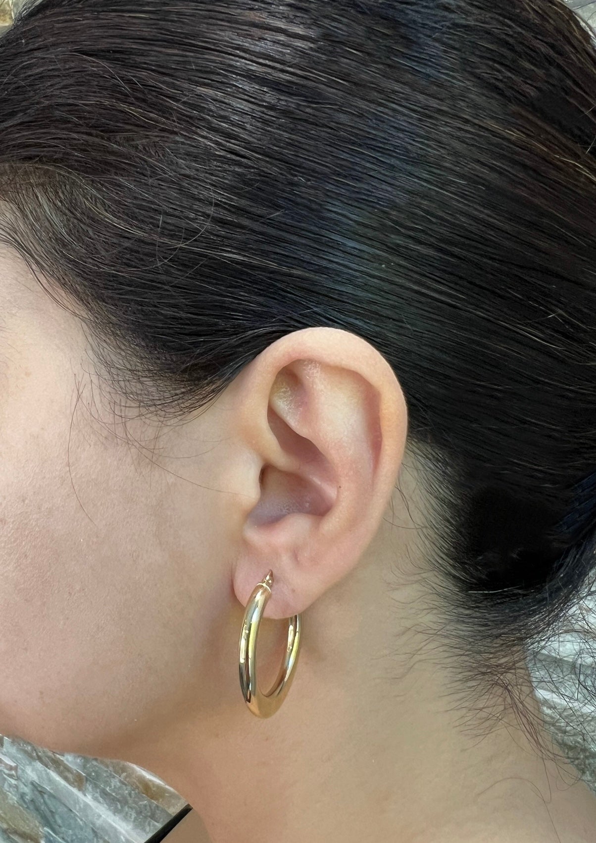 Enhance your look with these sleek 14K gold tube hoop earrings. Perfectly versatile, they bring a bold touch whether worn alone or layered with other favorites. Lightweight and timeless, these hoops are your new go-to for effortlessly elevating any outfit from day to night.
