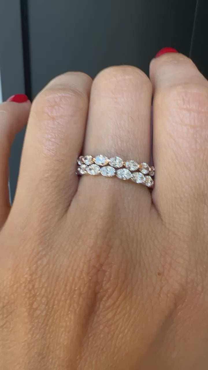 14K Gold Oval Cut Halfway Eternity East West Floating Set Lab Grown Diamond Wedding Band Ring