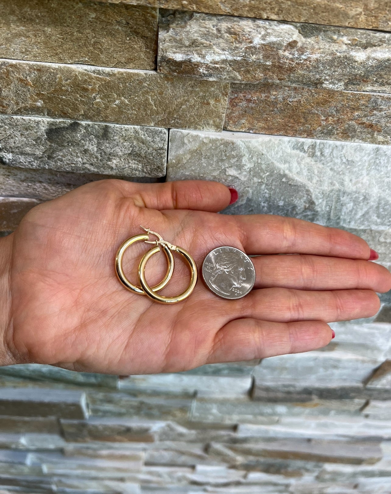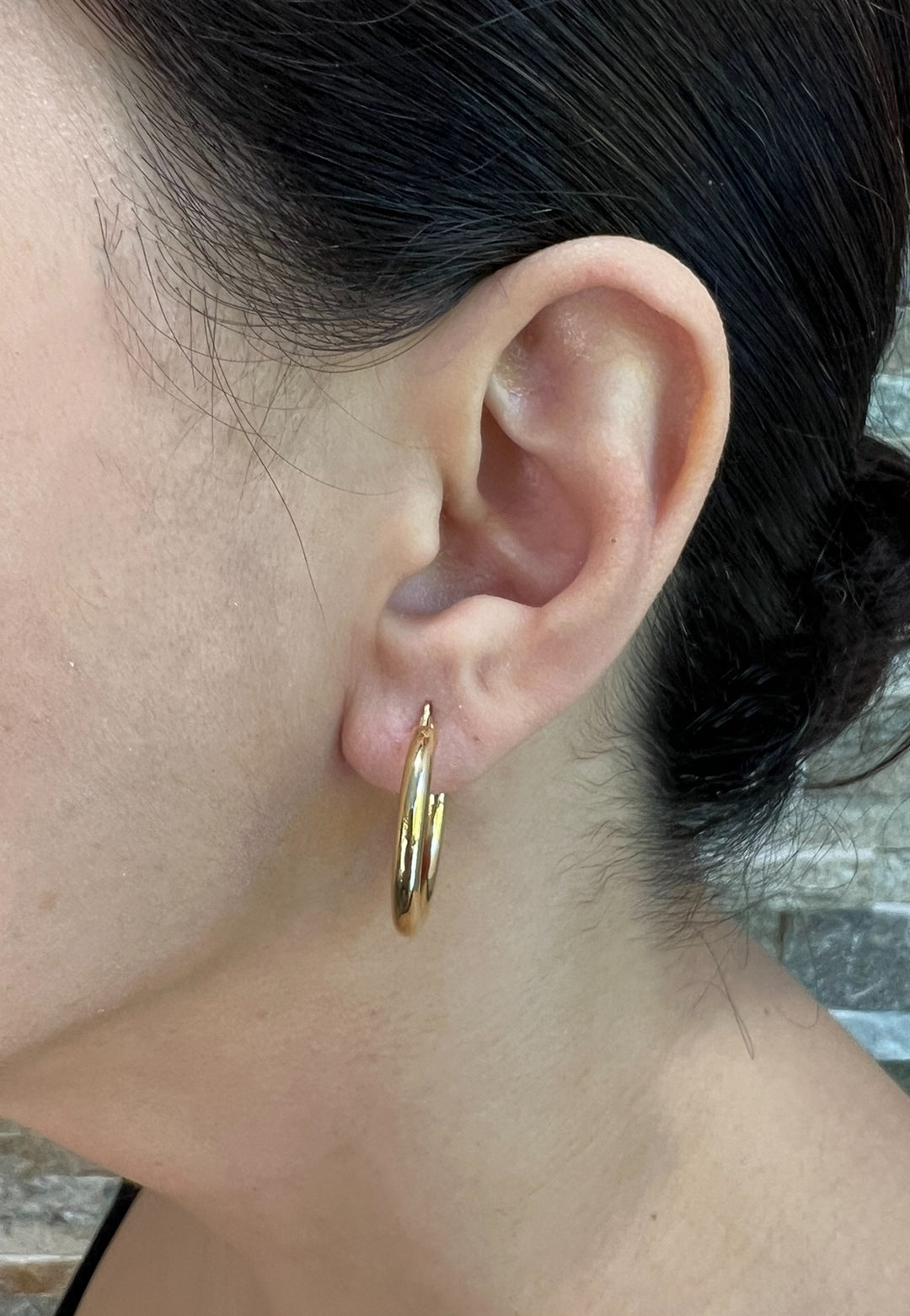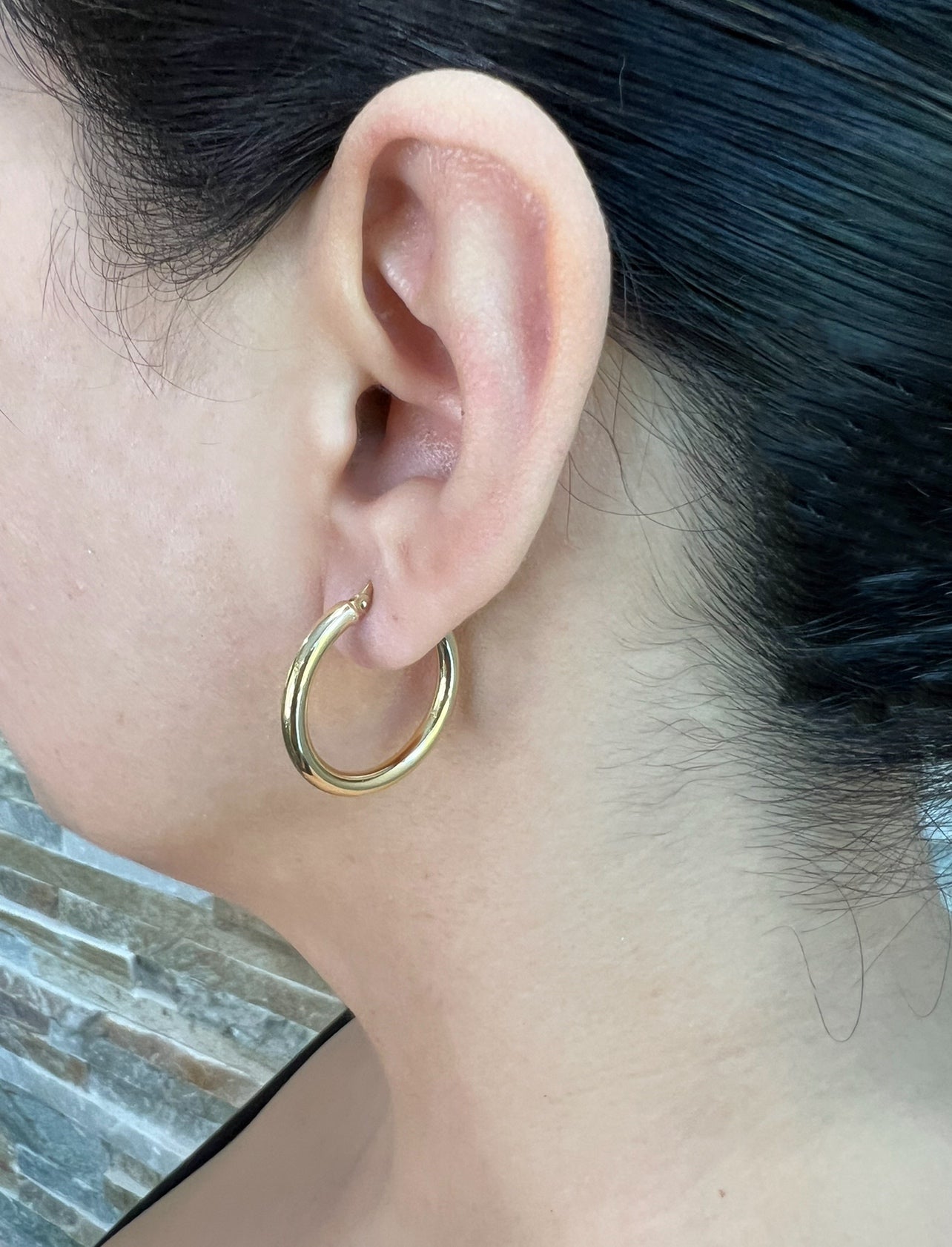 These bold, lightweight hoops feature a seamless endless closure for all-day comfort and security. Crafted in 14K solid gold, our Endless Hoop Earrings are a jewelry box essential. They are flexible, ultra-comfortable, and perfect for everyday wear. Whether you wear them solo or layered with other favorites, these hoops will quickly become a piece you’ll never want to take off.