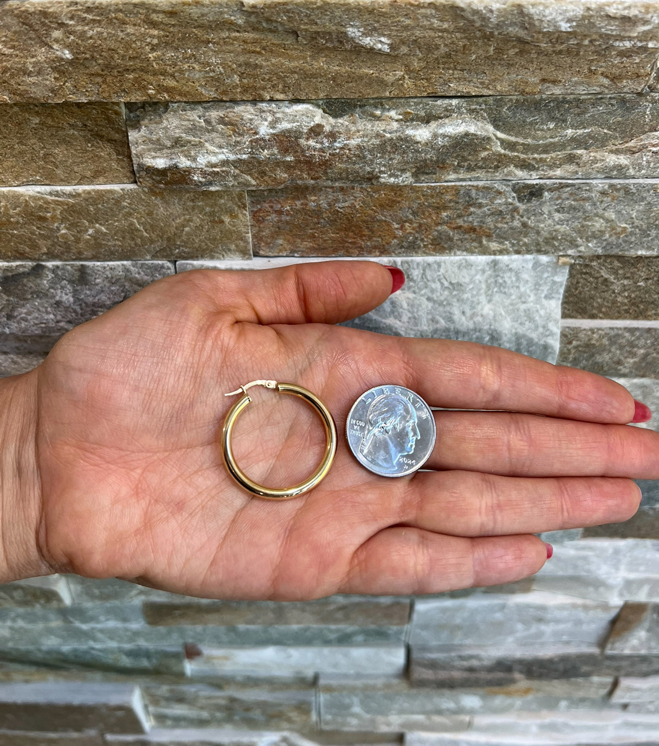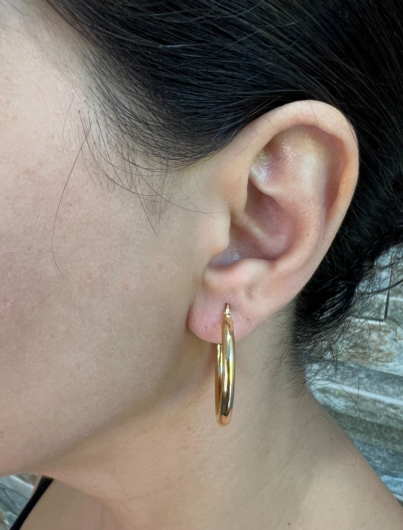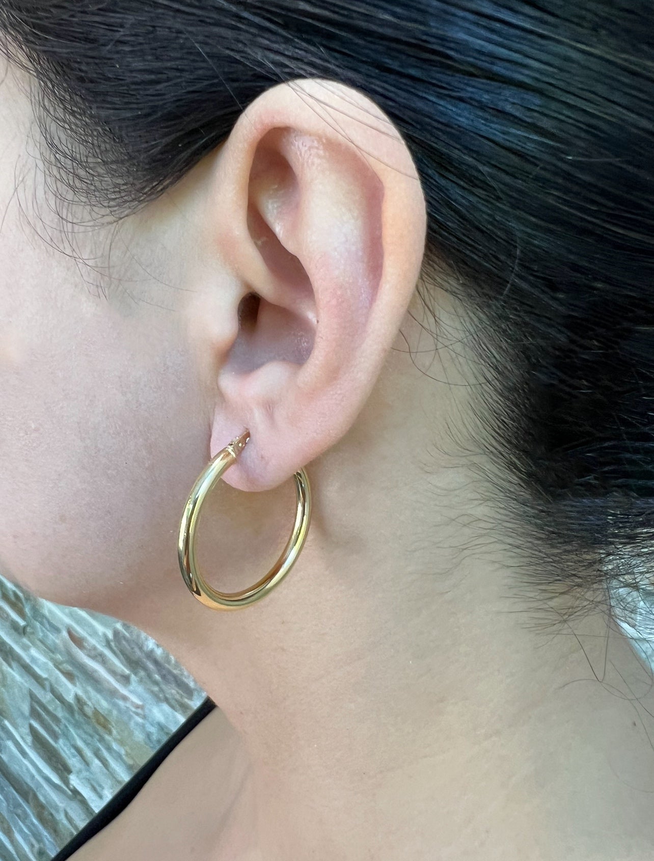 These bold, lightweight hoops feature a seamless endless closure for all-day comfort and security. Crafted in 14K solid gold, our Endless Hoop Earrings are a jewelry box essential. They are flexible, ultra-comfortable, and perfect for everyday wear. Whether you wear them solo or layered with other favorites, these hoops will quickly become a piece you’ll never want to take off.