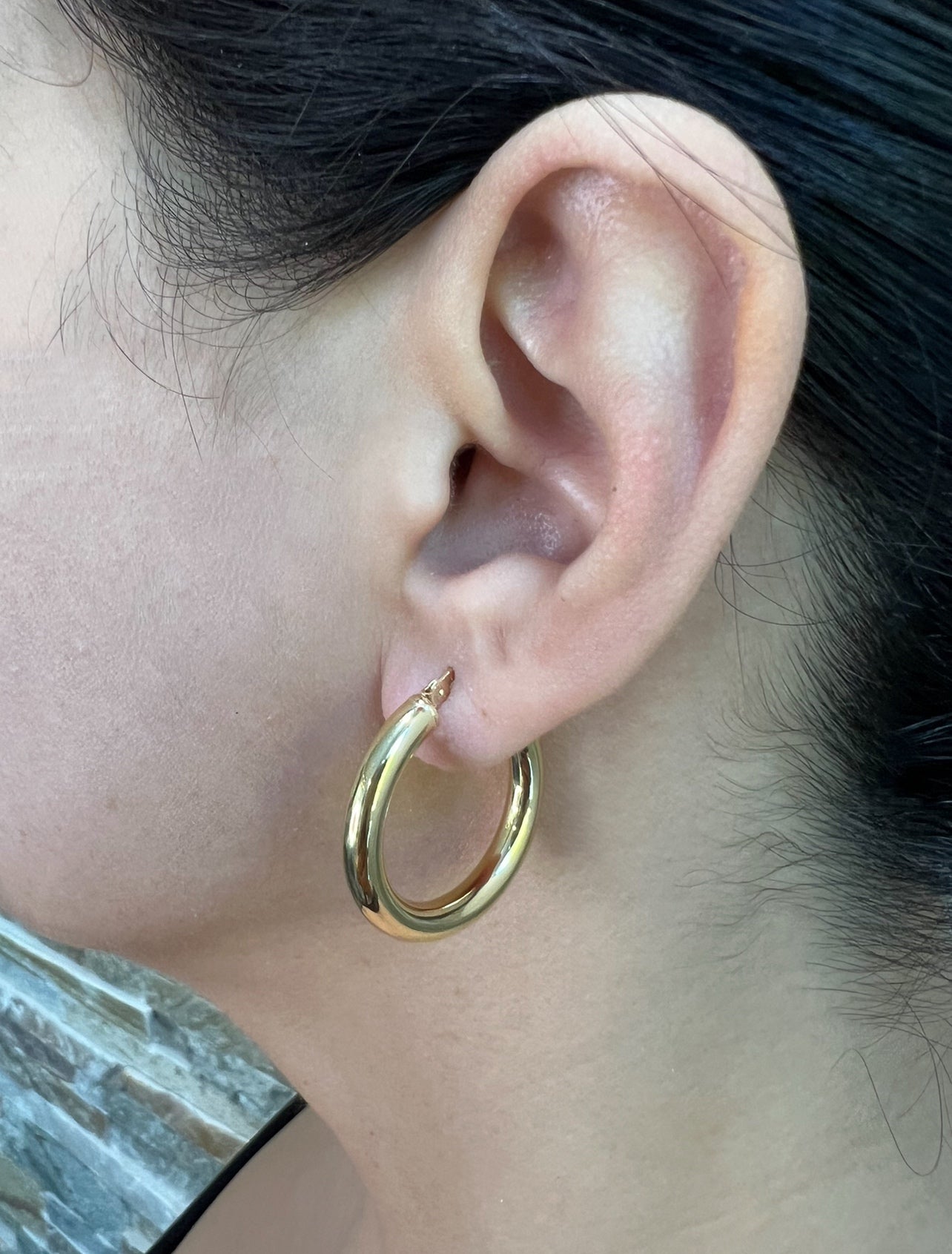 These bold, lightweight hoops feature a seamless endless closure for all-day comfort and security. Crafted in 14K solid gold, our Endless Hoop Earrings are a jewelry box essential. They are flexible, ultra-comfortable, and perfect for everyday wear. Whether you wear them solo or layered with other favorites, these hoops will quickly become a piece you’ll never want to take off.