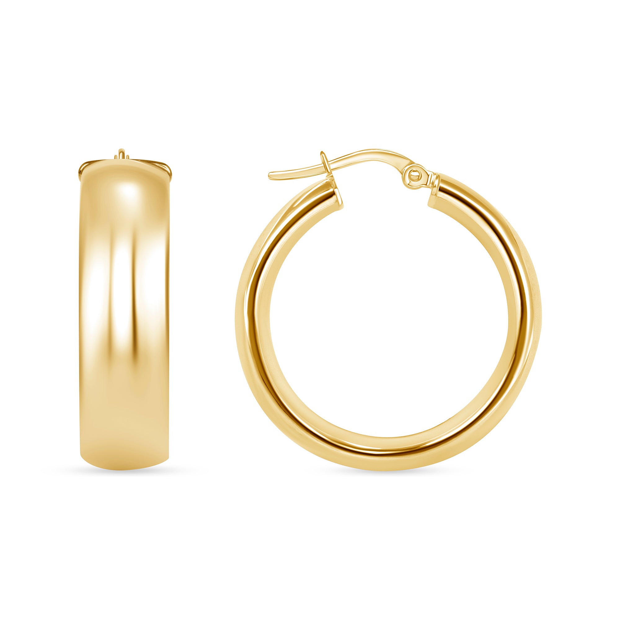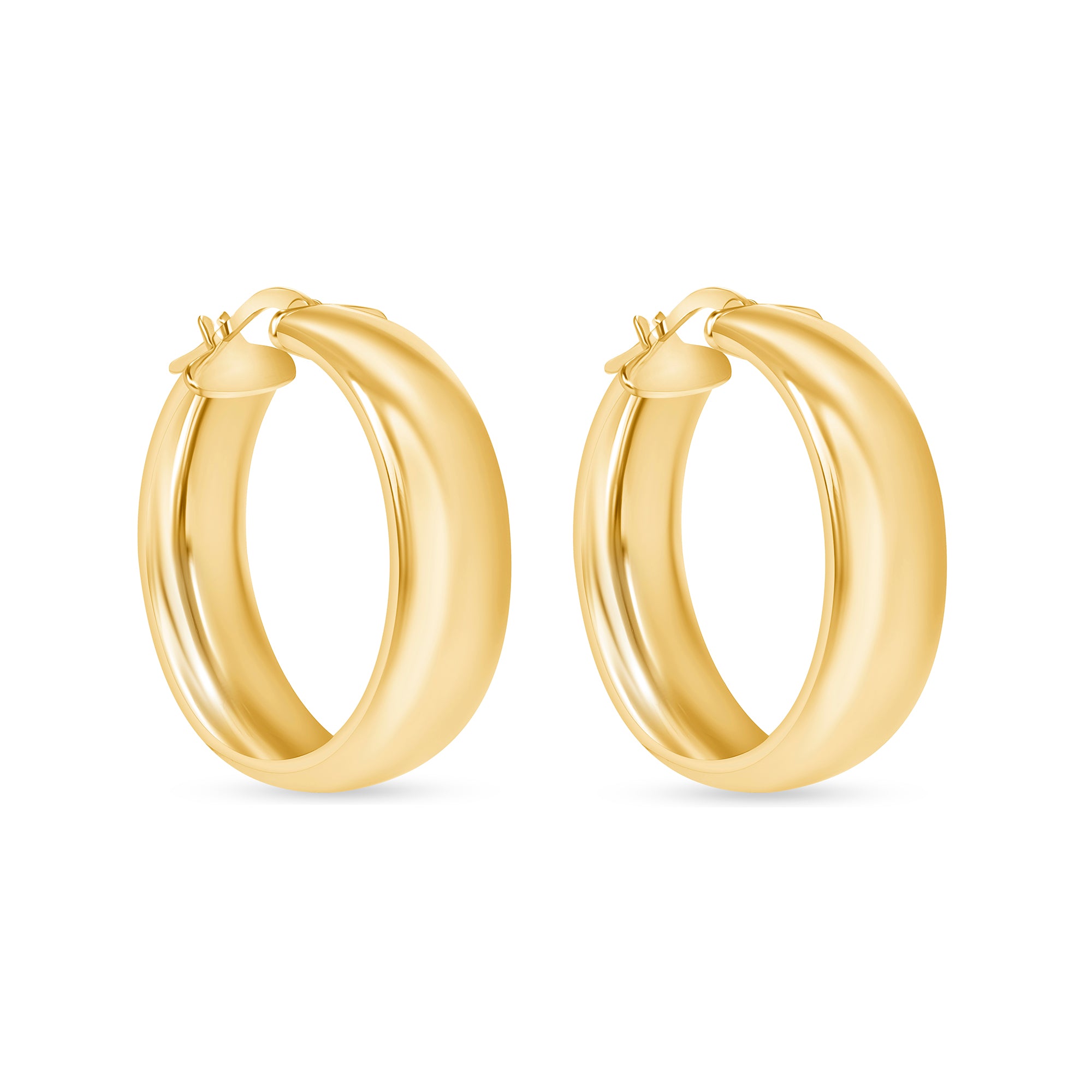14K Gold Wide Dome Hoop Earrings