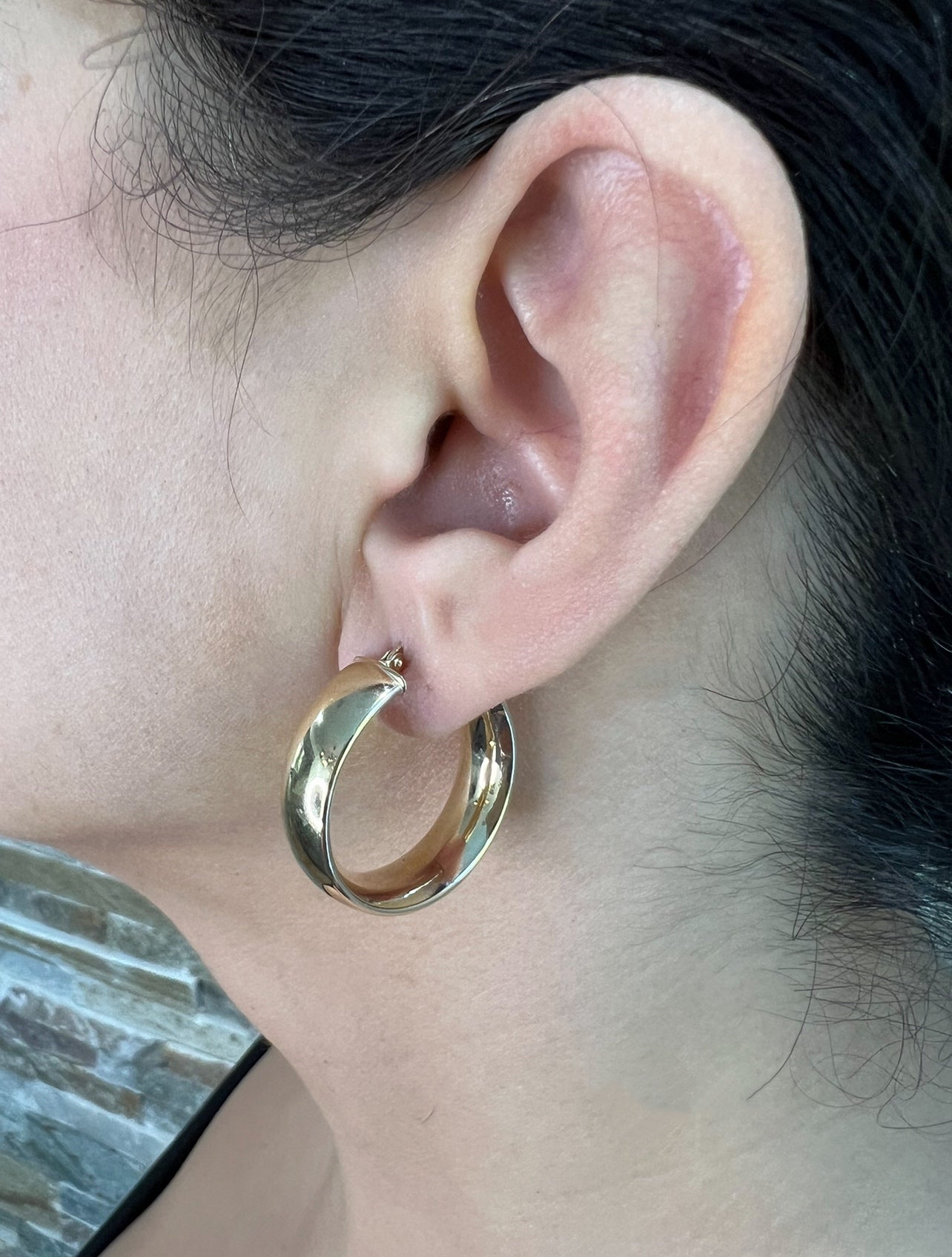 Our timeless 14K wide hoops are essential to any fine jewelry collection. Crafted from solid gold with wide, flattened tubes, they exude a vintage charm, while the curved design and domed effect maximize their shine.