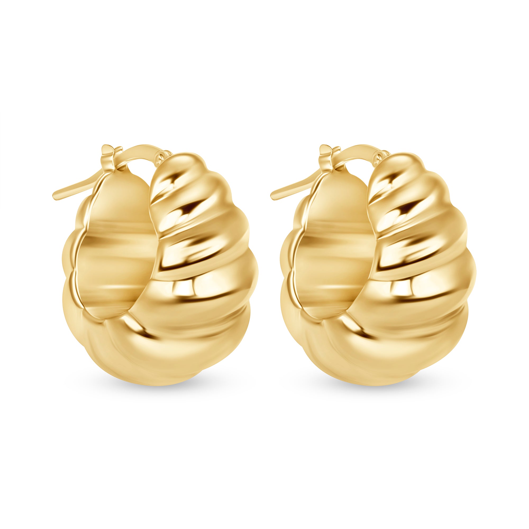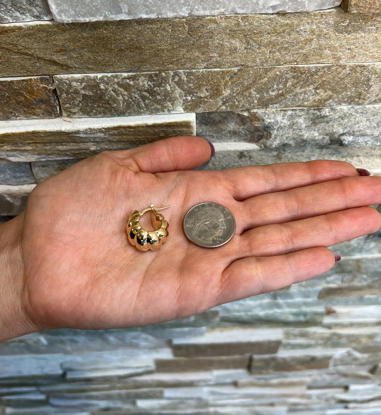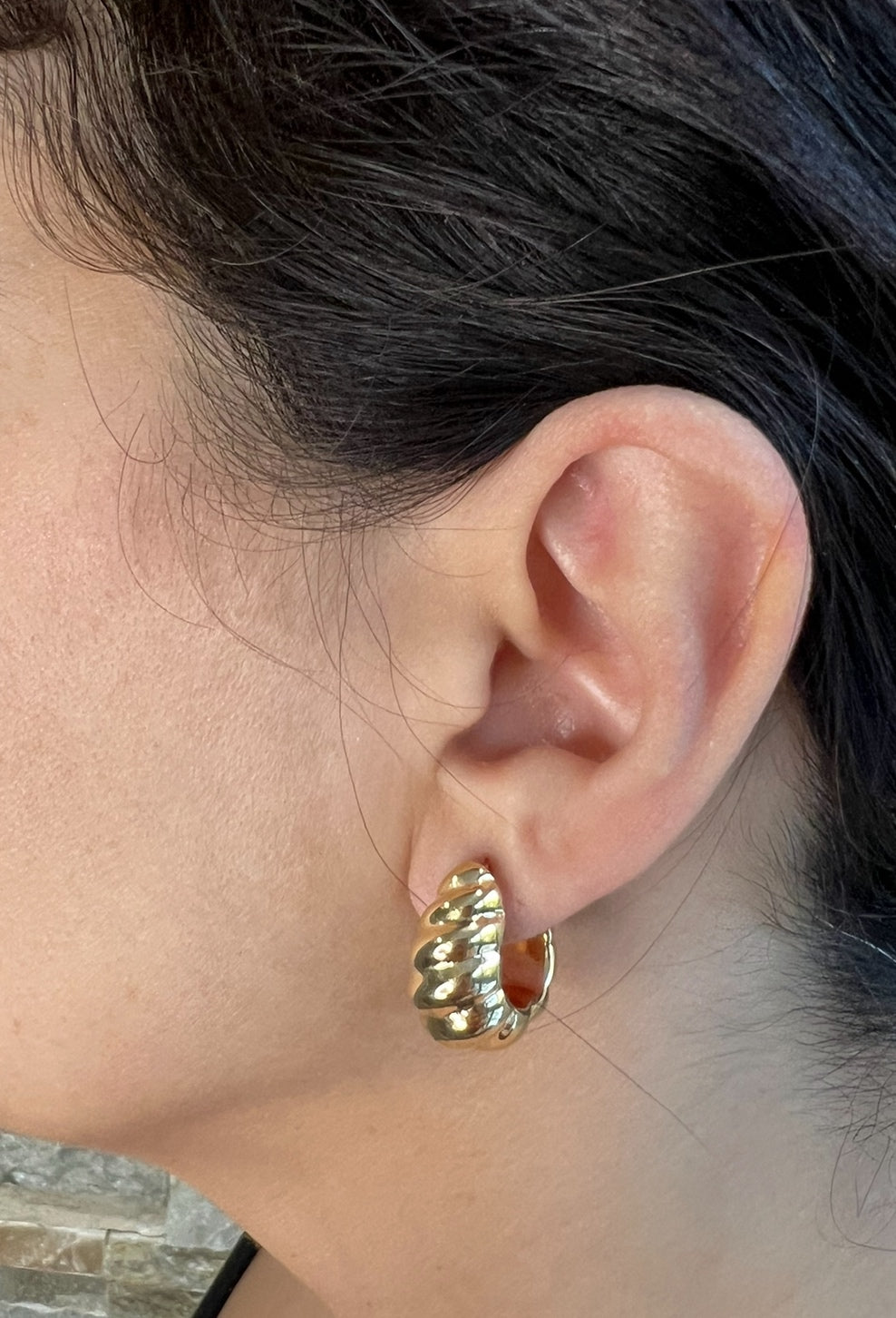 Introducing our Scalloped Huggies, crafted in exquisite 14K yellow gold. Add a touch of refined elegance to your look that effortlessly transitions from day to night. Let your style radiate with confidence. Embrace the charm of our Puff Scalloped Huggies.