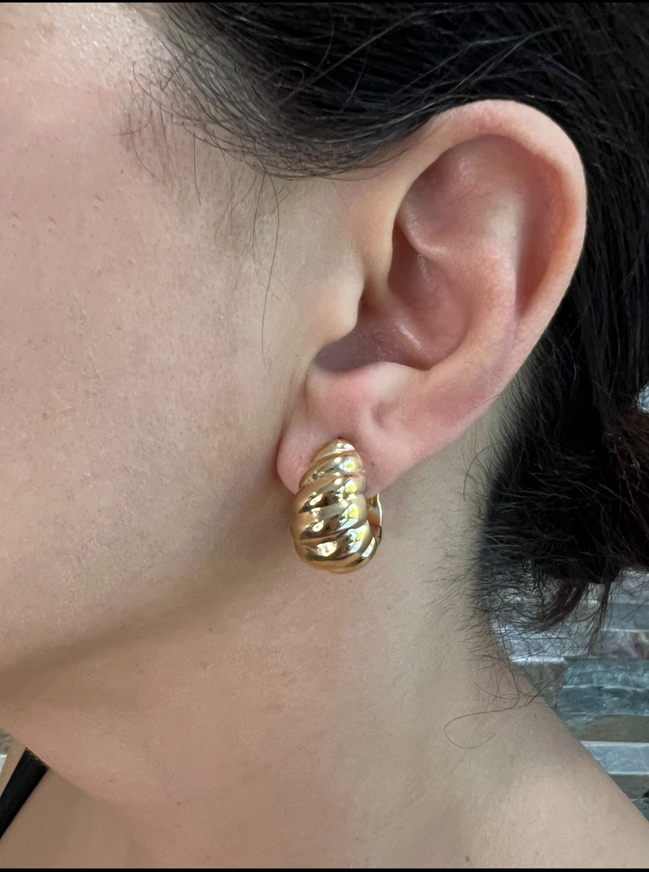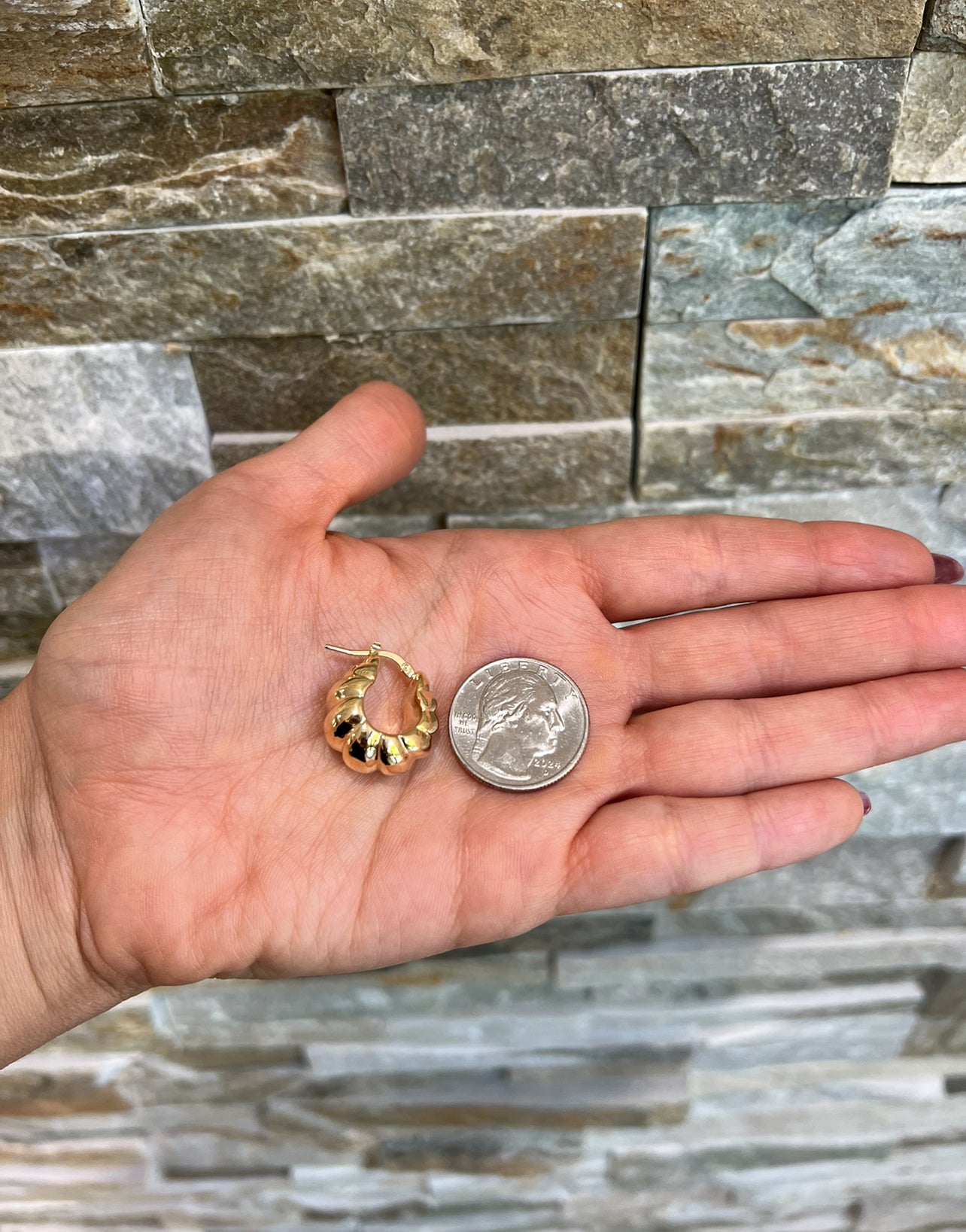 Introducing our Scalloped Huggies, crafted in exquisite 14K yellow gold. Add a touch of refined elegance to your look that effortlessly transitions from day to night. Let your style radiate with confidence. Embrace the charm of our Puff Scalloped Huggies.