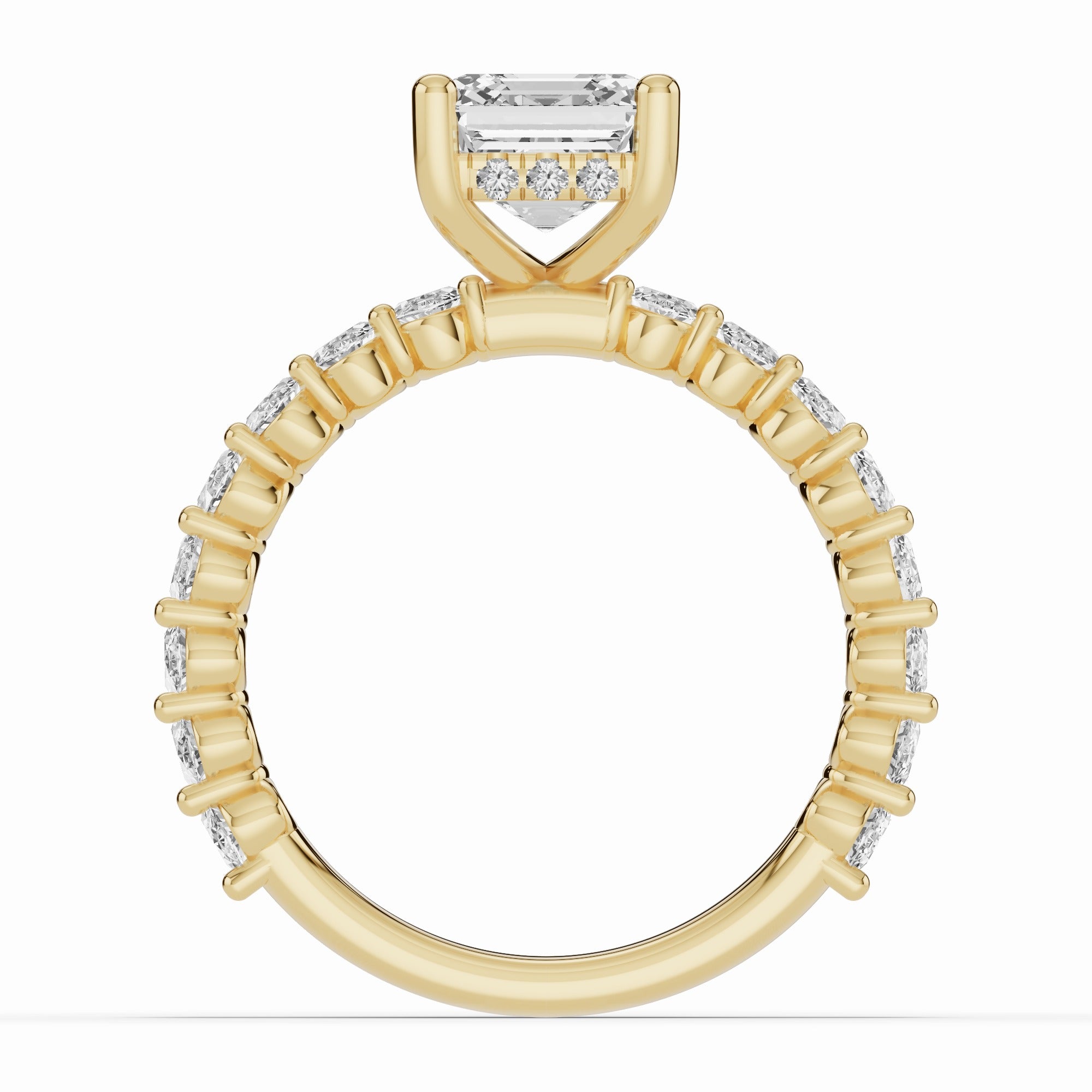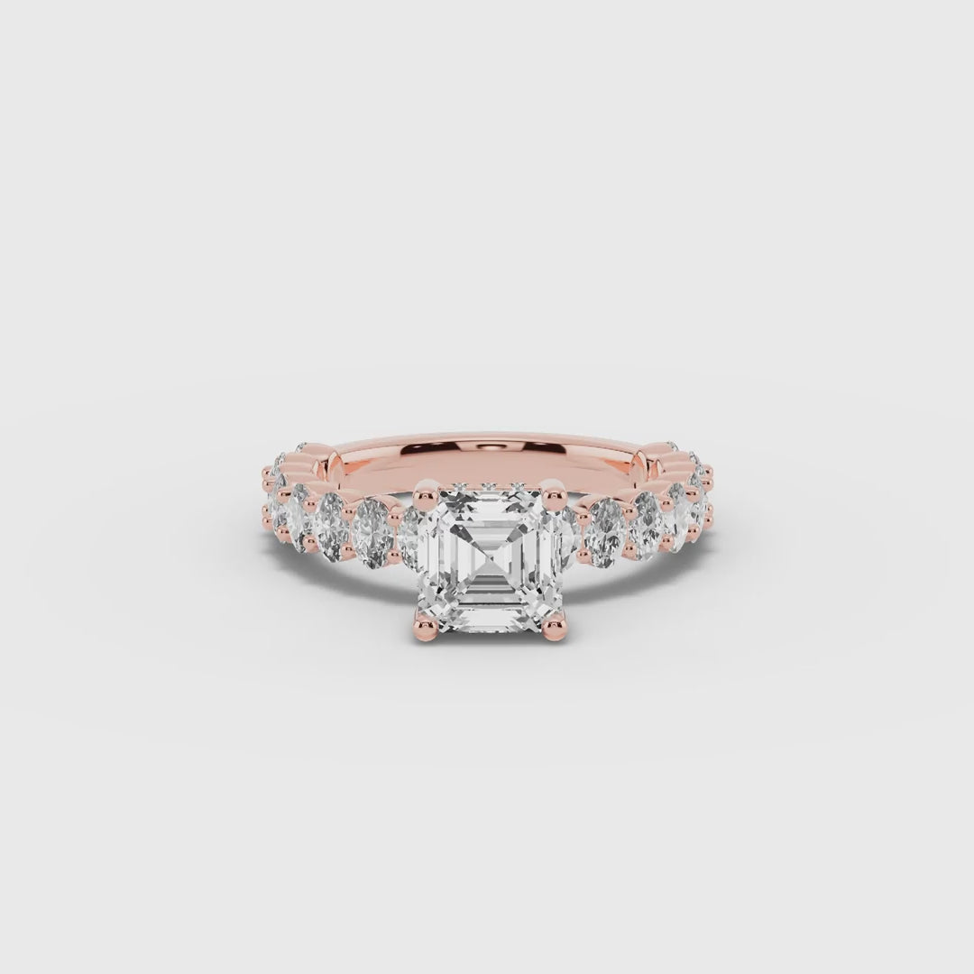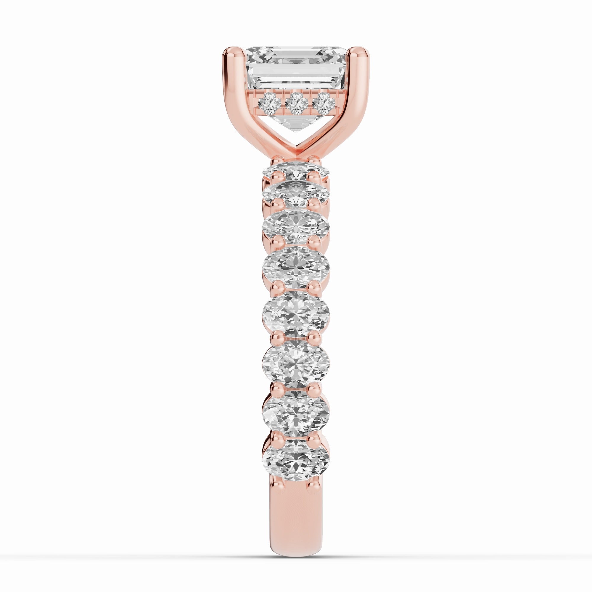 The Aurielle Crown Engagement Ring is a masterpiece of elegance and brilliance, designed for those who love a bold yet refined aesthetic. Its shank is set ¾ of the way around with 16 individually prong-set oval diamonds, creating a striking, elongated look that feels both big and elegant while allowing light to flow through every stone for maximum sparkle.