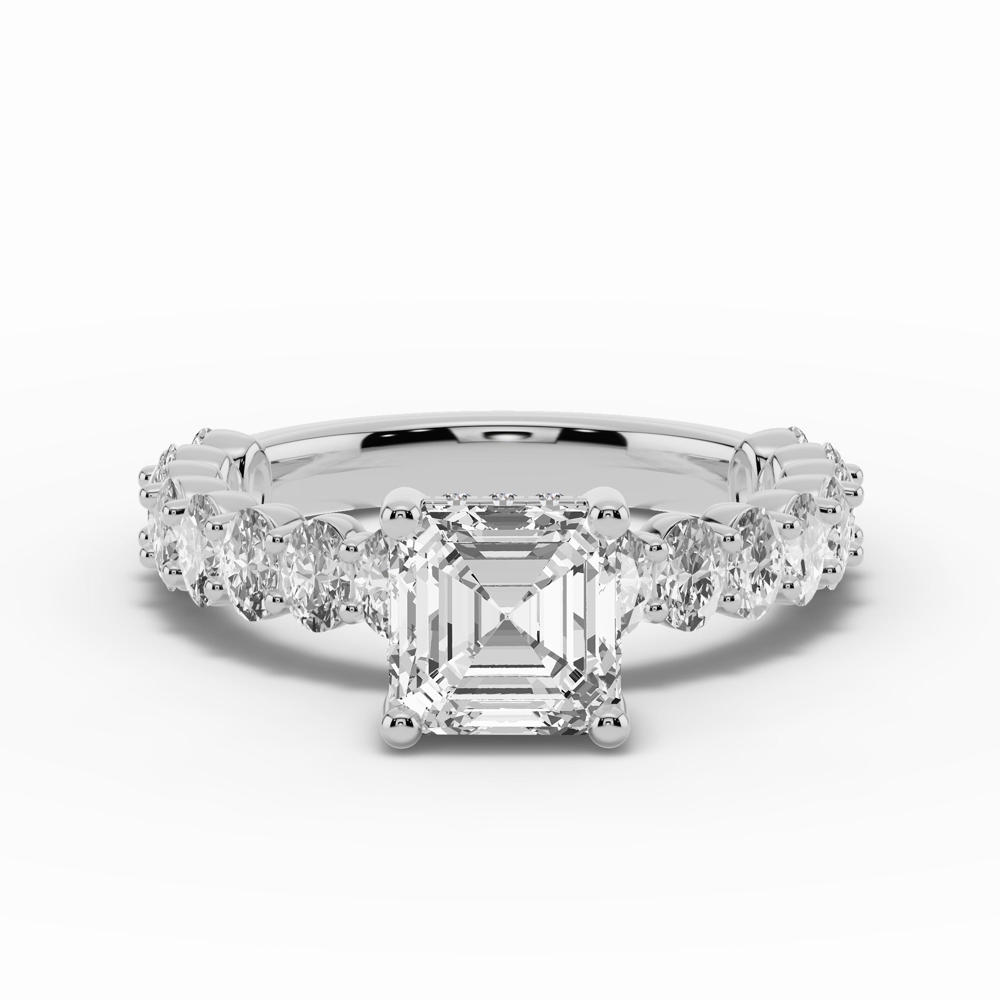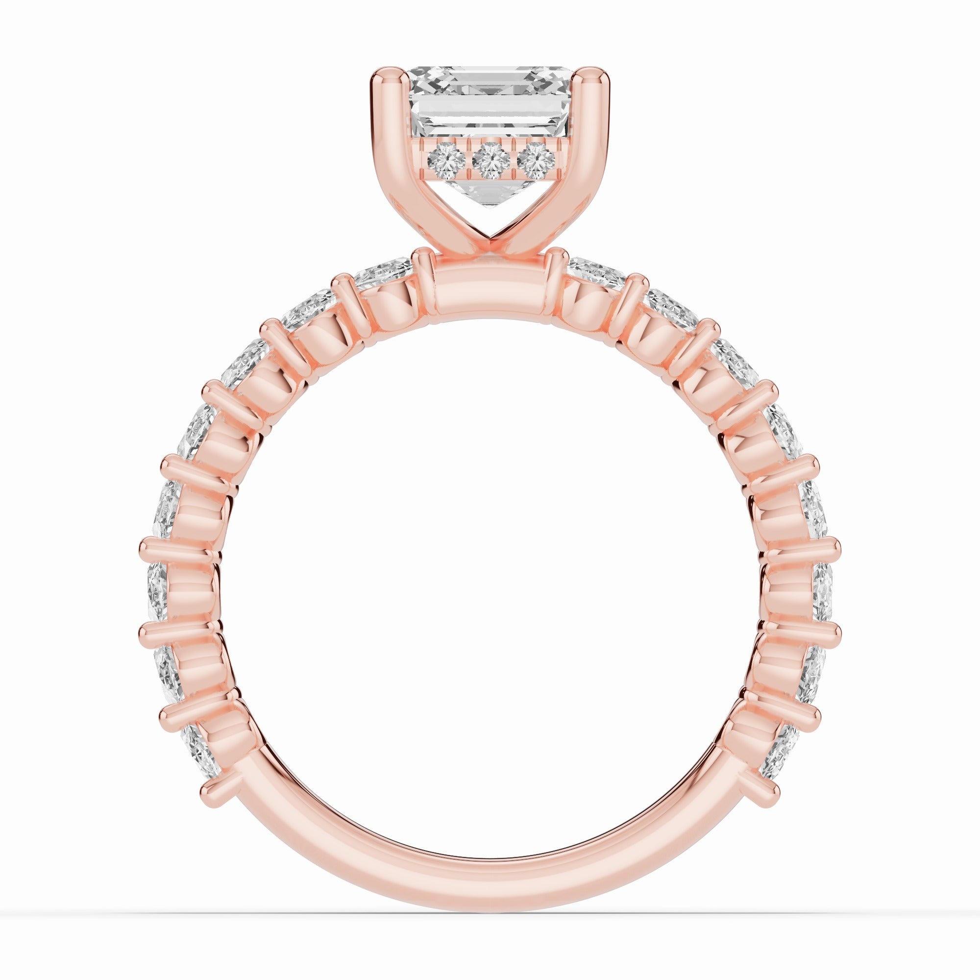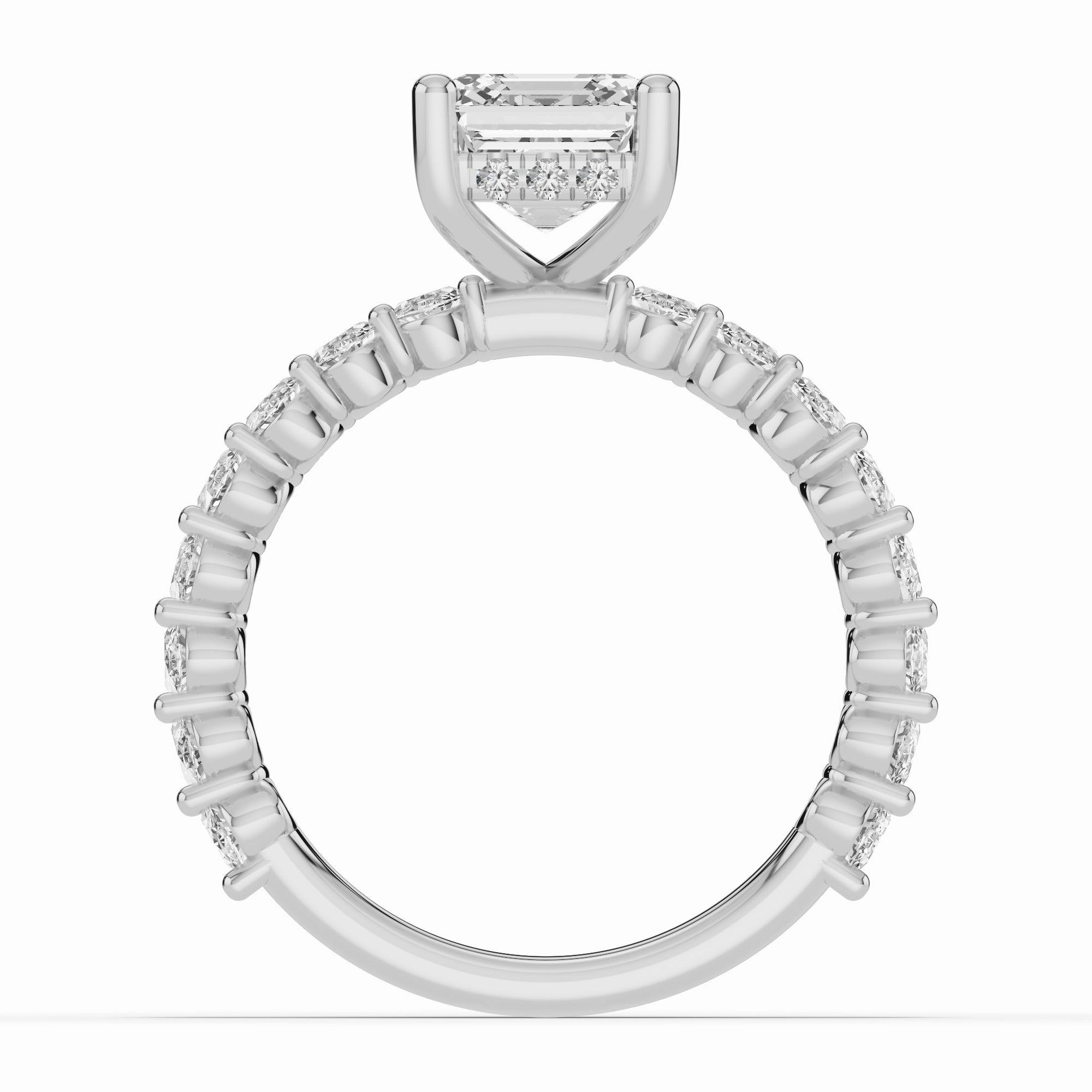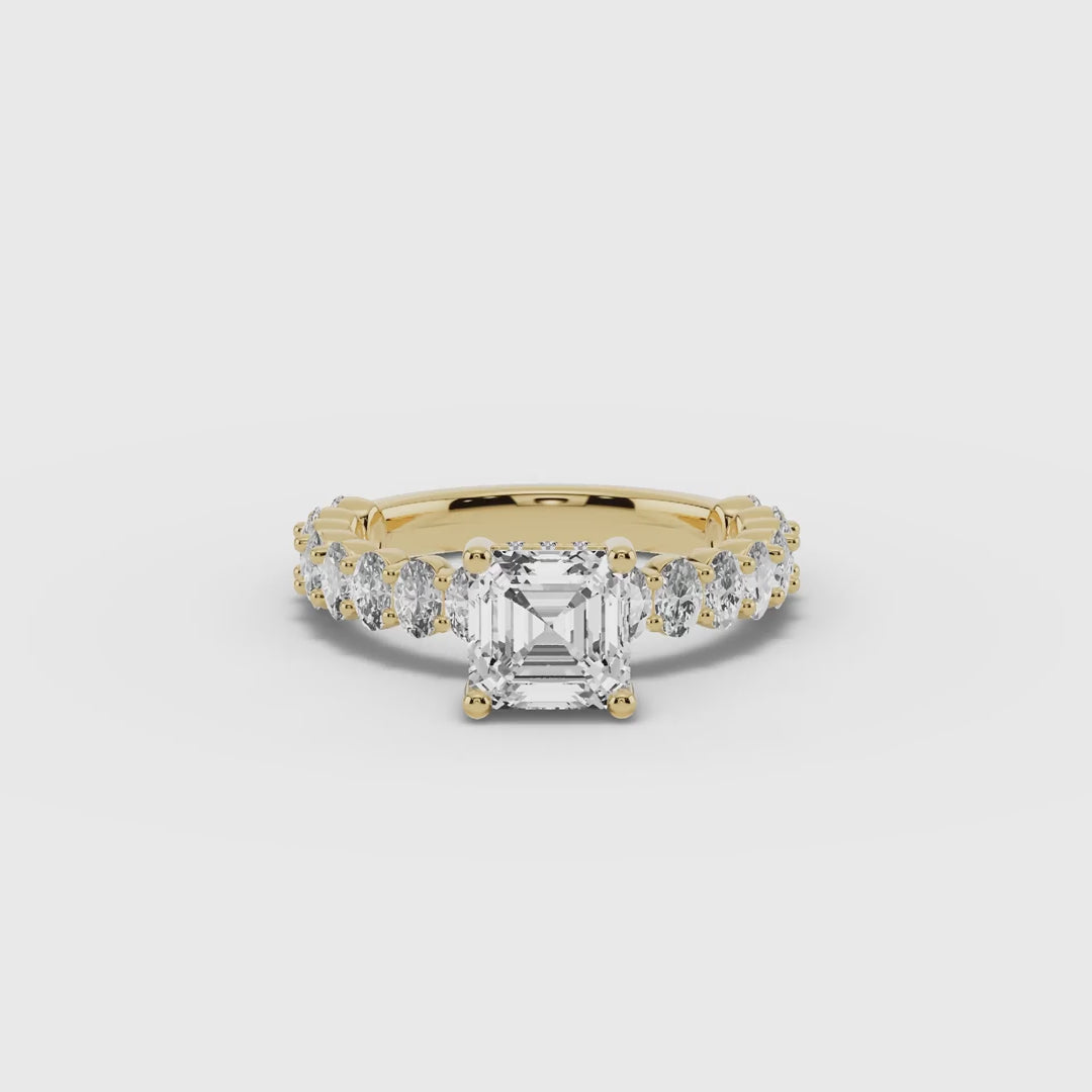 The Aurielle Crown Engagement Ring is a masterpiece of elegance and brilliance, designed for those who love a bold yet refined aesthetic. Its shank is set ¾ of the way around with 16 individually prong-set oval diamonds, creating a striking, elongated look that feels both big and elegant while allowing light to flow through every stone for maximum sparkle.