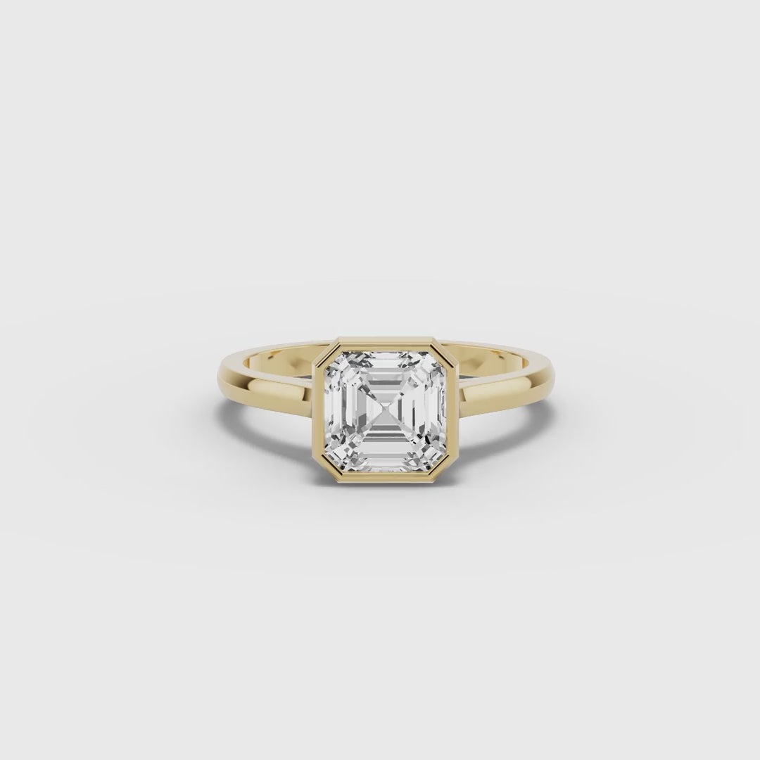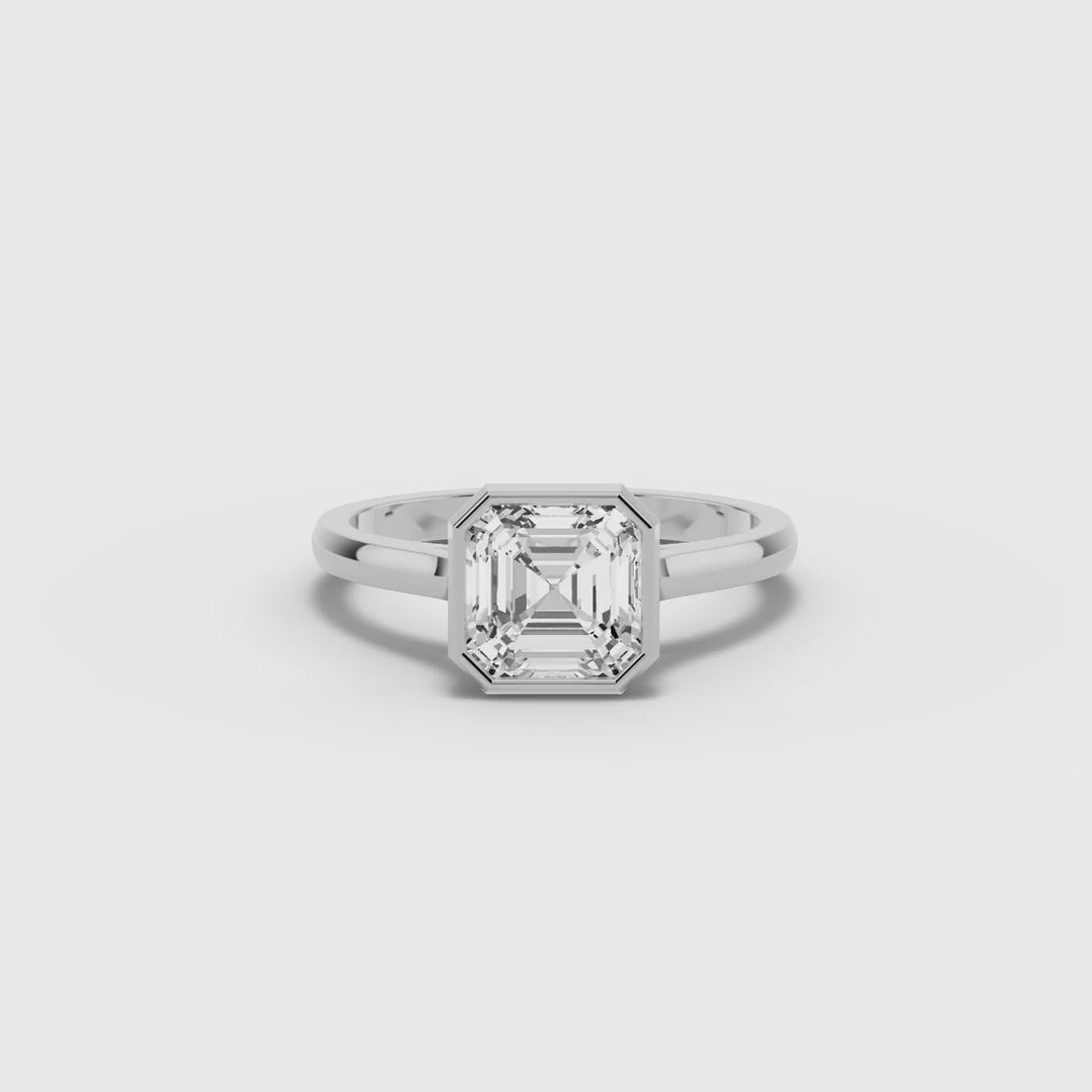 This design is perfect for someone who loves the refined simplicity of a bezel-set solitaire with a modern, luminous twist, and it stacks beautifully with wedding bands for a perfectly tailored set.