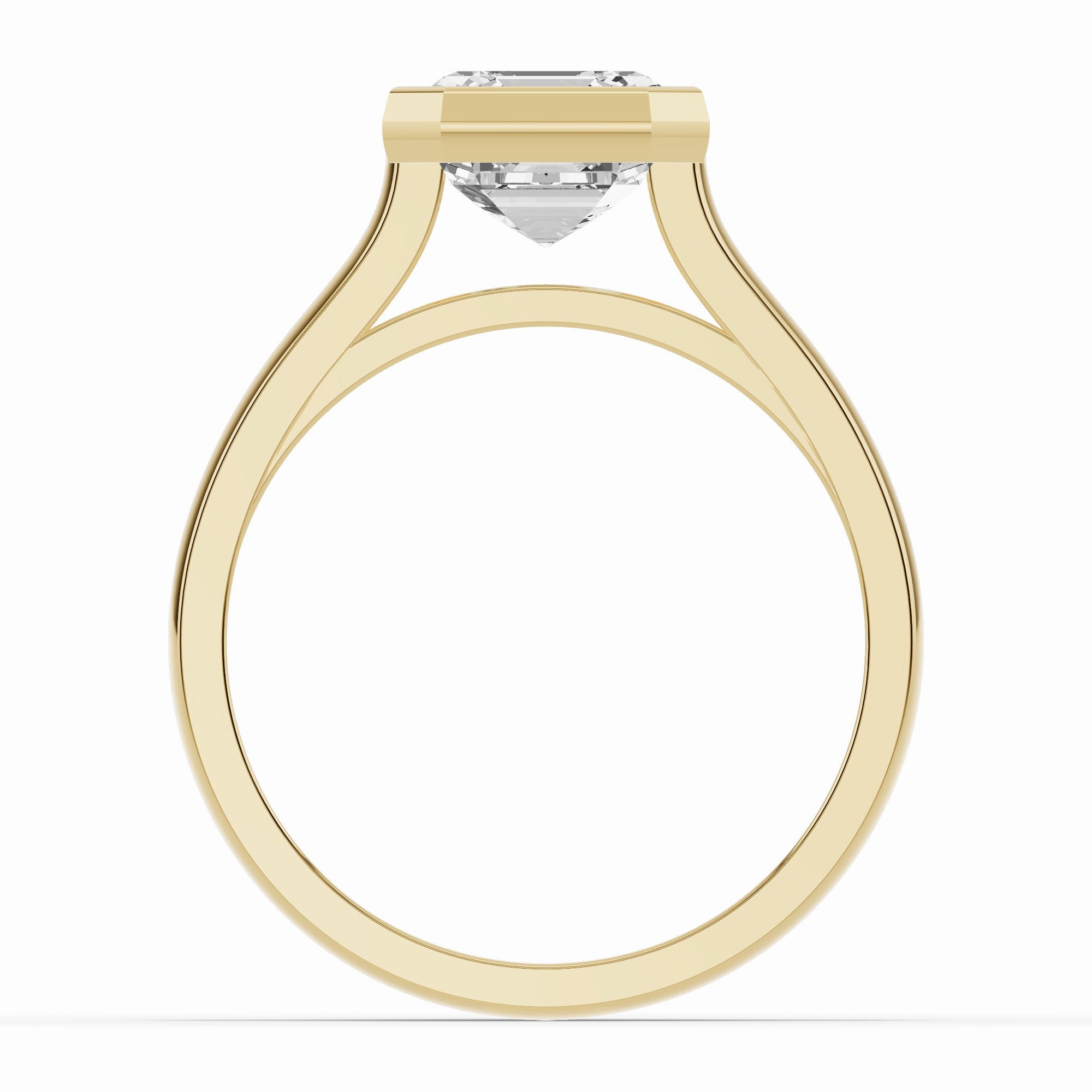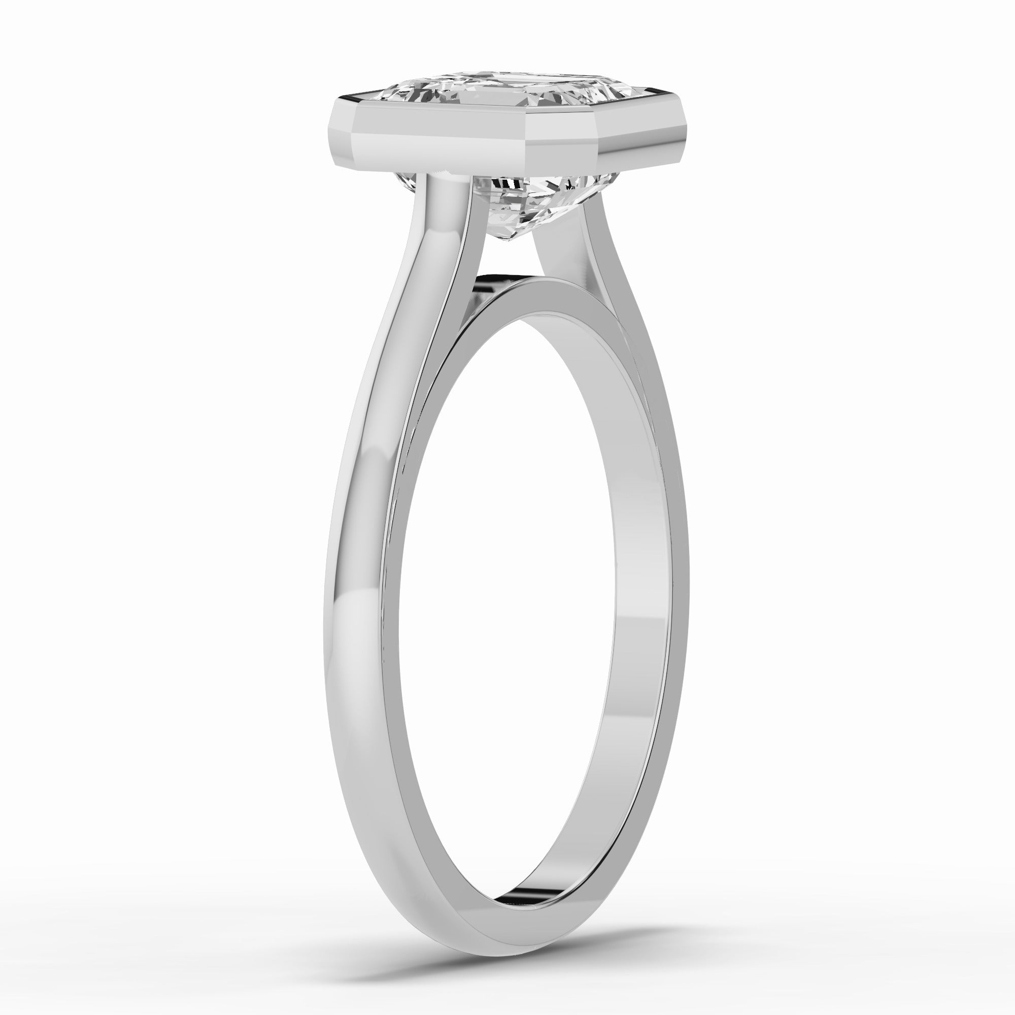 The Lumière Bezel Solitaire is a celebration of modern minimalism and radiant light. This elegant design features a sleek, polished band that flows seamlessly into a contemporary bezel setting, framing the center stone with smooth, protective edges while allowing maximum brilliance from every angle.