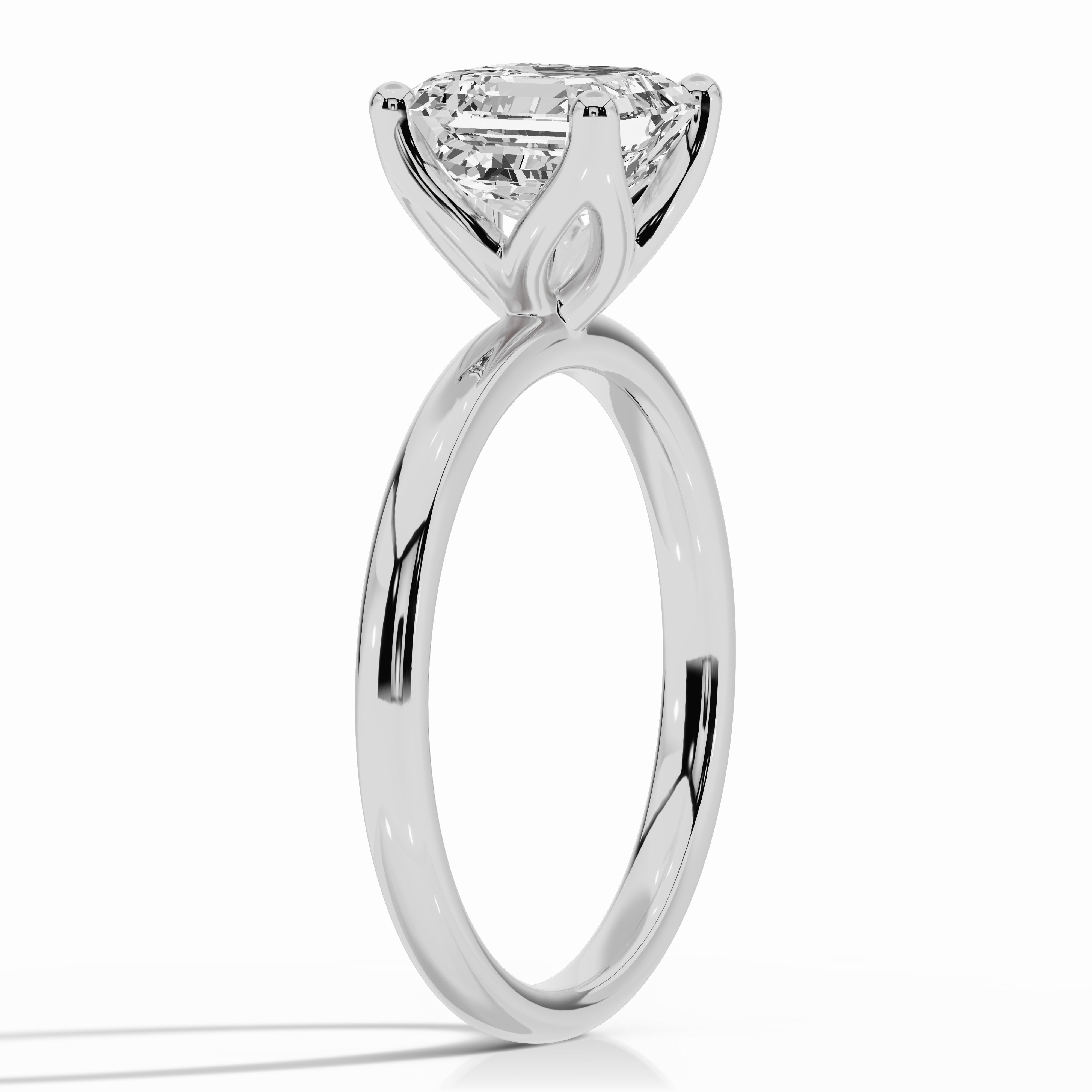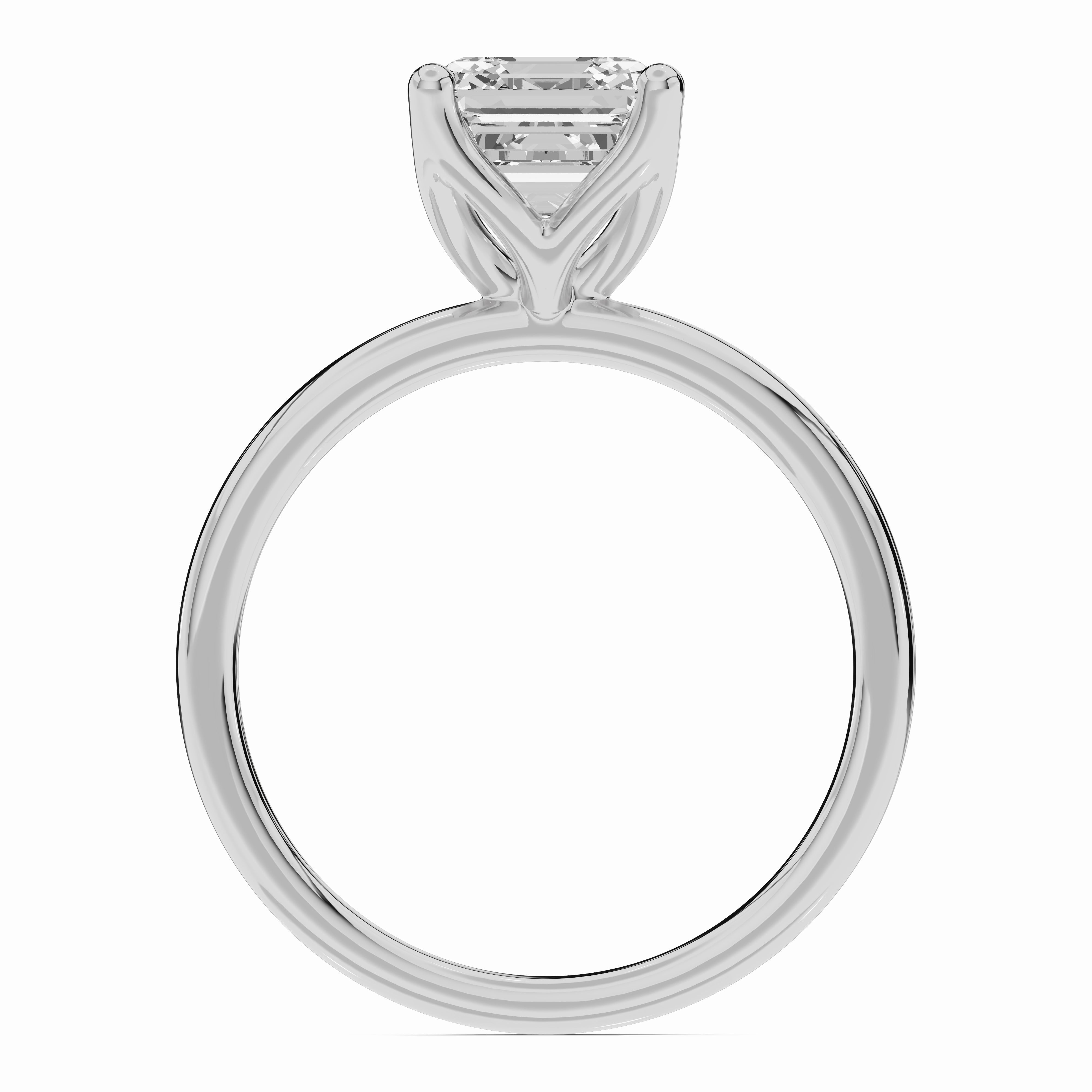 The Lustre Solitaire can be customized with center stones ranging from 1 to 5 carats, each accompanied by an IGI certificate for quality assurance. Its sophisticated silhouette makes it a perfect match for stacking with wedding bands or wearing alone as a bold, elegant statement.