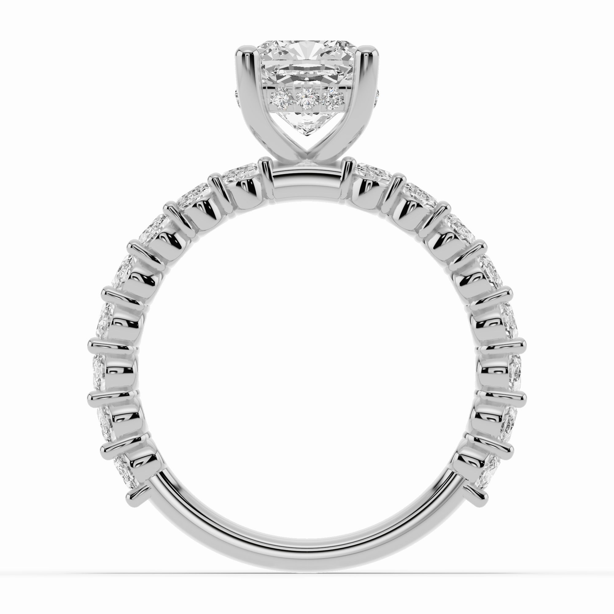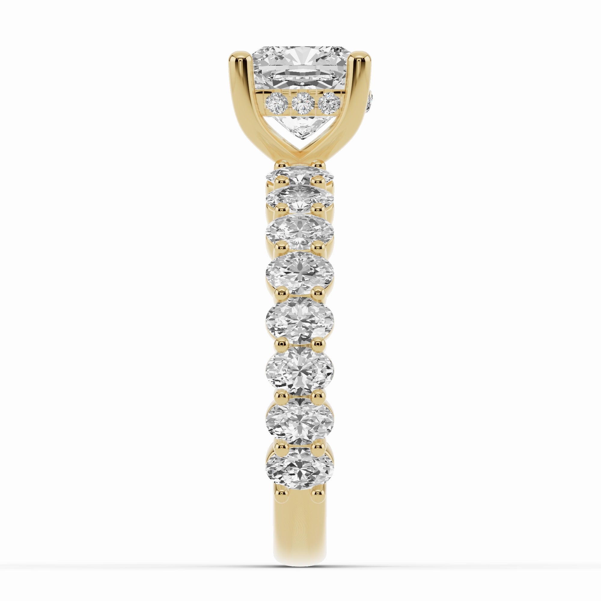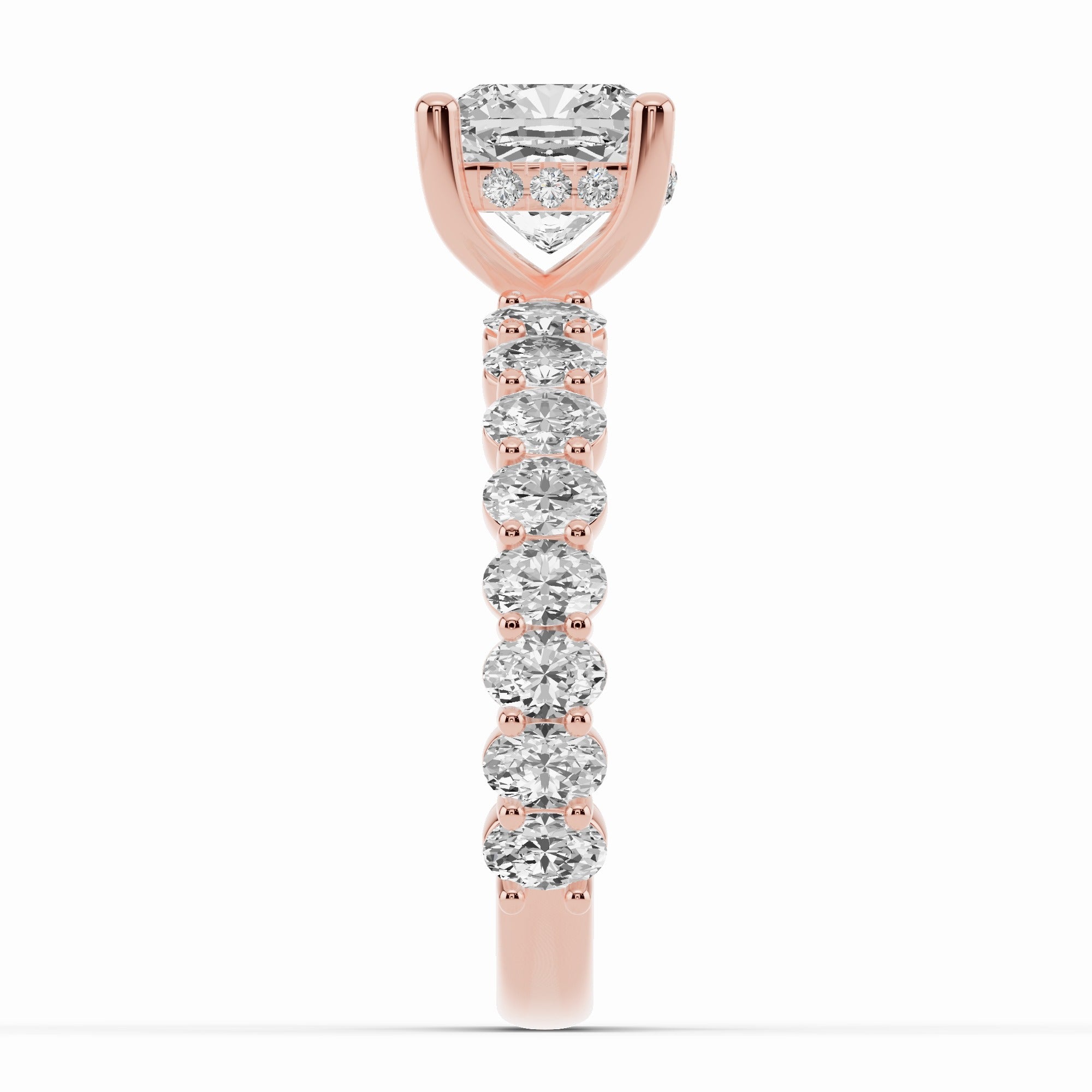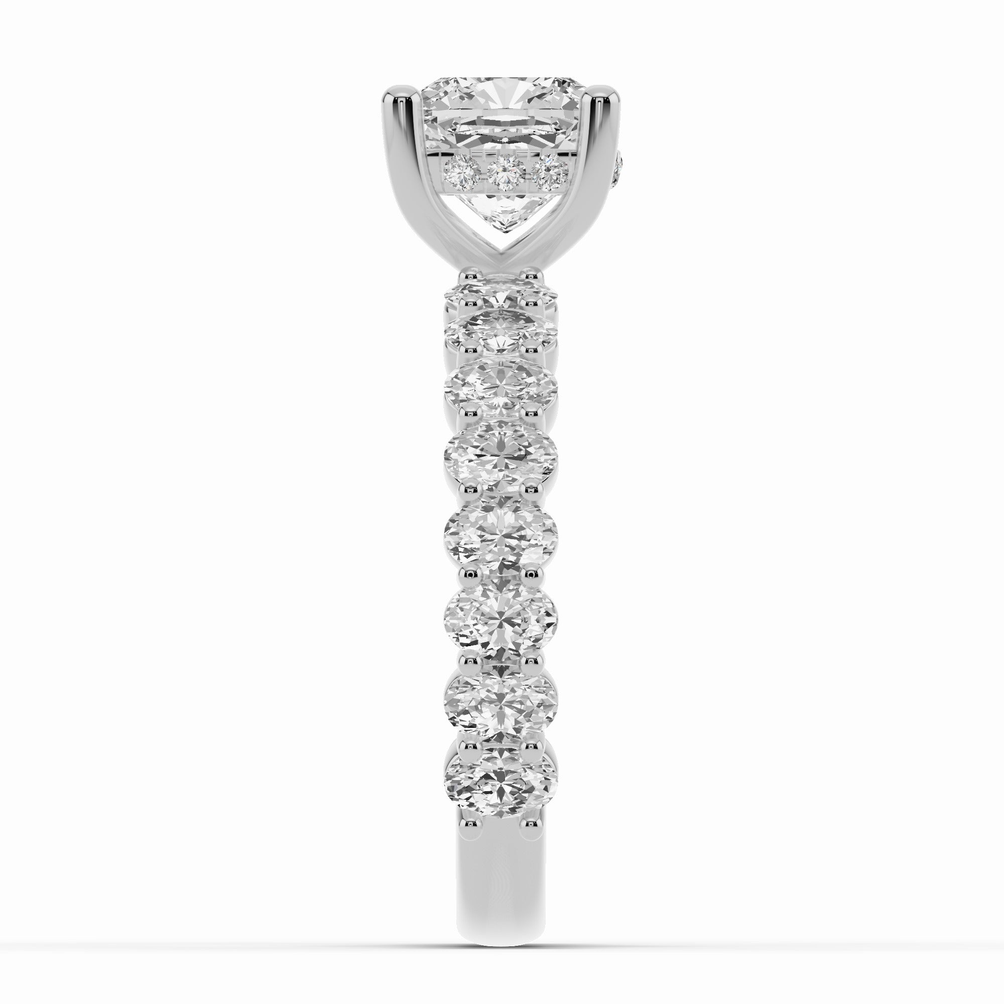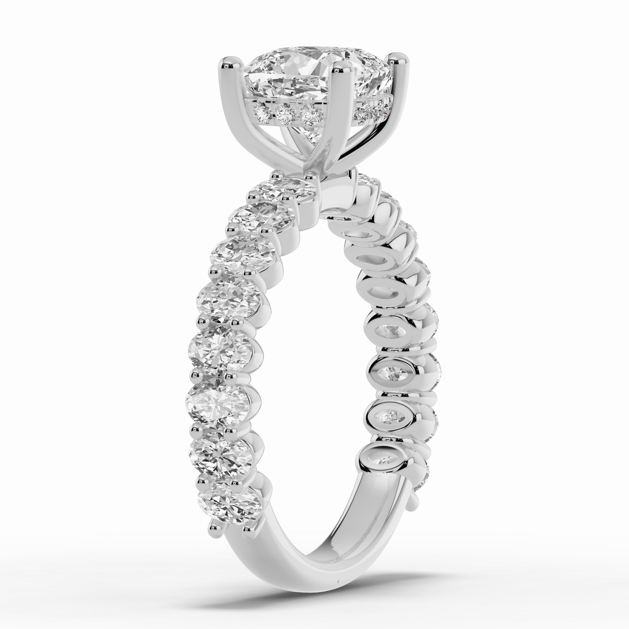 The Aurielle Crown Engagement Ring is a masterpiece of elegance and brilliance, designed for those who love a bold yet refined aesthetic. Its shank is set ¾ of the way around with 16 individually prong-set oval diamonds, creating a striking, elongated look that feels both big and elegant while allowing light to flow through every stone for maximum sparkle.