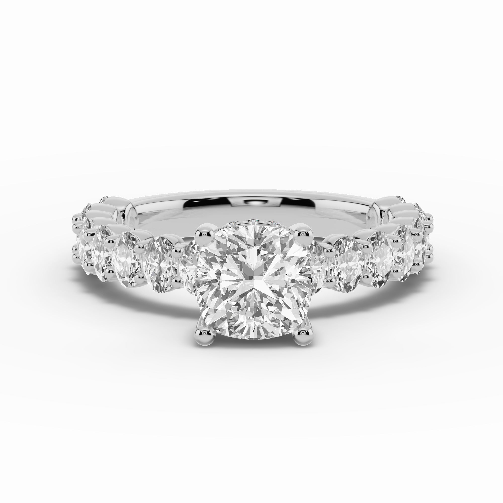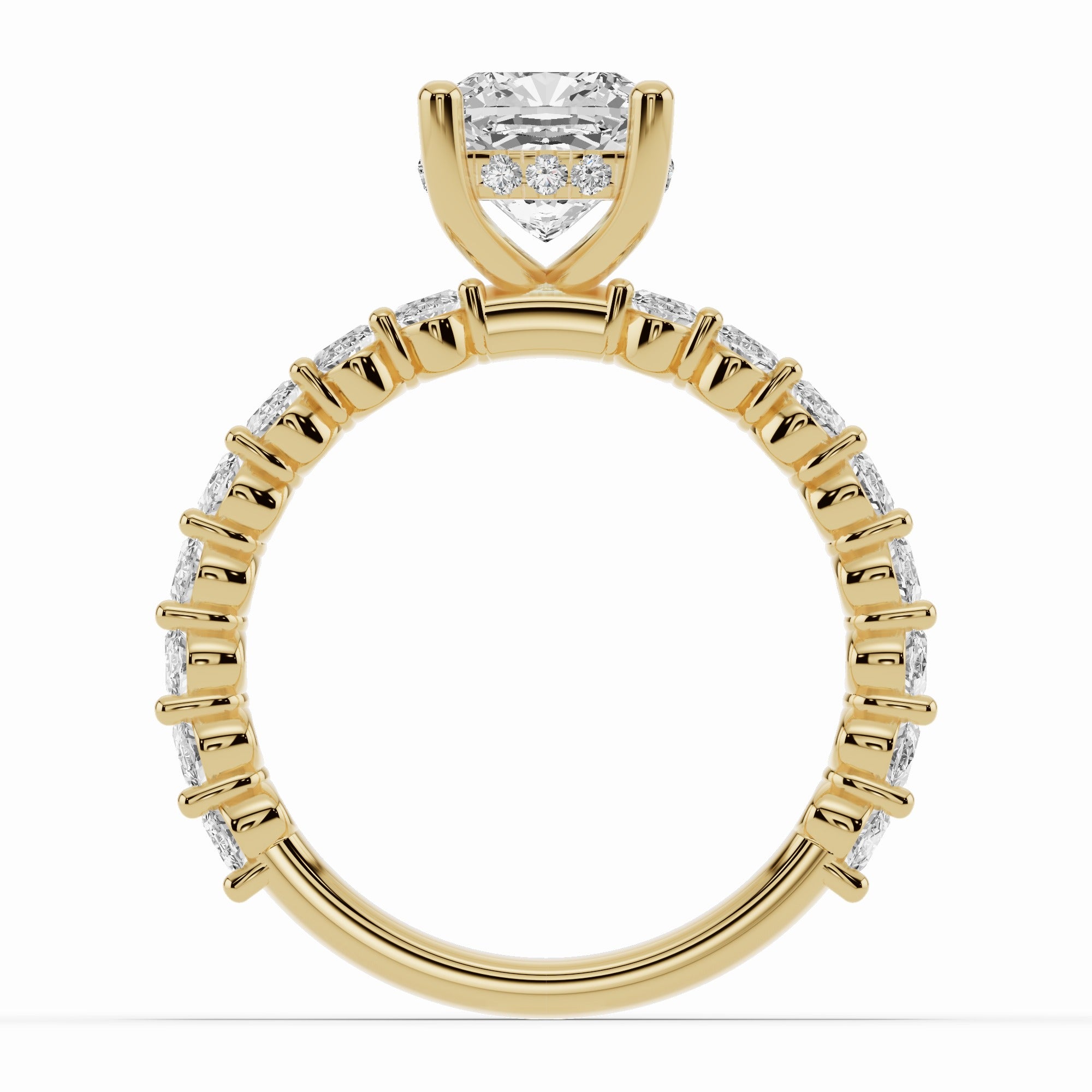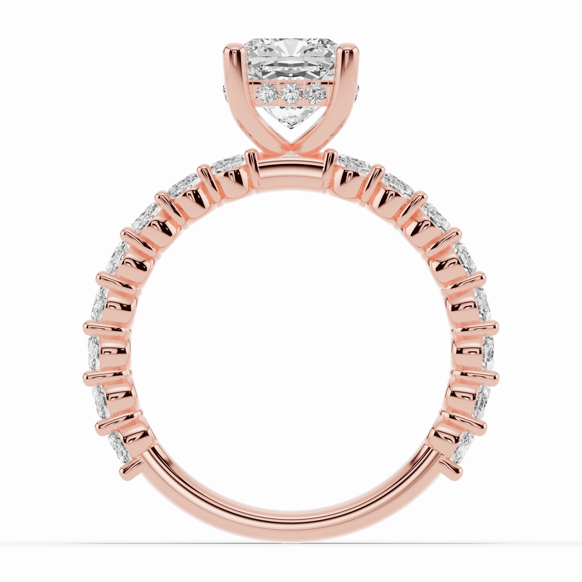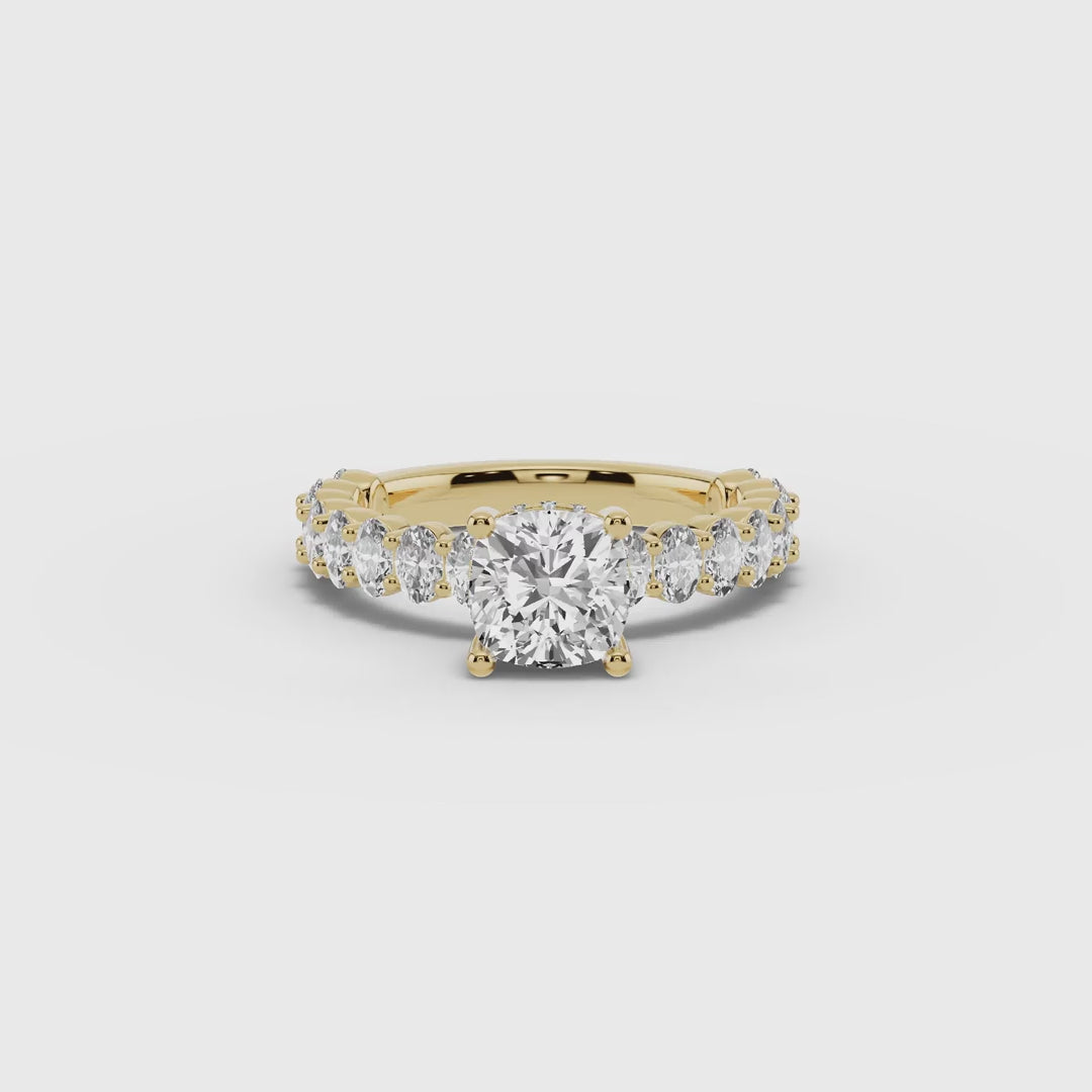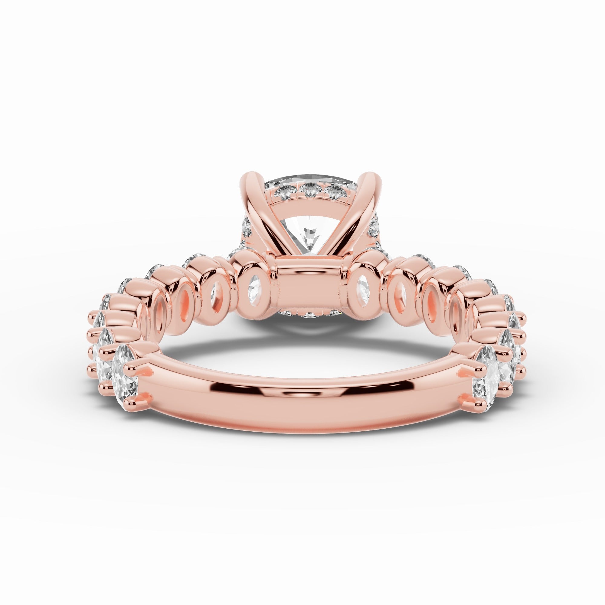 The Aurielle Crown Engagement Ring is a masterpiece of elegance and brilliance, designed for those who love a bold yet refined aesthetic. Its shank is set ¾ of the way around with 16 individually prong-set oval diamonds, creating a striking, elongated look that feels both big and elegant while allowing light to flow through every stone for maximum sparkle.