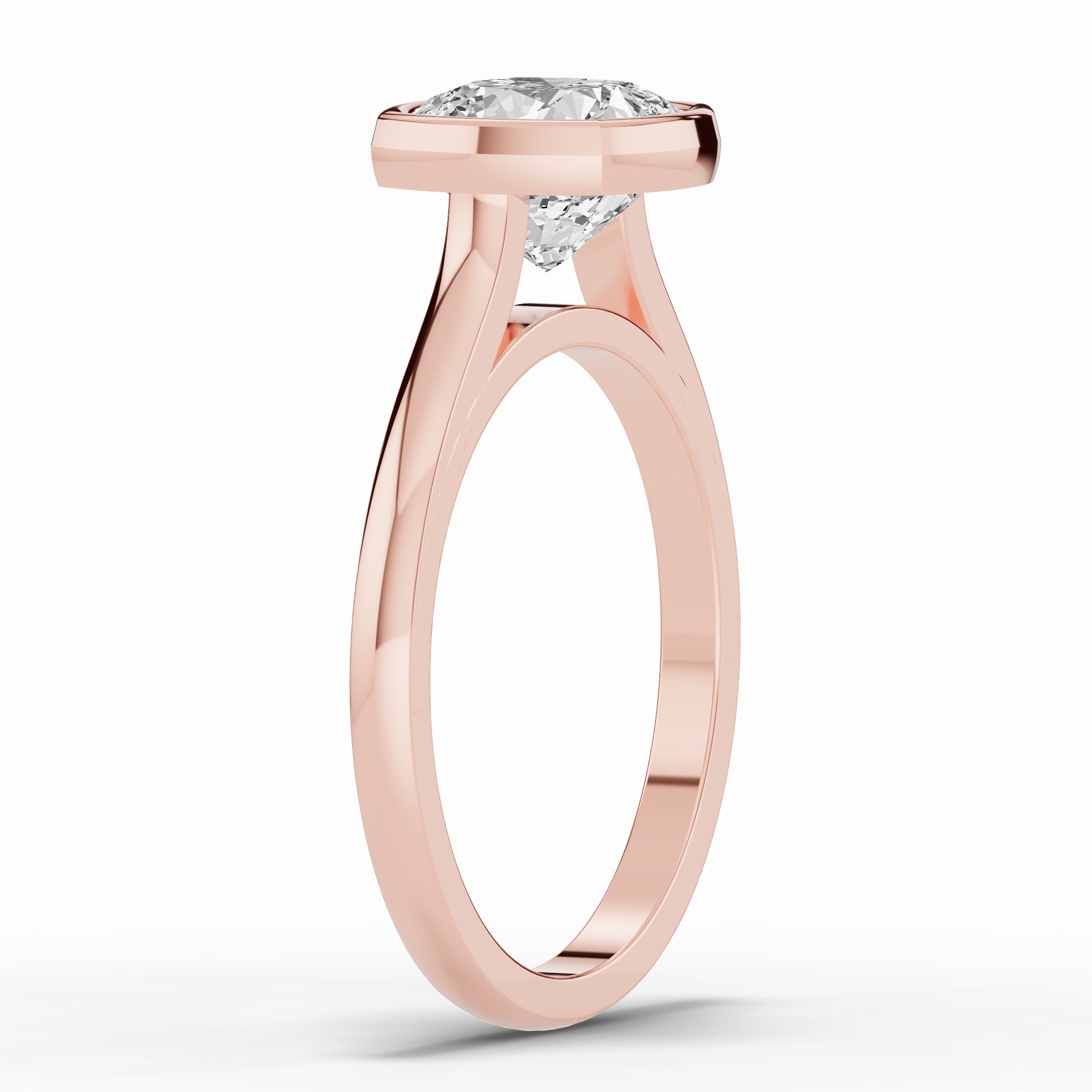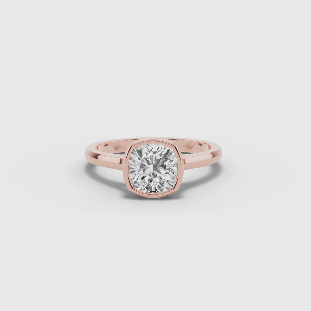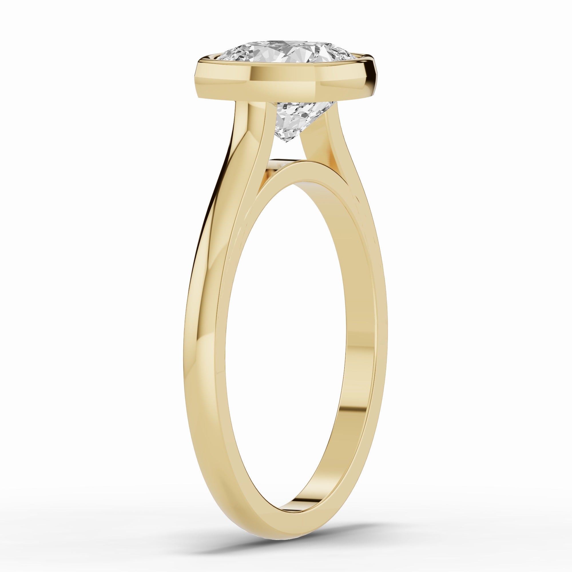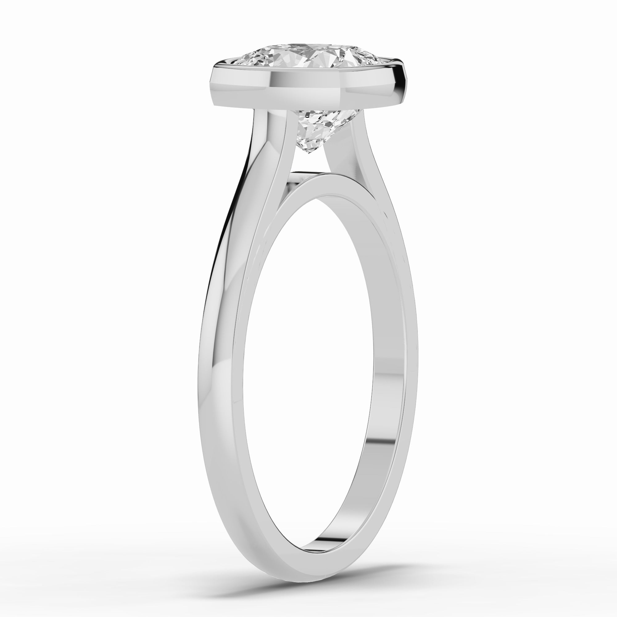 The Lumière Bezel Solitaire is a celebration of modern minimalism and radiant light. This elegant design features a sleek, polished band that flows seamlessly into a contemporary bezel setting, framing the center stone with smooth, protective edges while allowing maximum brilliance from every angle.