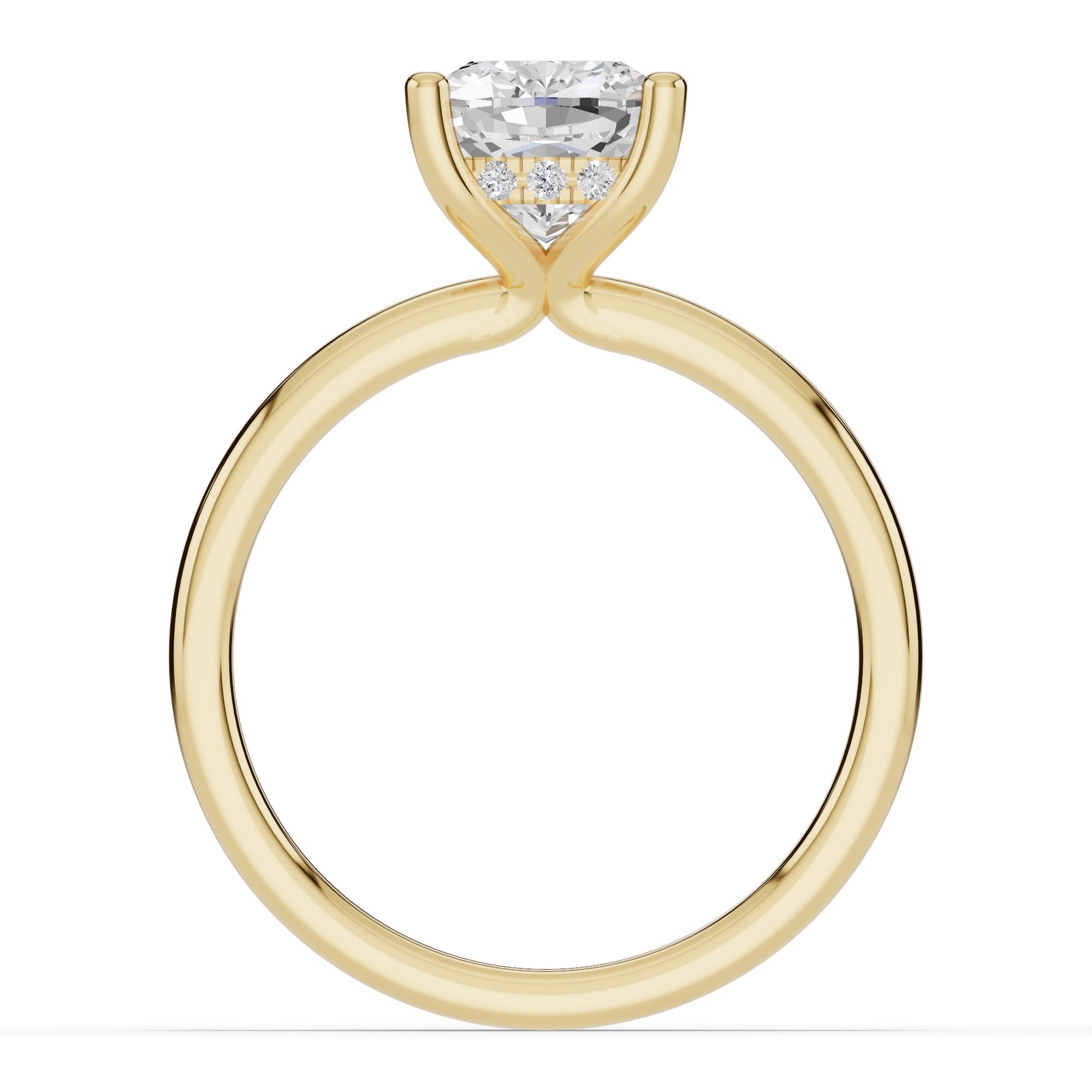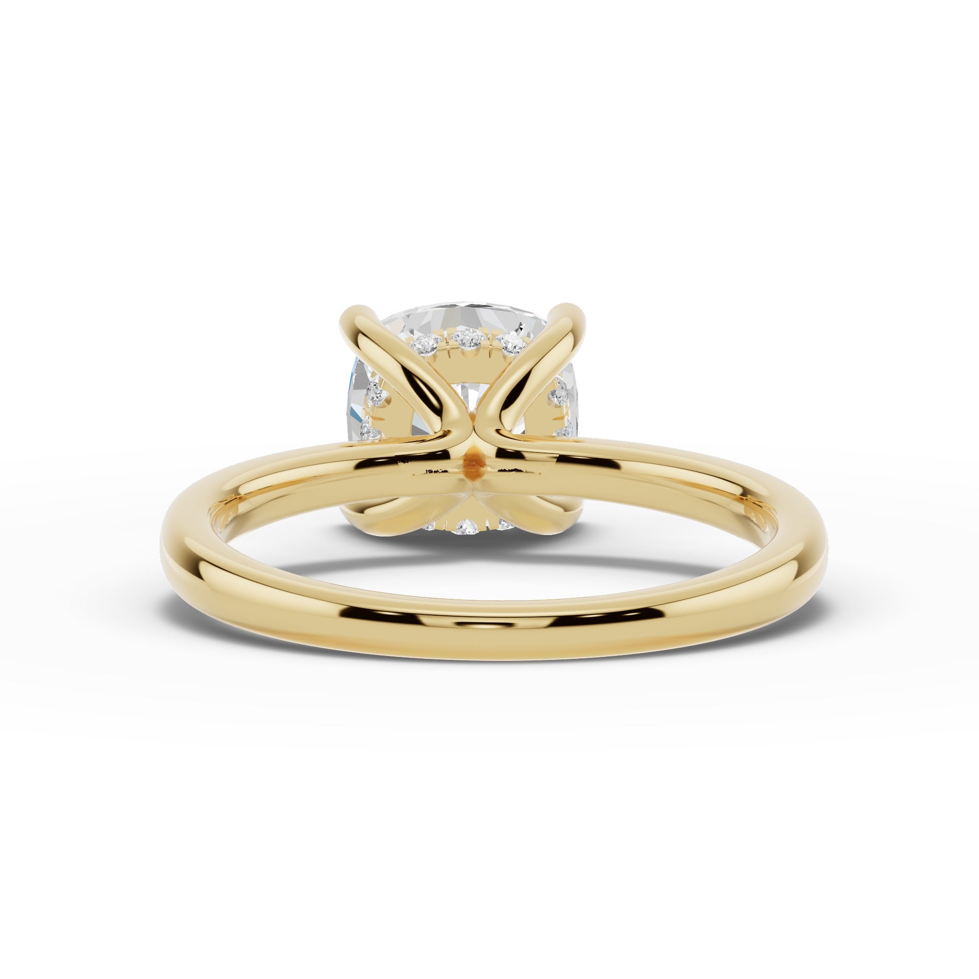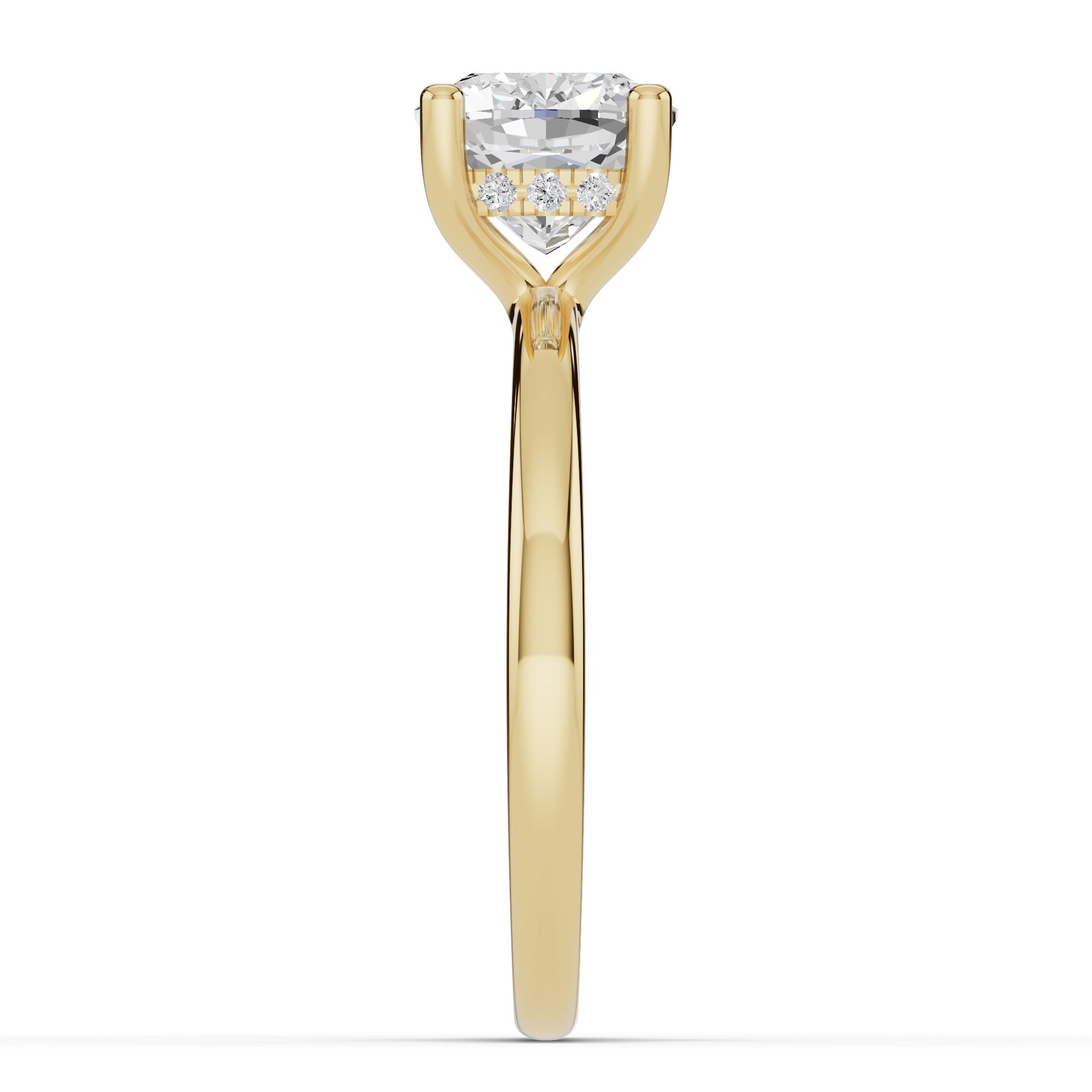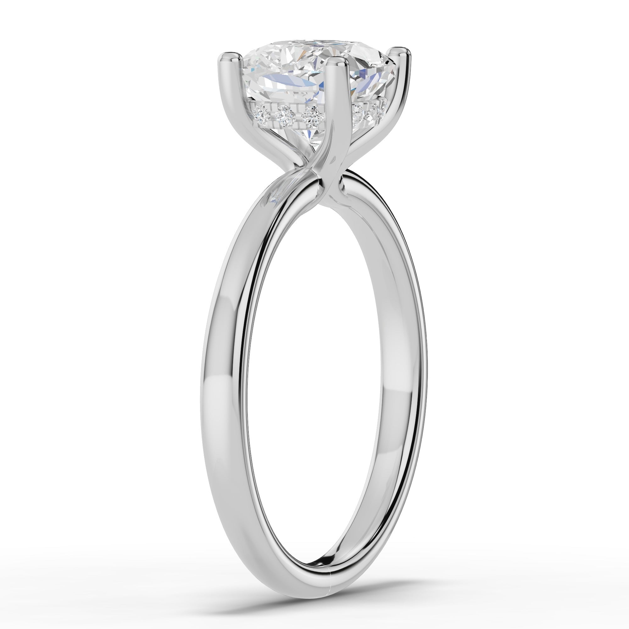 The true magic lies beneath the stone — a hidden halo of pavé-set diamonds encircles the gallery, catching the light with every movement and adding a subtle, secret sparkle for the wearer to enjoy.