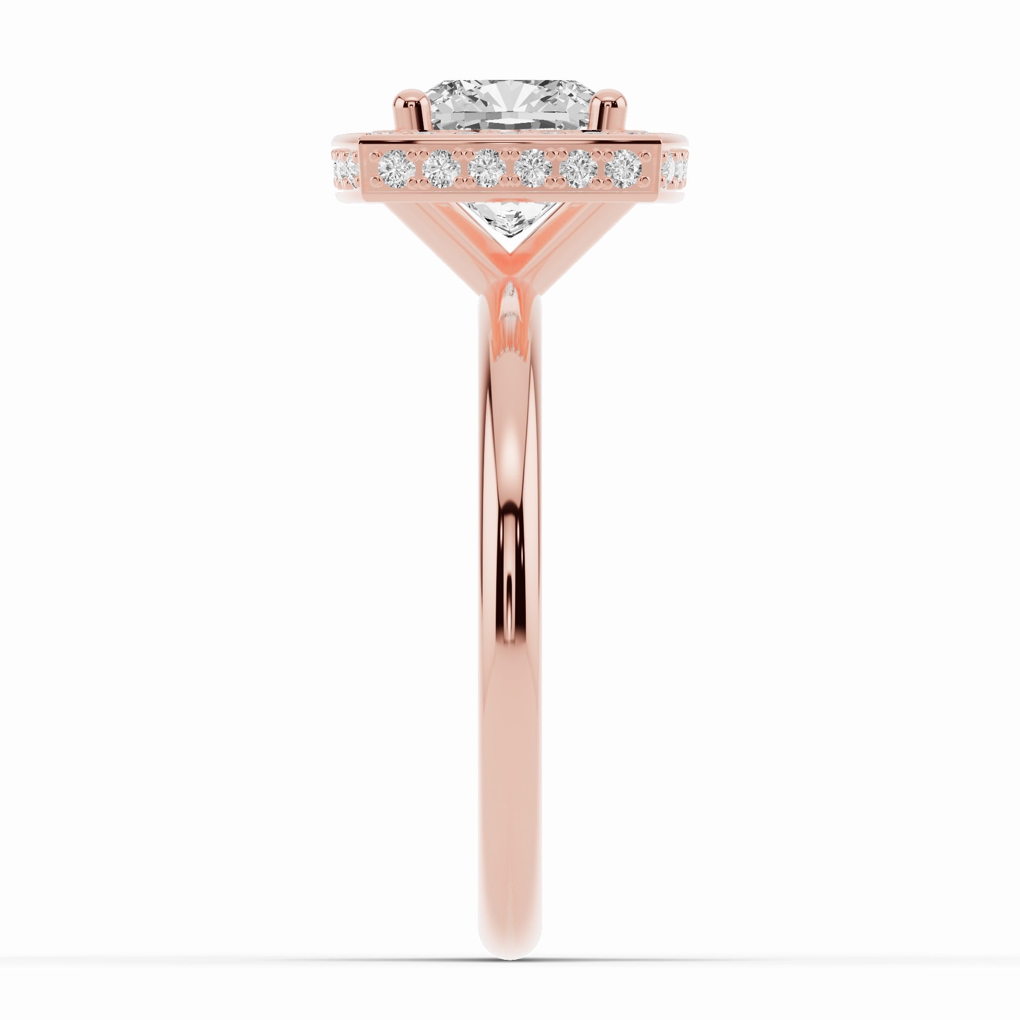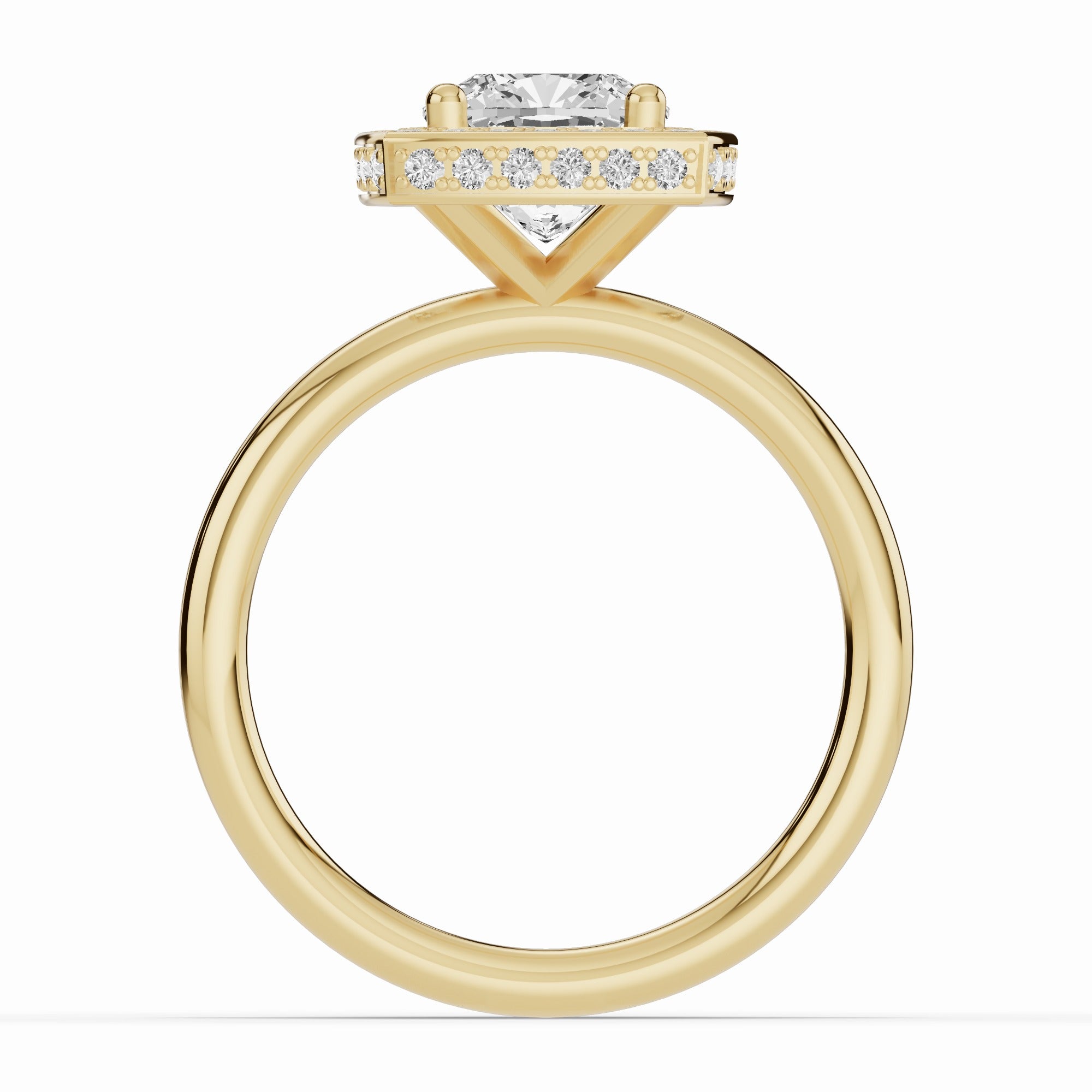 Handcrafted in your choice of 14K or 18K gold — available in yellow, white, or rose — or luxurious platinum, the Nova Halo blends contemporary design with timeless craftsmanship. The open cross-under gallery creates an airy architecture beneath the center stone, allowing maximum light to flow through while maintaining a sleek, minimal profile.