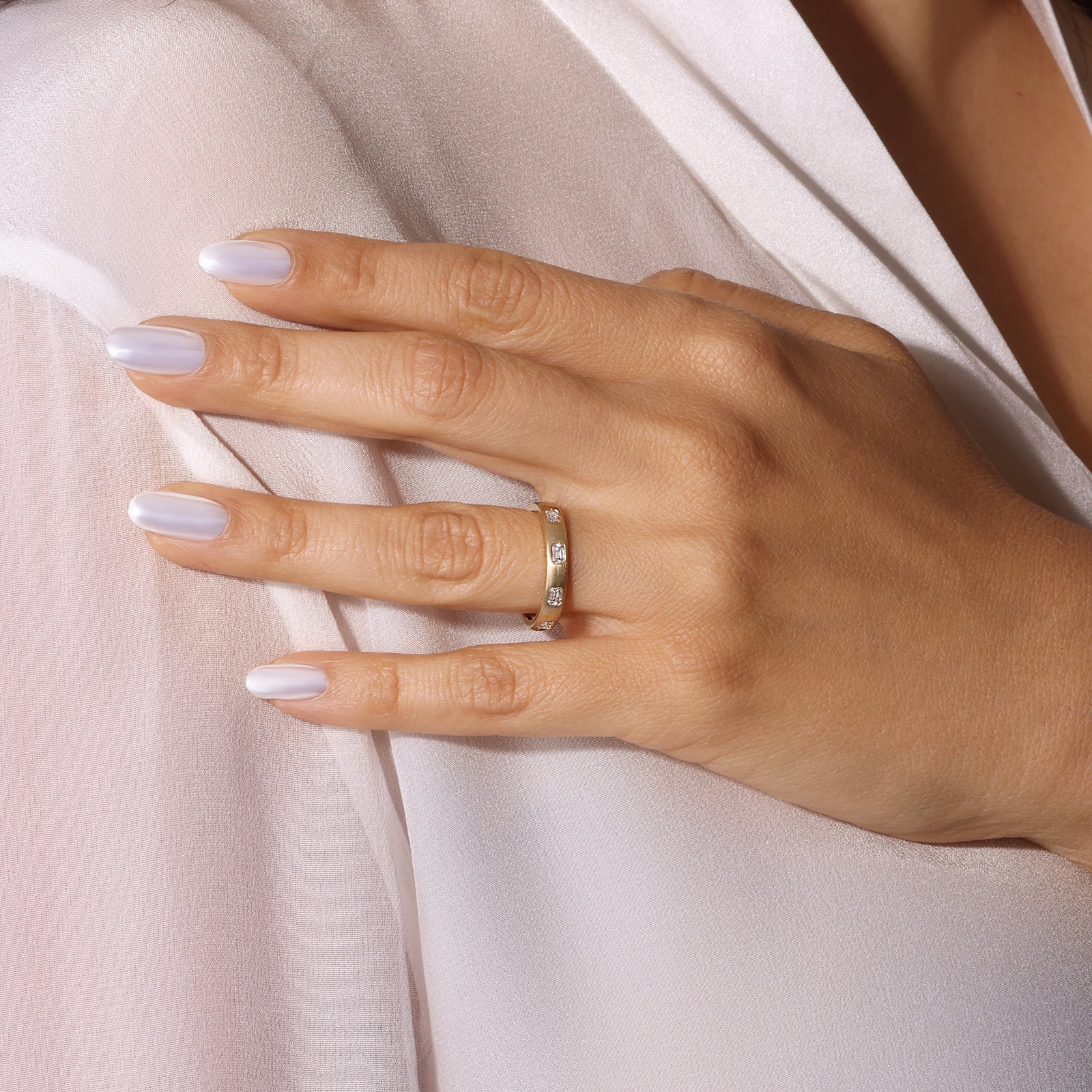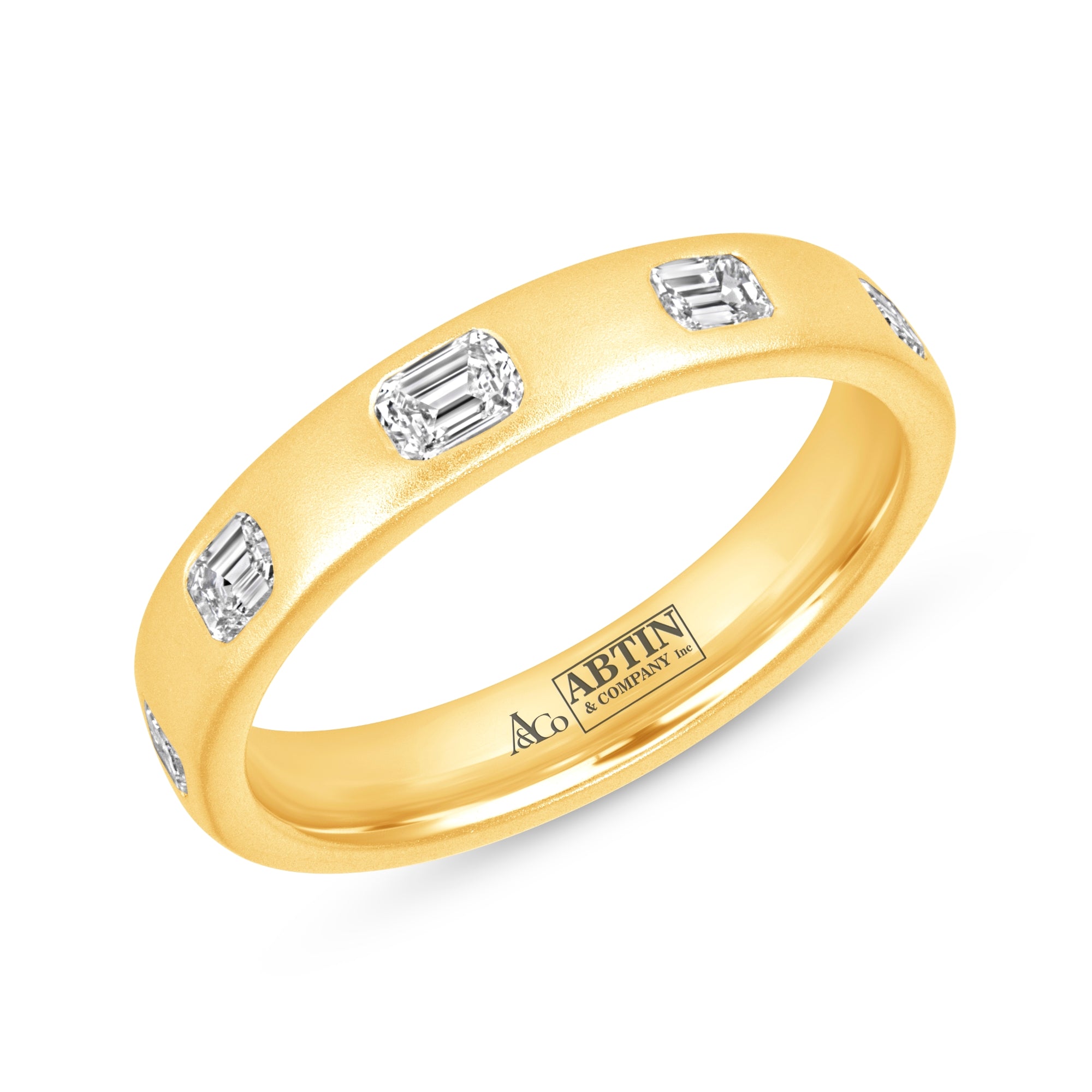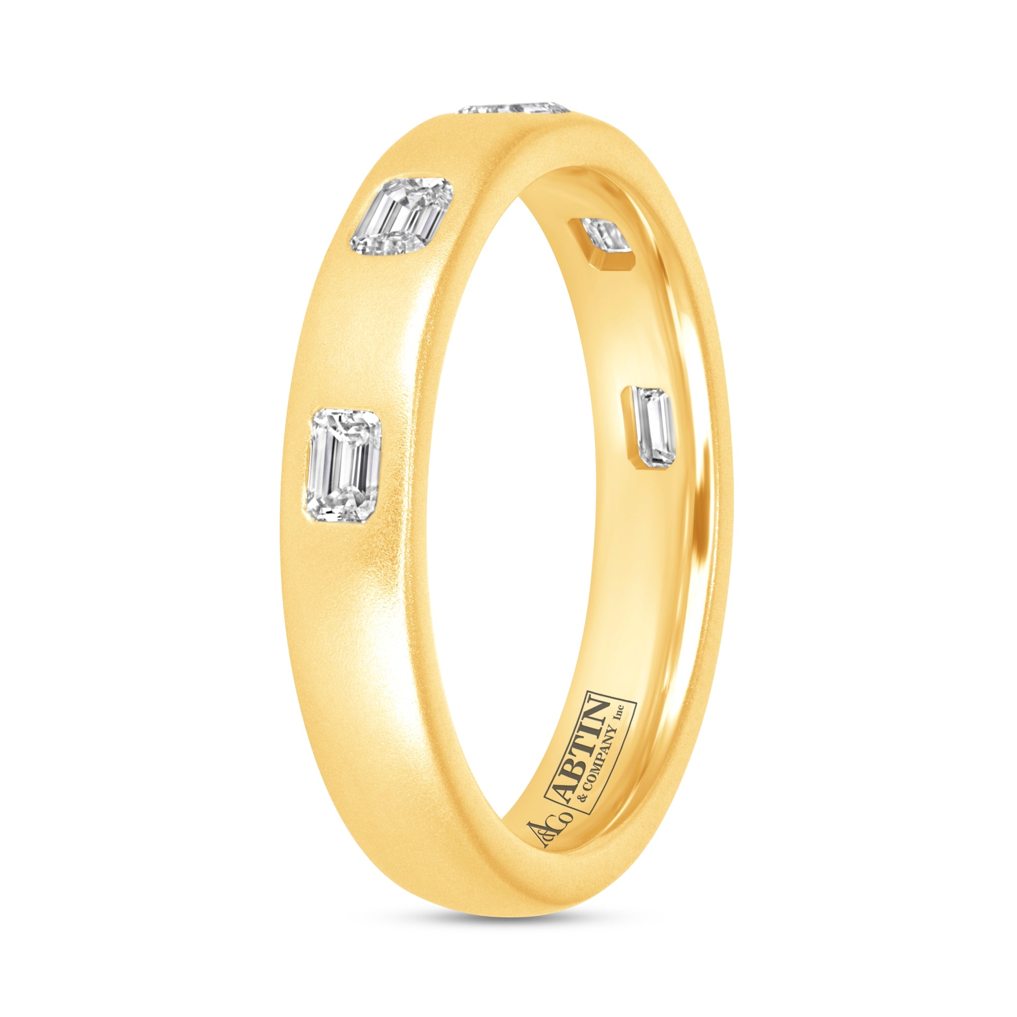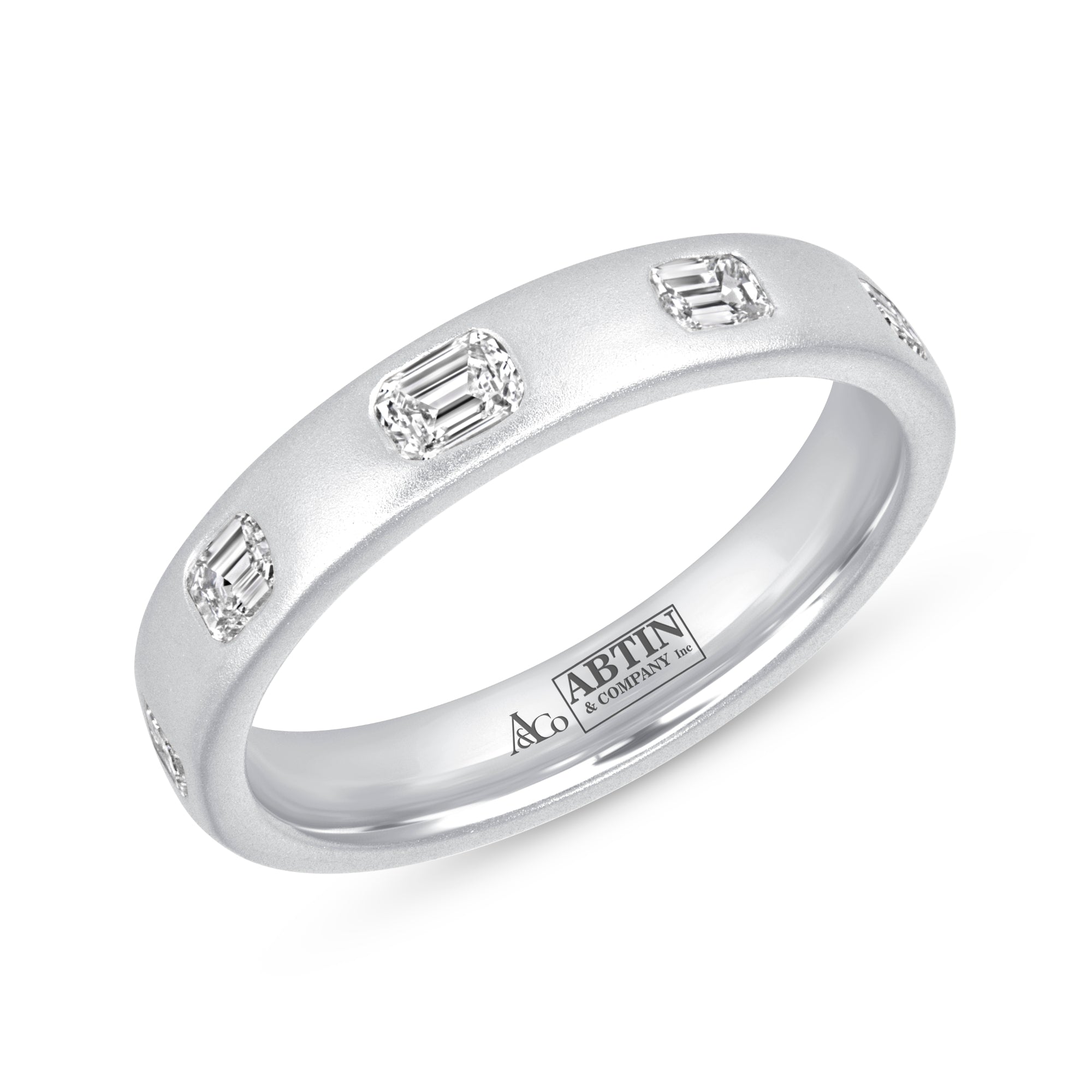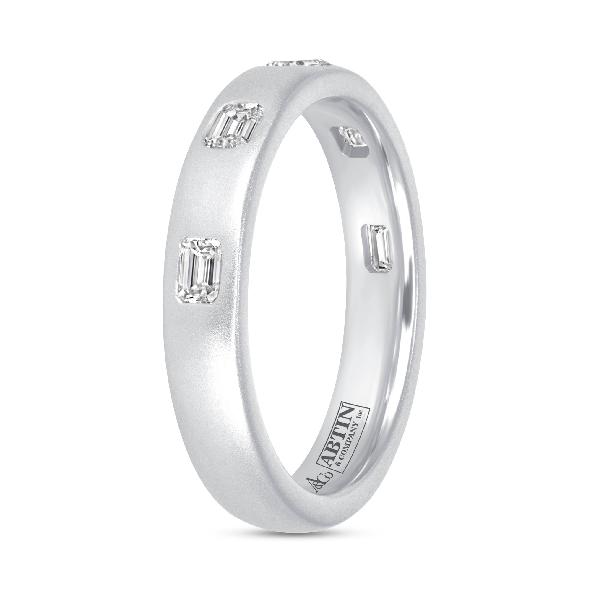 Dome Dot Flush Set Emerald Cut Diamond Ring