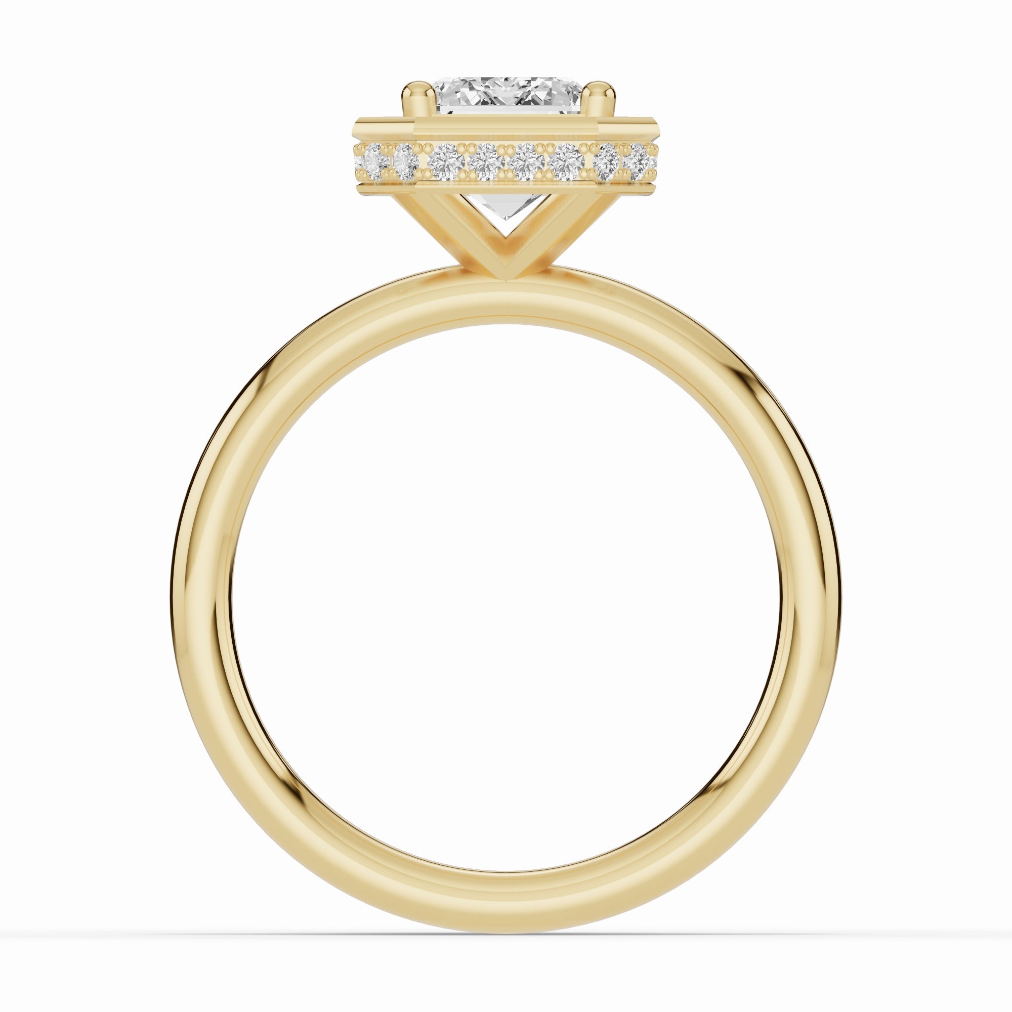 Handcrafted in your choice of 14K or 18K gold — available in yellow, white, or rose — or luxurious platinum, the Nova Halo blends contemporary design with timeless craftsmanship. The open cross-under gallery creates an airy architecture beneath the center stone, allowing maximum light to flow through while maintaining a sleek, minimal profile.