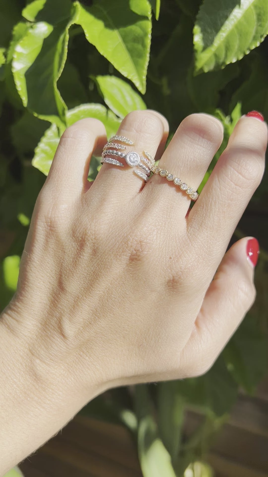 14k Gold Migrain Bezel Infinity Diamond Wedding Band Stackable Ring