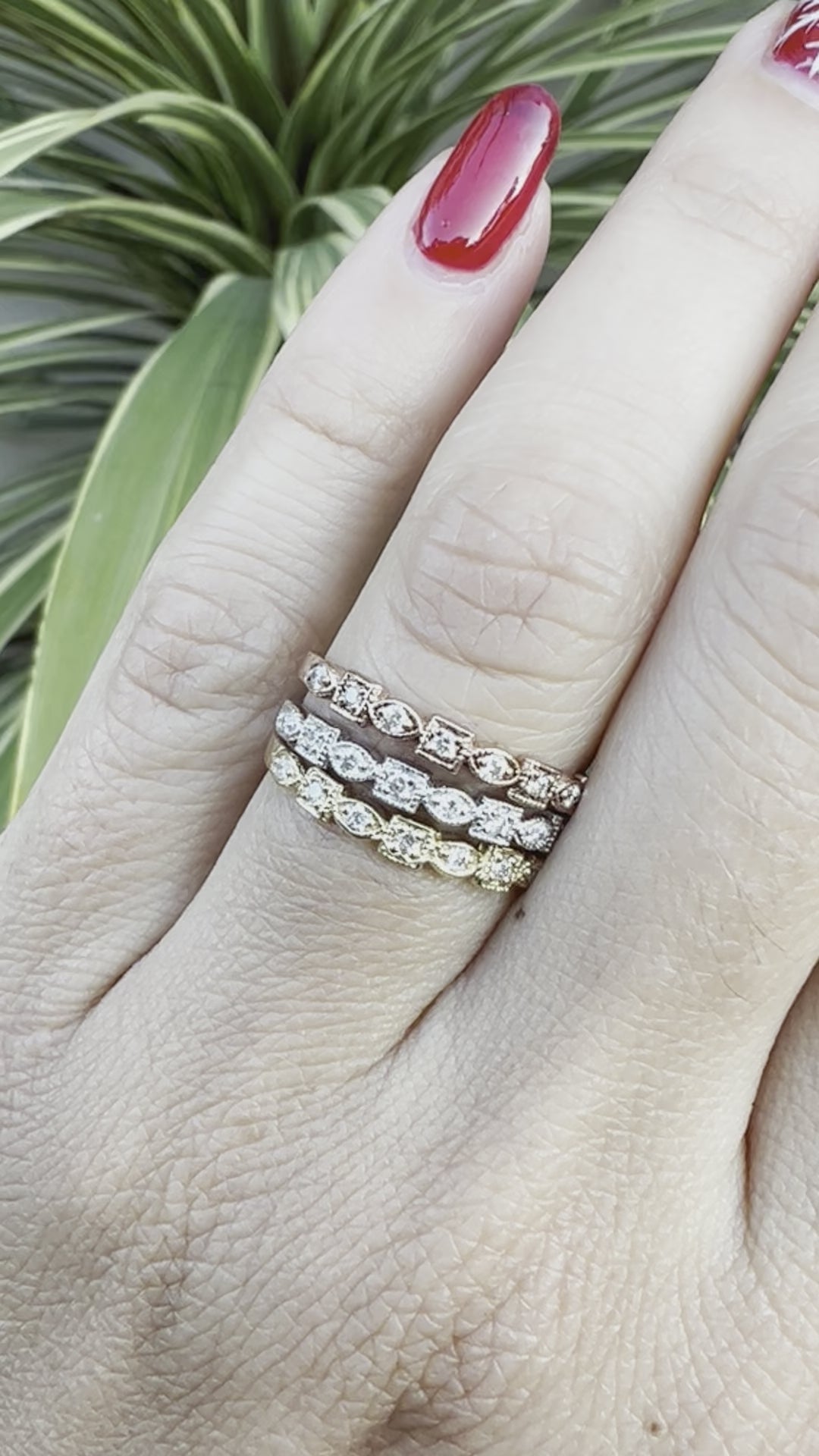 14k Gold Diamond Art Deco Square Marquise Stackable Ring/Wedding Band