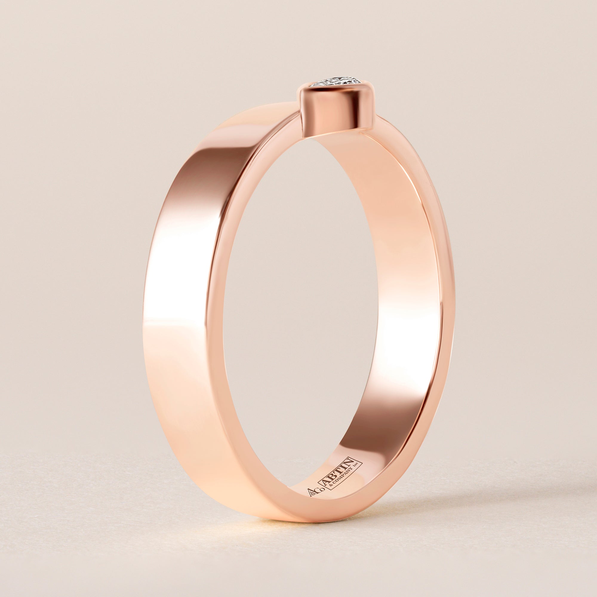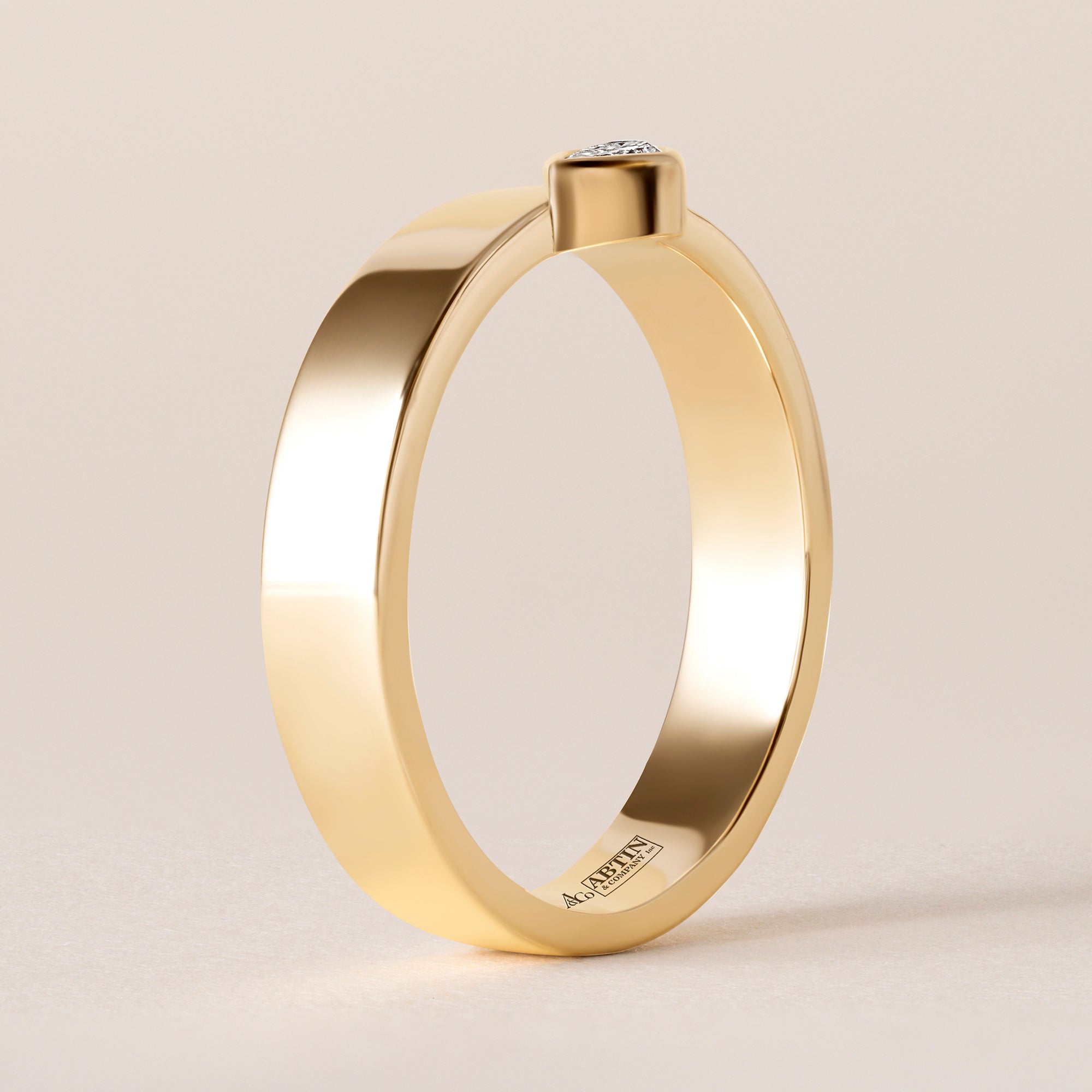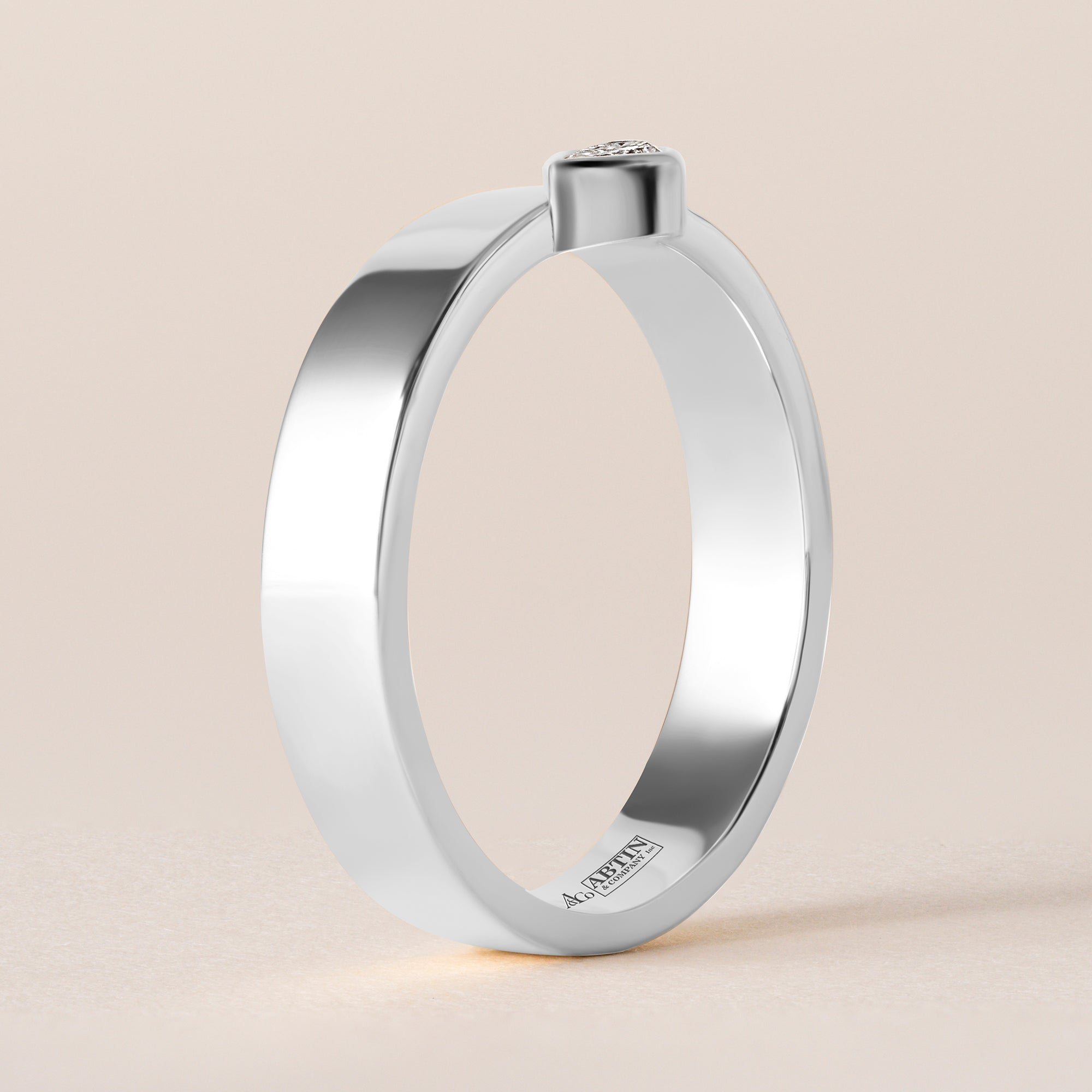 Bold in its simplicity, the Centerline Edge ring redefines balance with a subtle shift. Featuring a single diamond set just off-center, this modern design plays with symmetry while maintaining a clean, architectural feel. Its streamlined silhouette makes it effortlessly wearable—whether worn solo as a statement or stacked to elevate your everyday look. Designed for those who favor quiet confidence, refined edges, and a style that lives beyond trends.