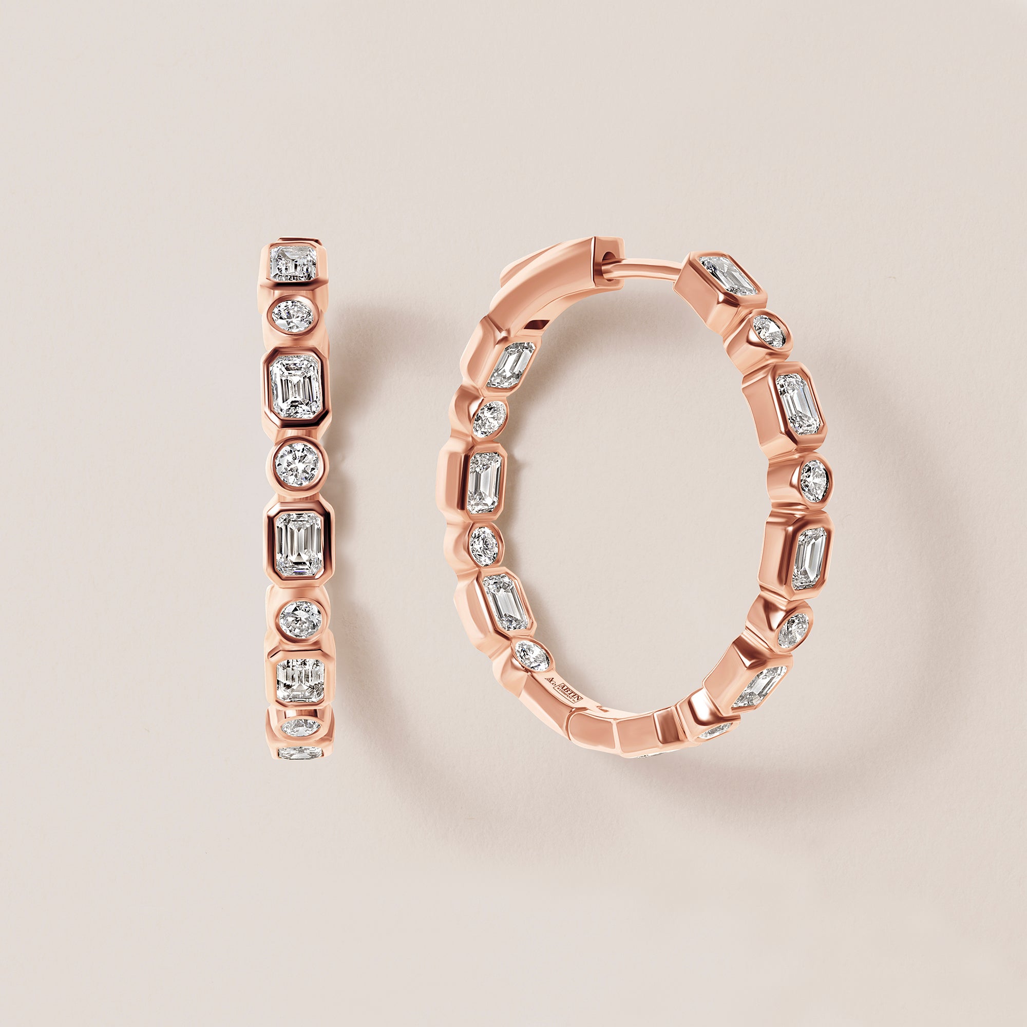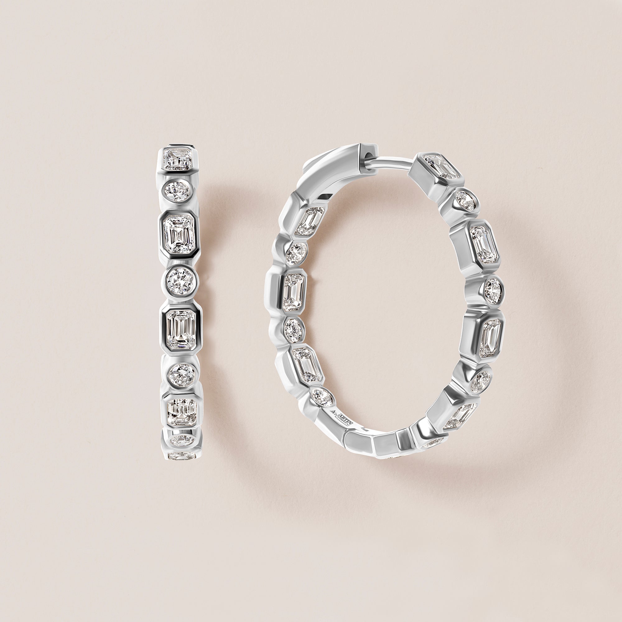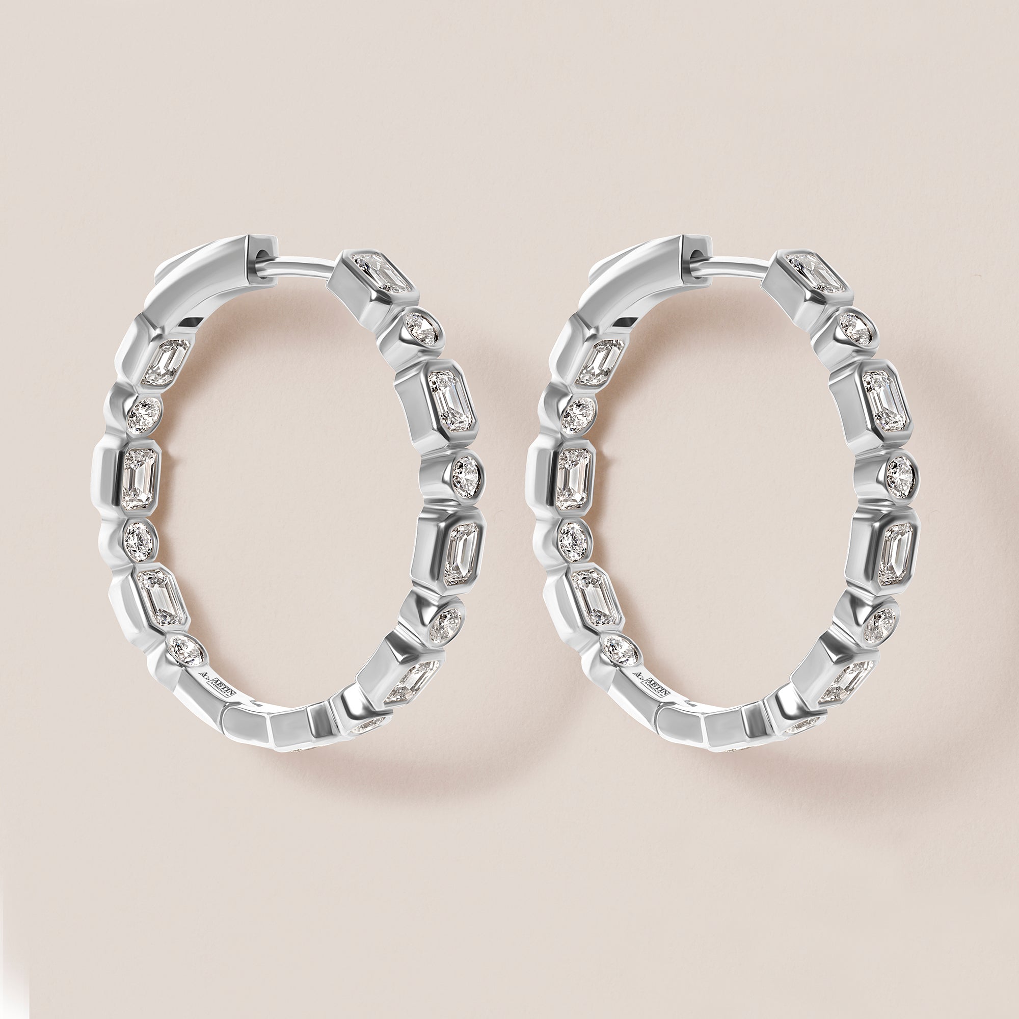 Their 22 mm inner diameter makes them the perfect size — bold enough to turn heads at an evening event, yet polished and versatile enough for everyday wear. The combination of geometric emerald cuts and brilliant rounds creates a clean, contemporary look that feels effortlessly chic.