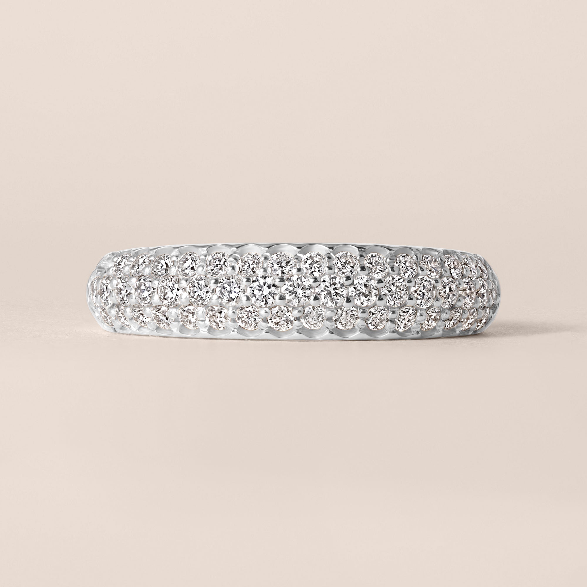 The interior of the ring reveals a thoughtfully engineered gallery that supports the pavé while ensuring comfort and durability for everyday wear—an expression of craftsmanship that is felt as much as it is seen.