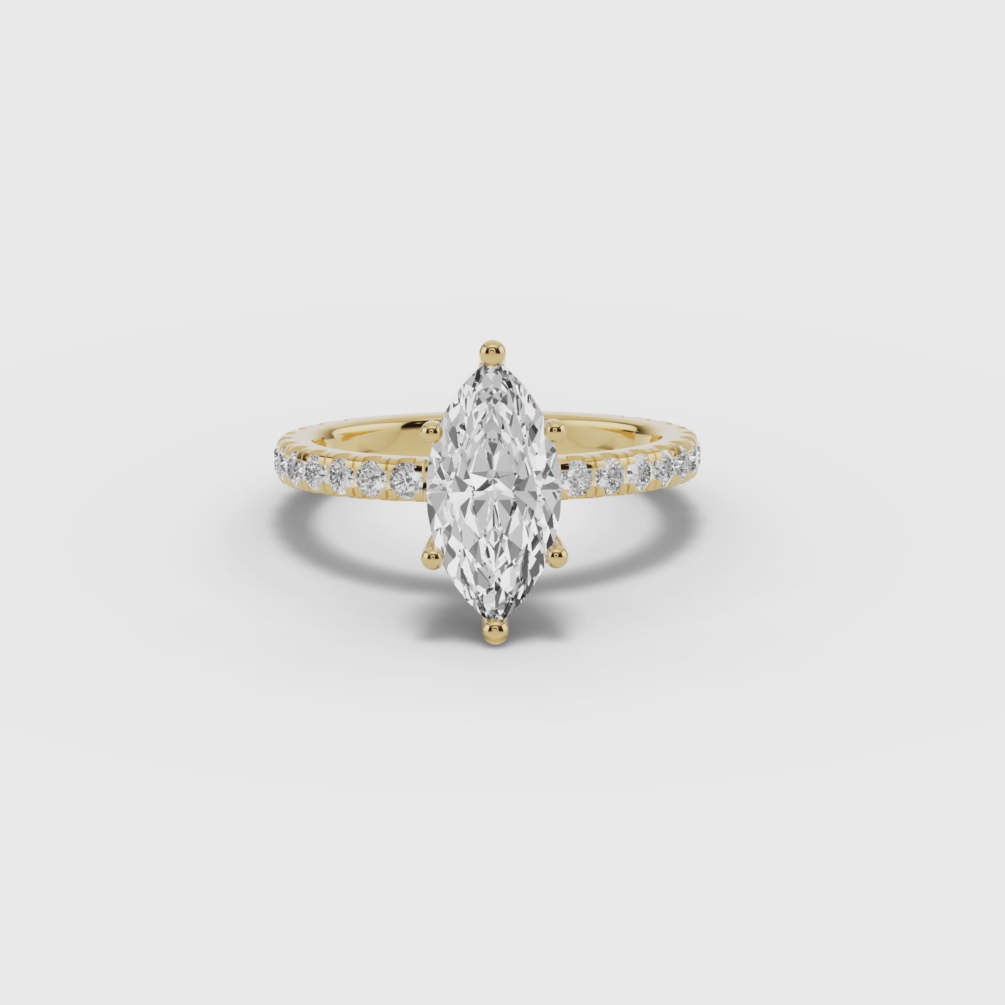 At its heart is a customizable lab-grown diamond, available from 1.00 to 5.00 carats, giving you the freedom to select the perfect size for your love story. Each stone of 1.00 ct and larger is accompanied by an IGI certificate, ensuring exceptional quality and ethical sourcing.