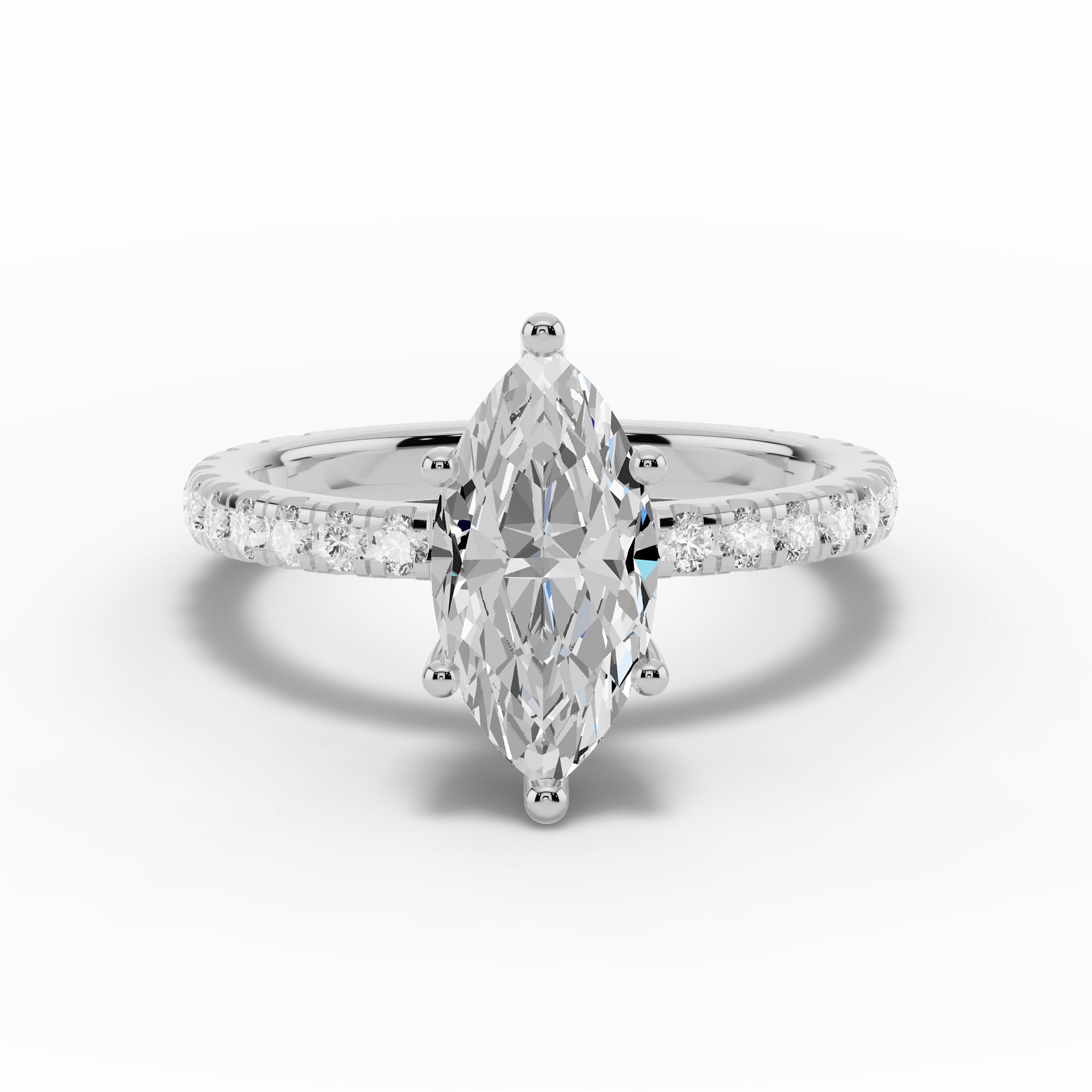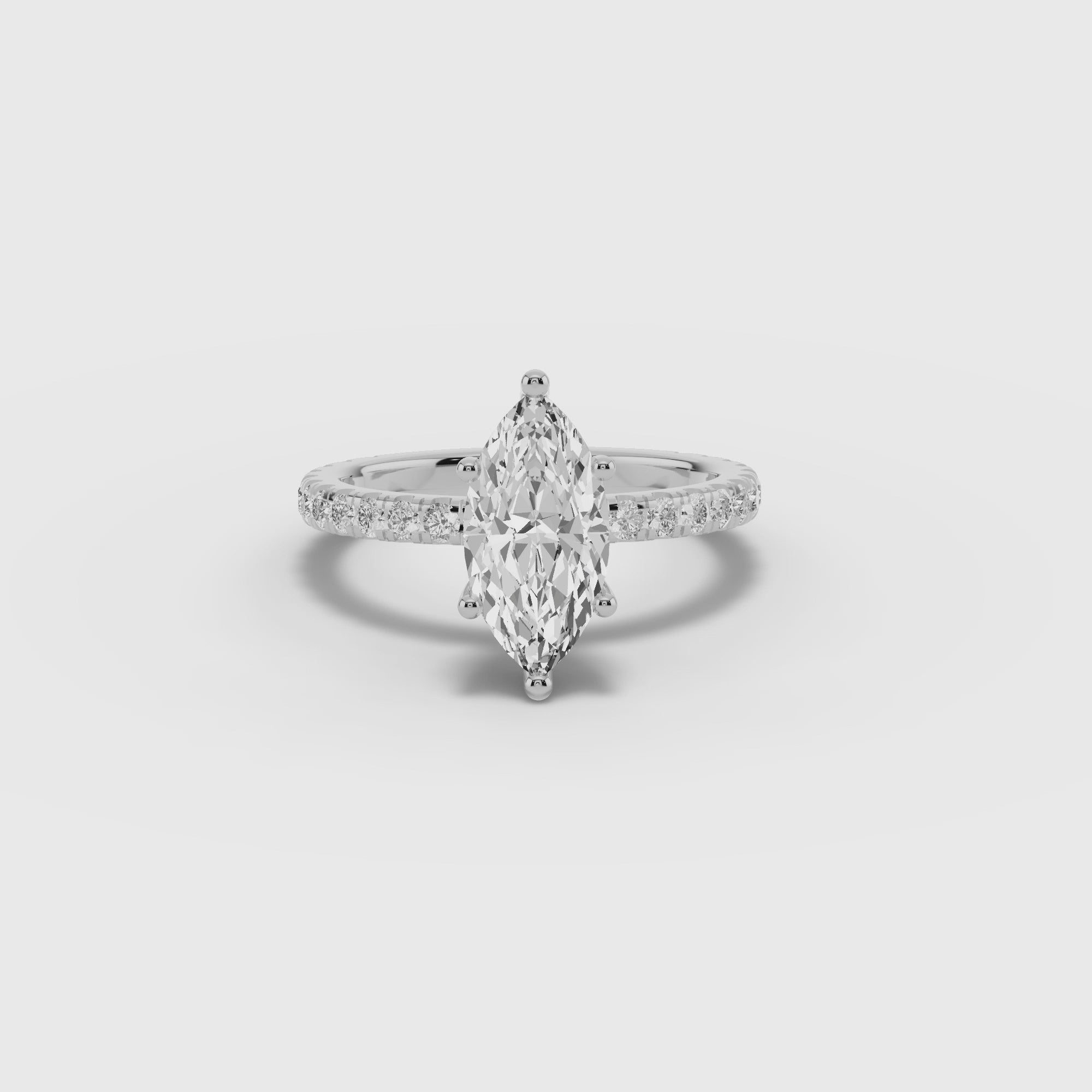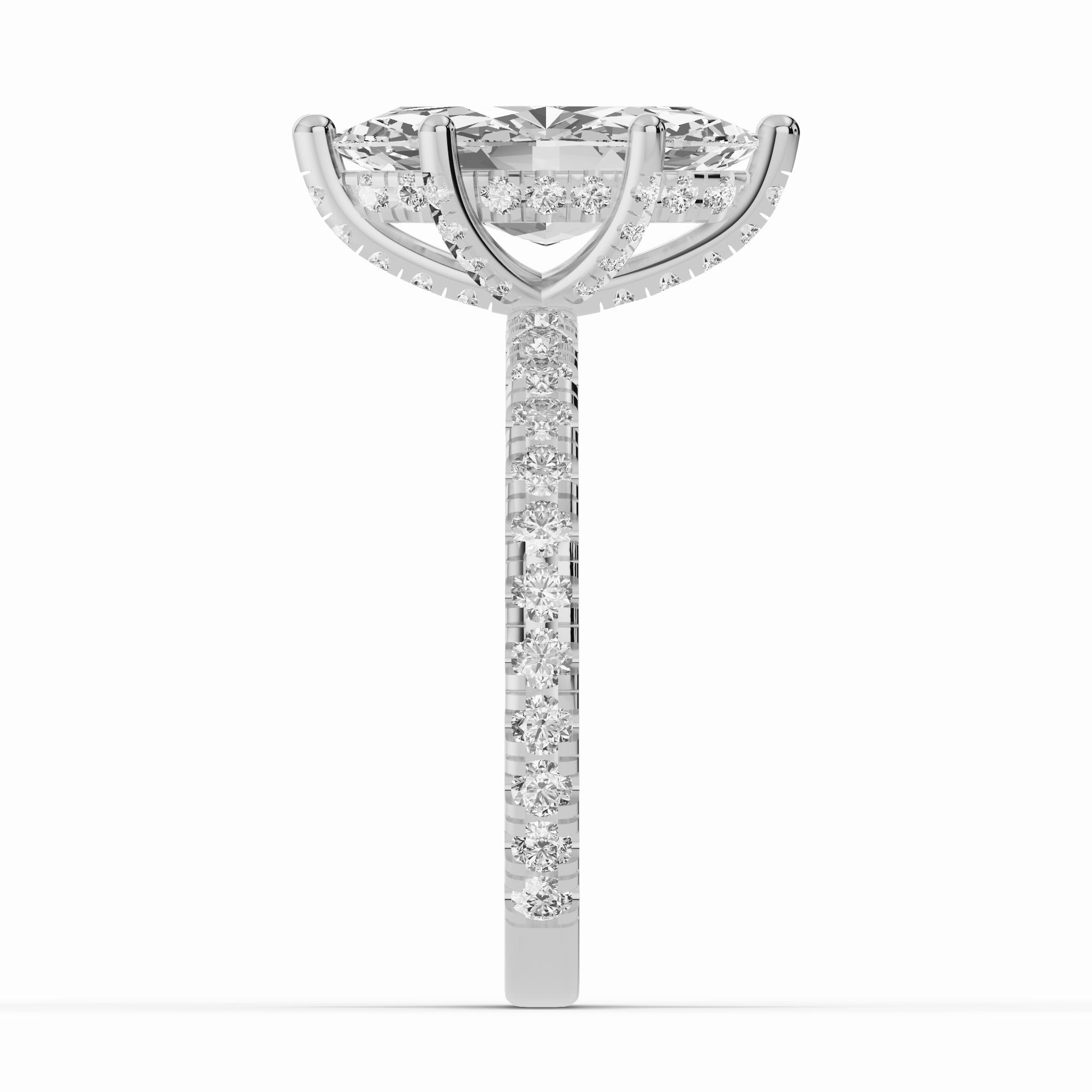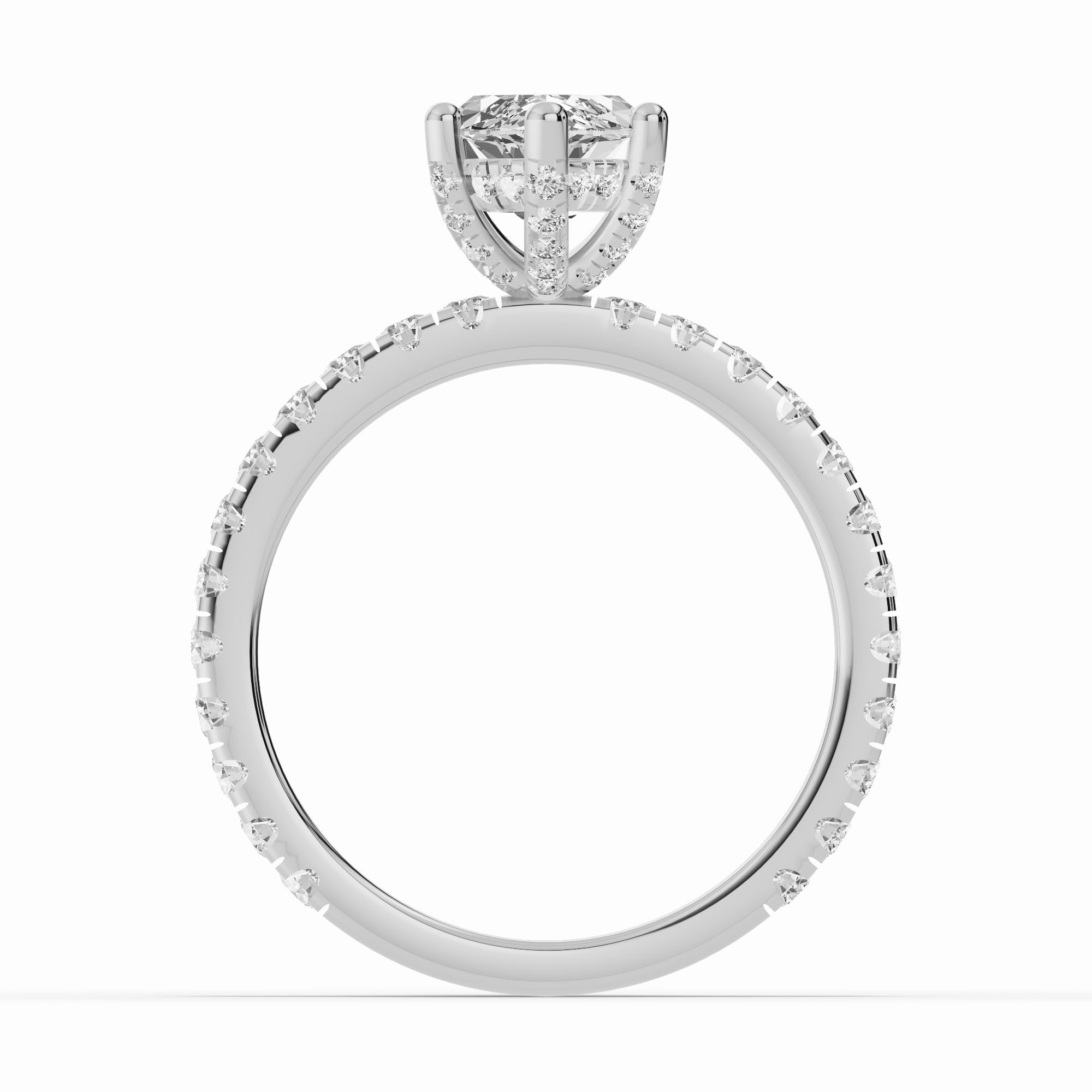 The Coronet Diamond Crown Engagement Ring is a timeless expression of brilliance and grace. Featuring a pavé diamond-adorned band with prong-set stones, this design radiates light from every angle while keeping a sleek, elegant profile. The centerpiece is elevated by a delicate crown of diamonds beneath the setting, creating a regal touch that sparkles with every movement.