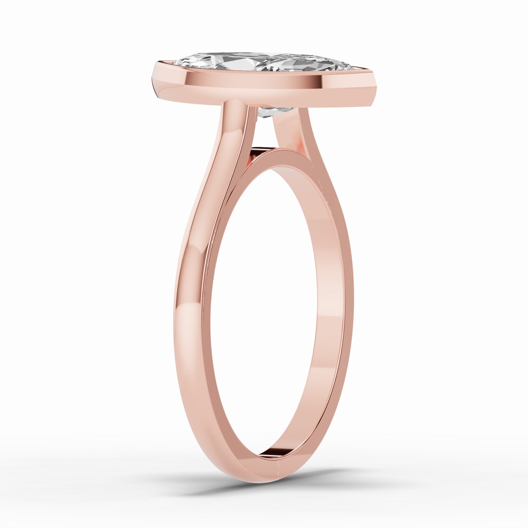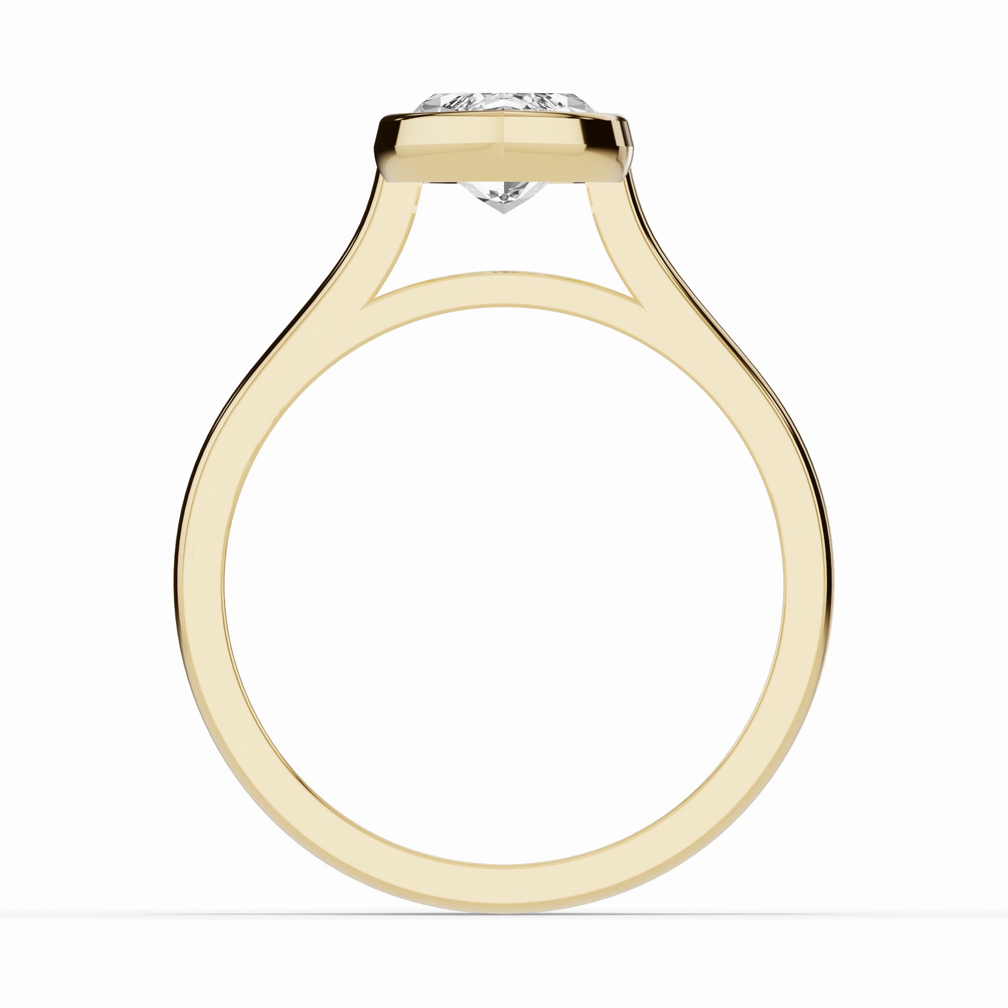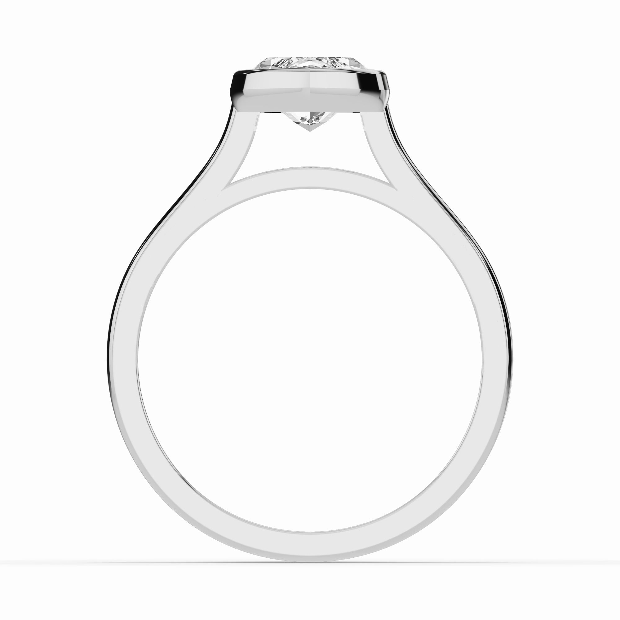 The Lumière Bezel Solitaire is a celebration of modern minimalism and radiant light. This elegant design features a sleek, polished band that flows seamlessly into a contemporary bezel setting, framing the center stone with smooth, protective edges while allowing maximum brilliance from every angle.