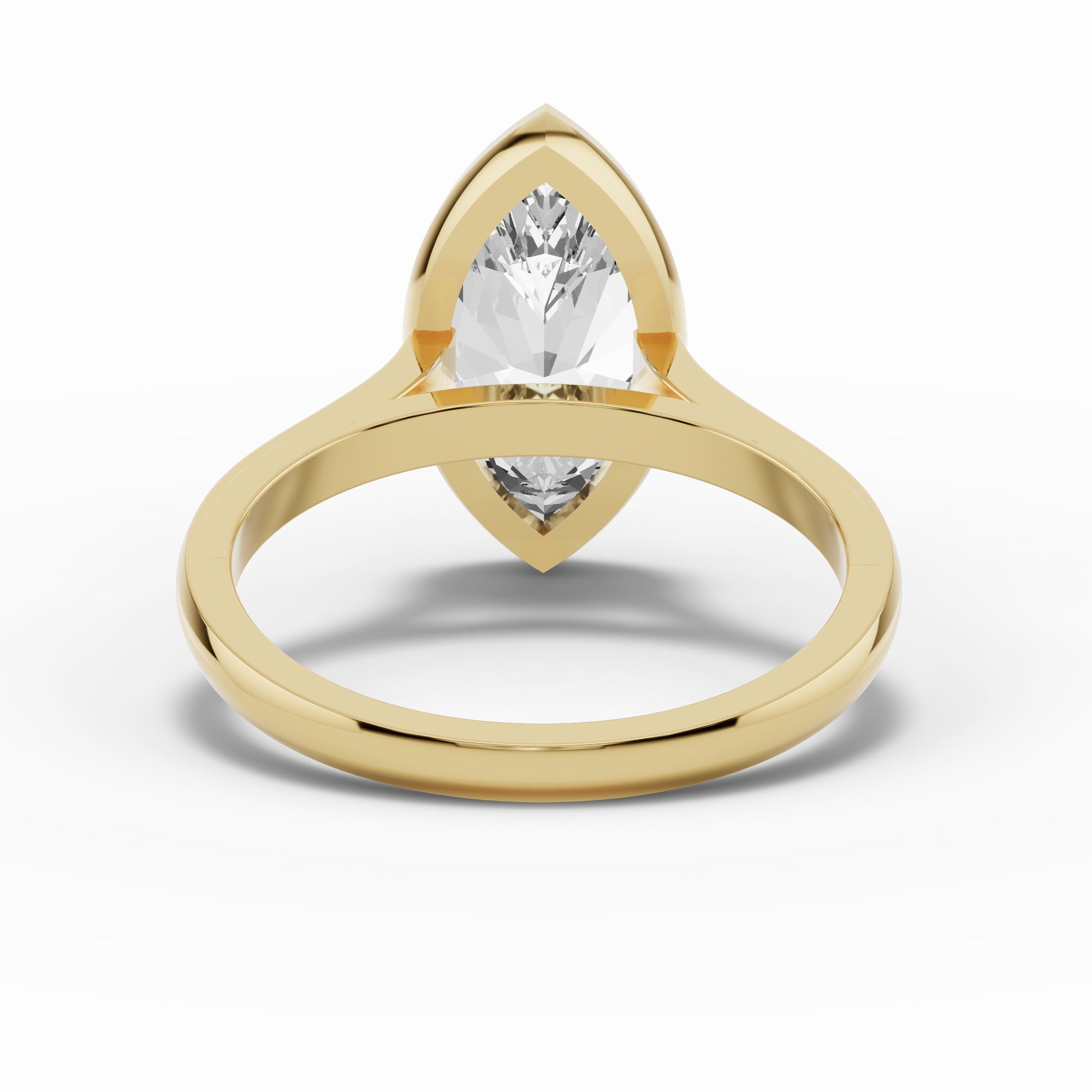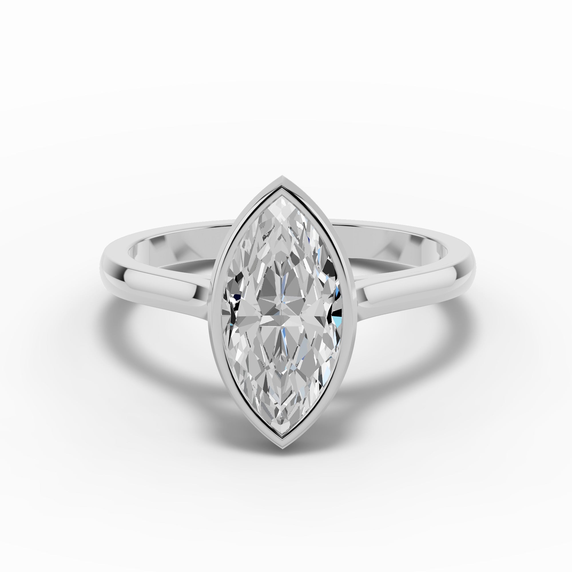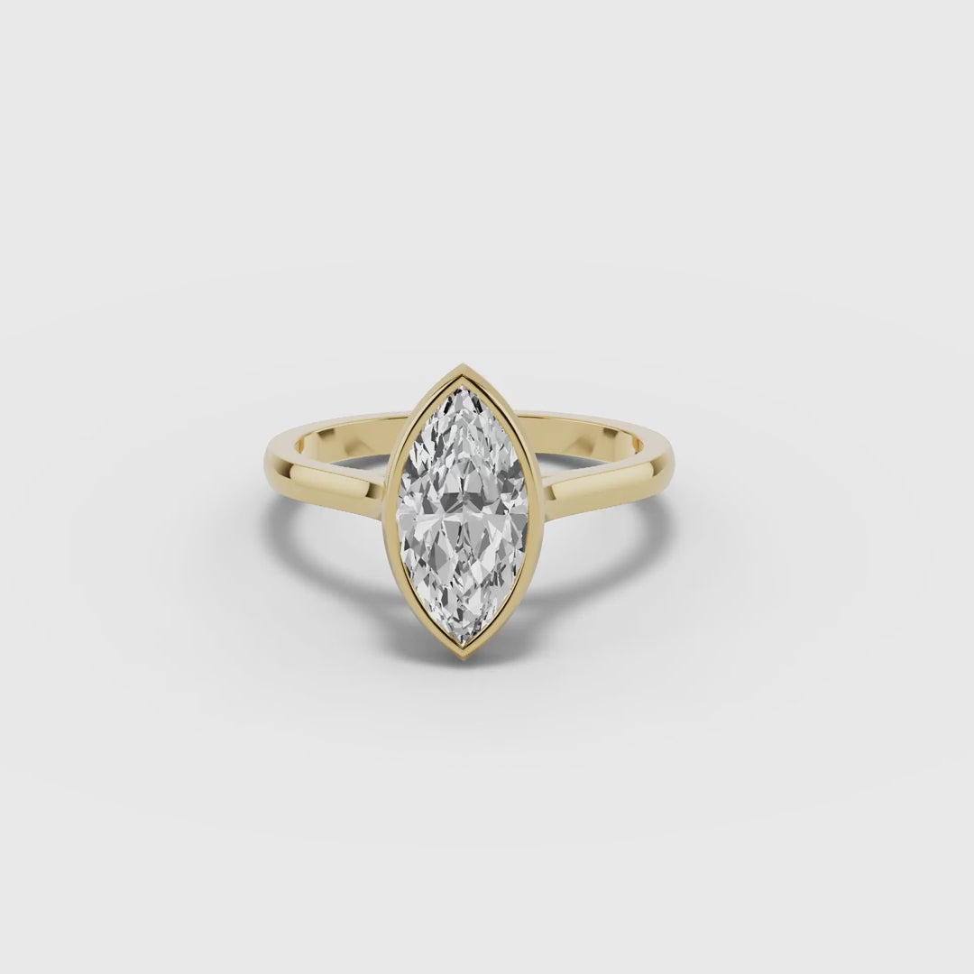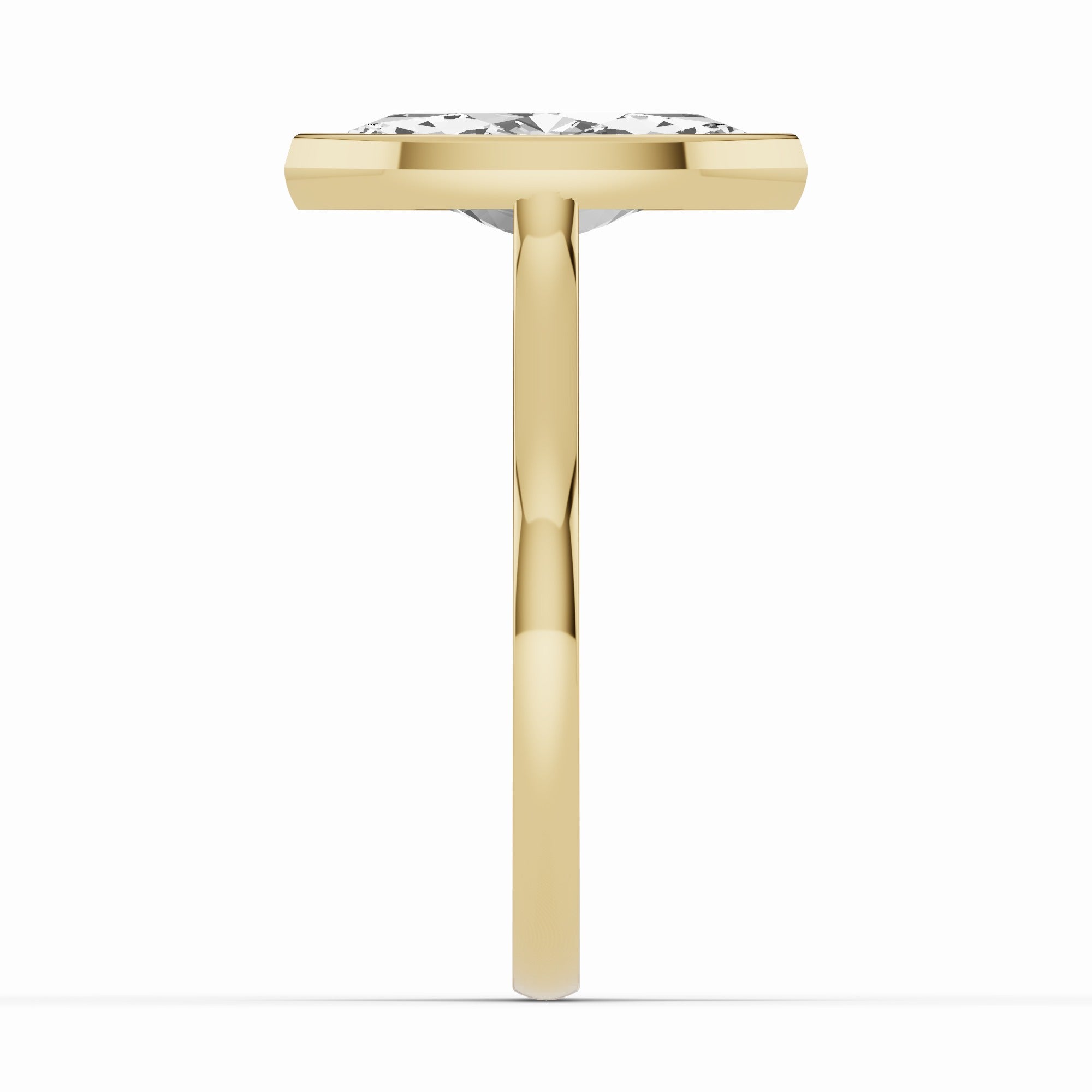 The Lumière Bezel Solitaire is a celebration of modern minimalism and radiant light. This elegant design features a sleek, polished band that flows seamlessly into a contemporary bezel setting, framing the center stone with smooth, protective edges while allowing maximum brilliance from every angle.